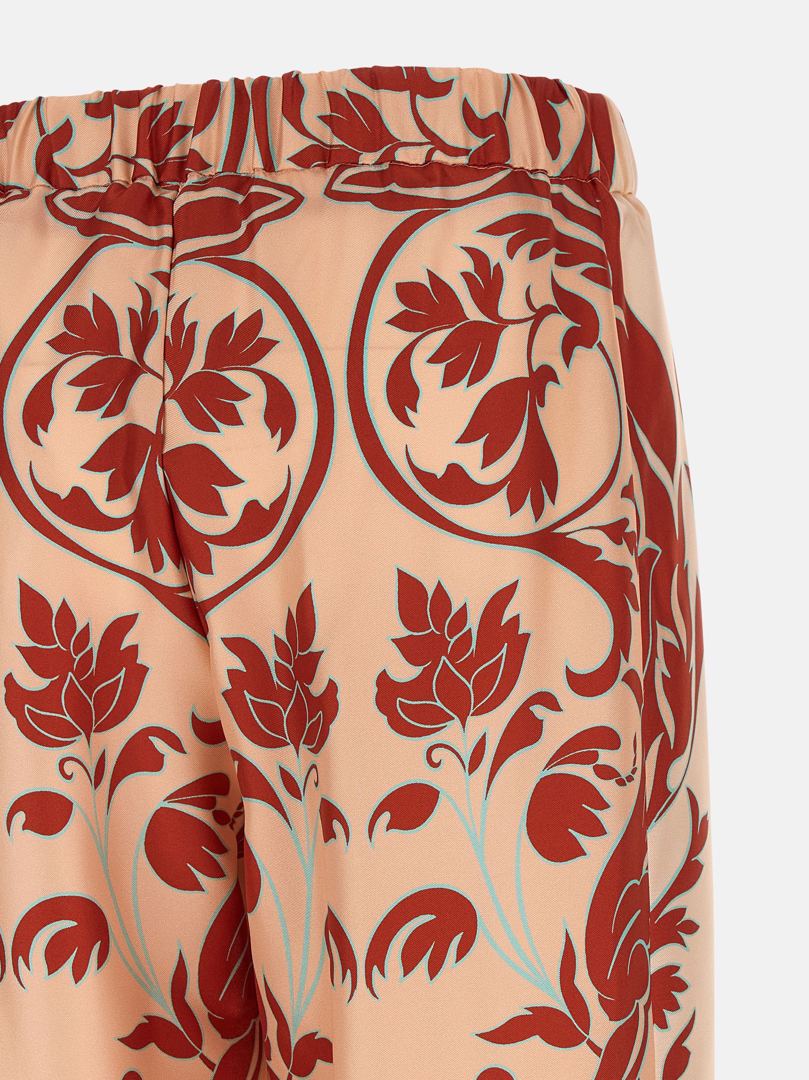 ‘Elena’ all-over ‘Braque Geometry’ print silk twill pants with solid satin details, front button closure, elastic back waistband, straight leg, pockets.