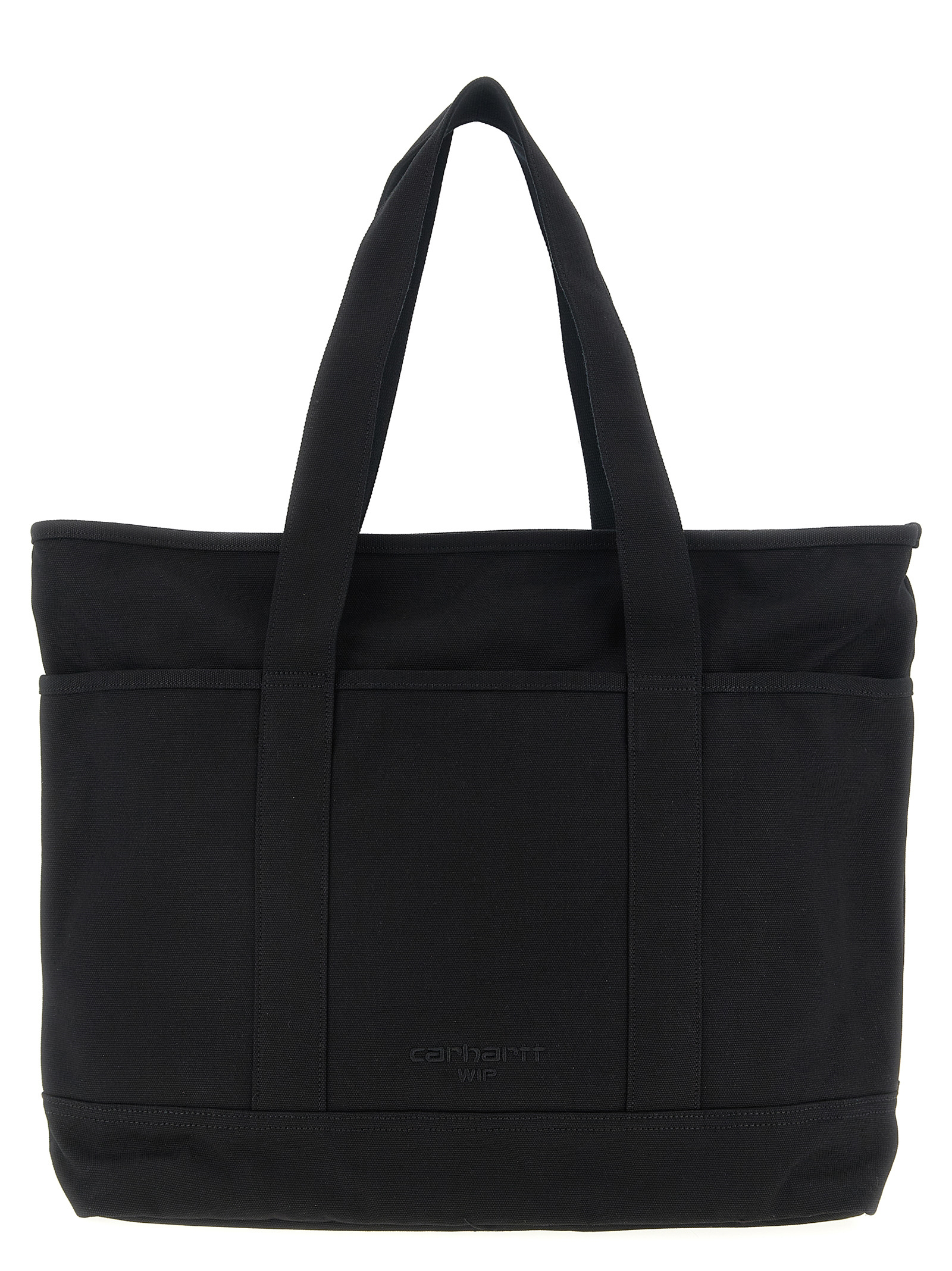 ‘Elford’ shopping bag in heavy cotton and polyester canvas, lined, tone-on-tone logo embroidery and front pockets, double fixed handle, top zip closure, adjustable shoulder strap.