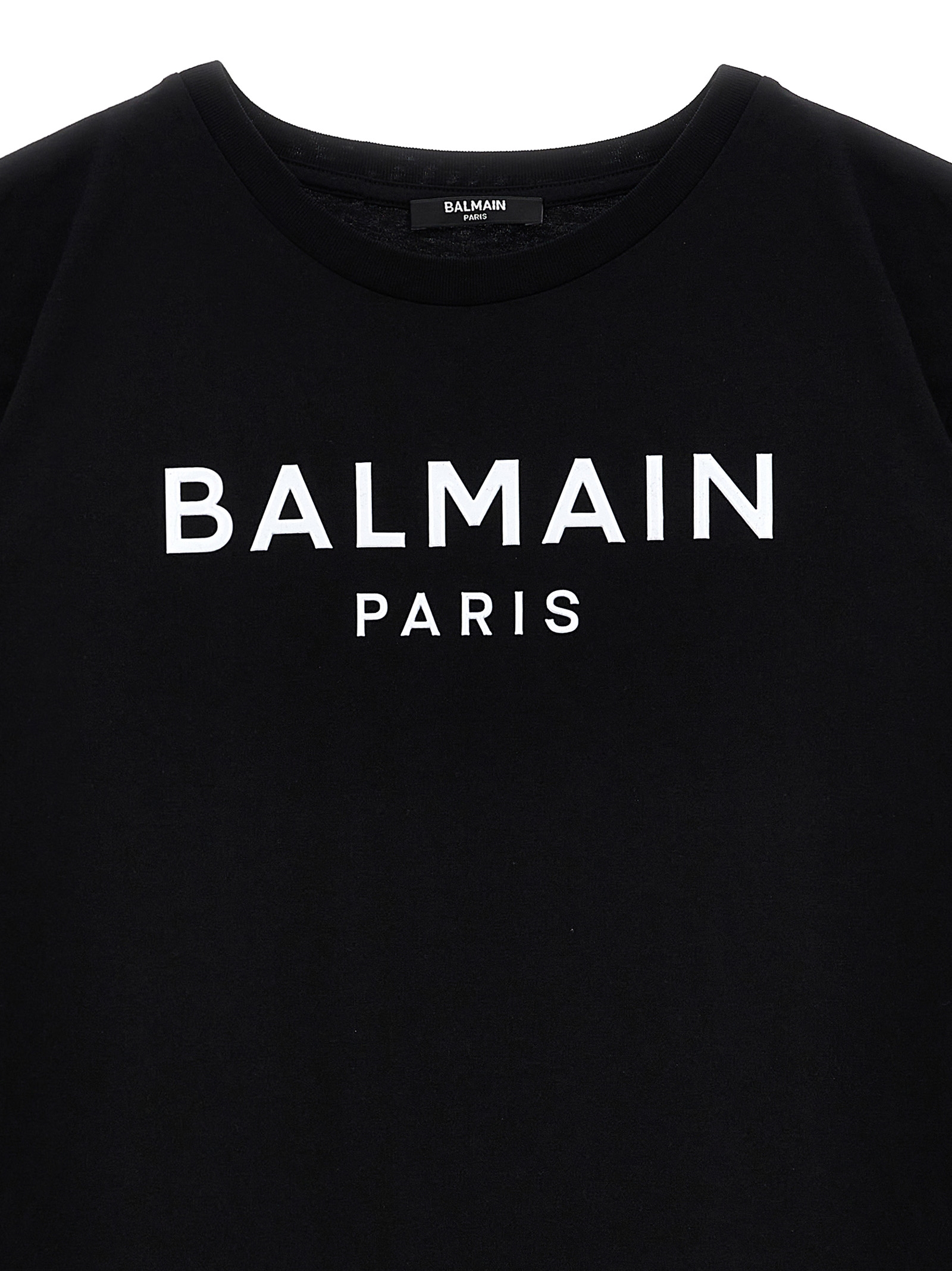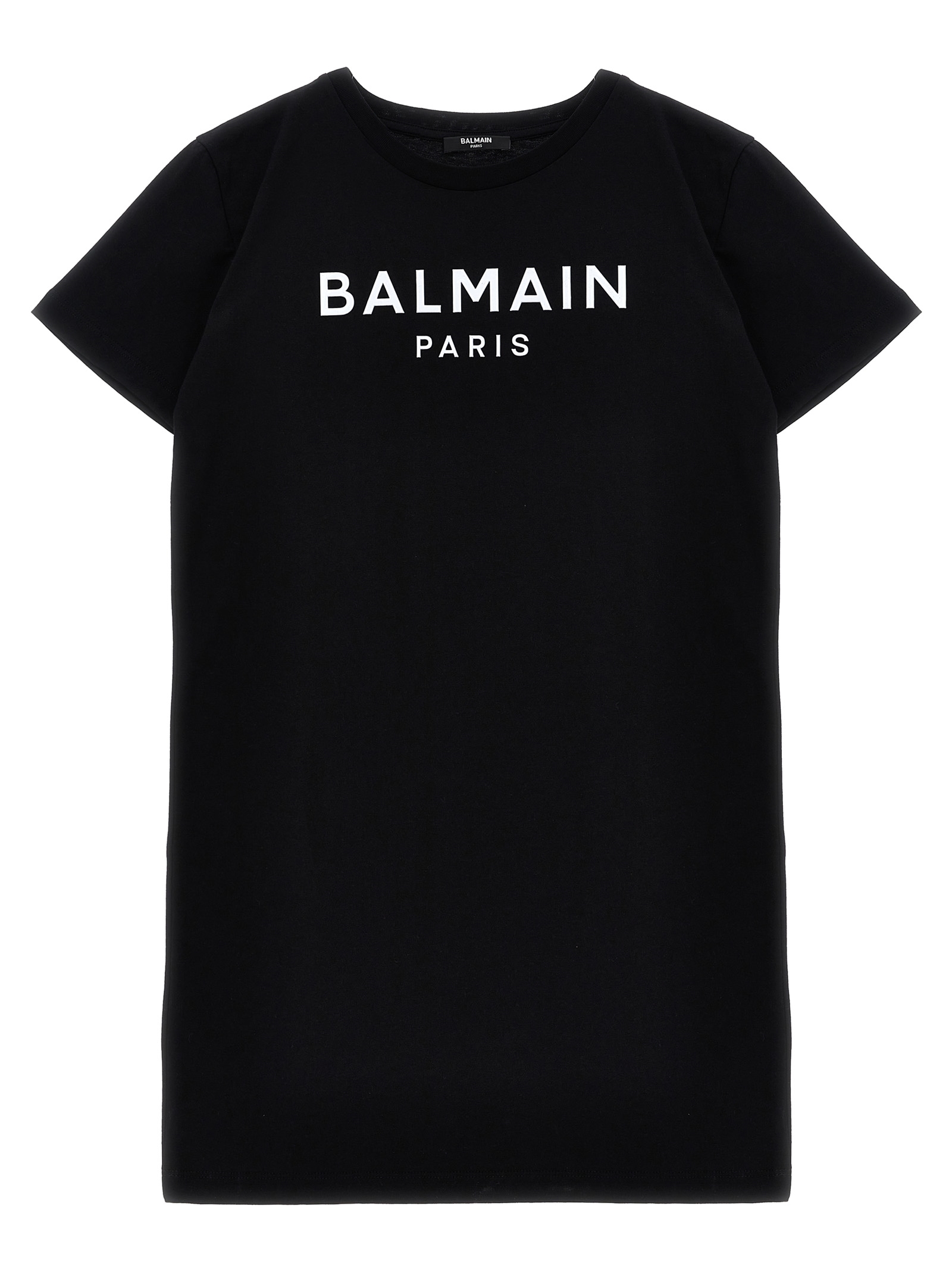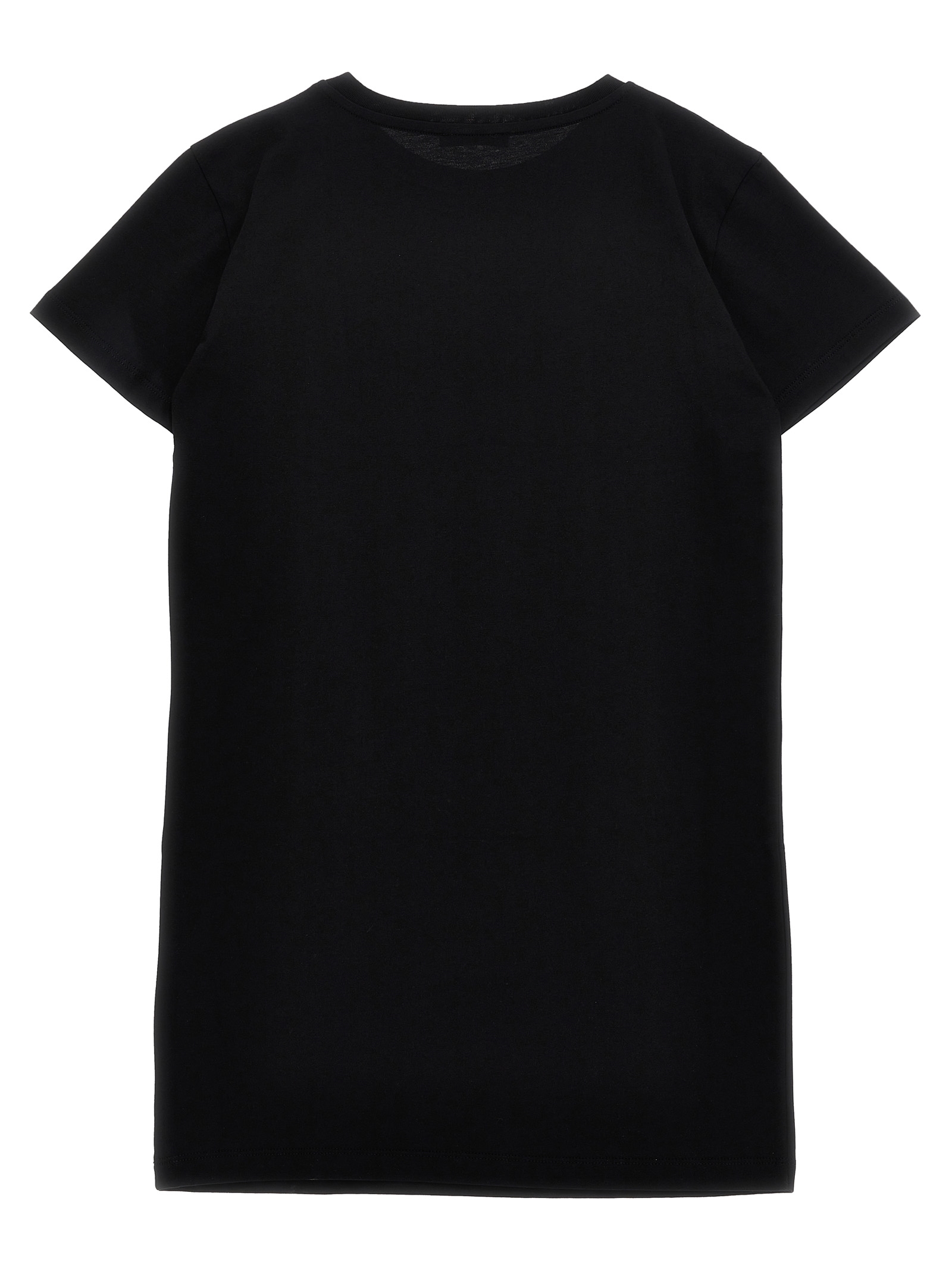 Cotton dress with embossed logo on the front, crew neck, short sleeves.