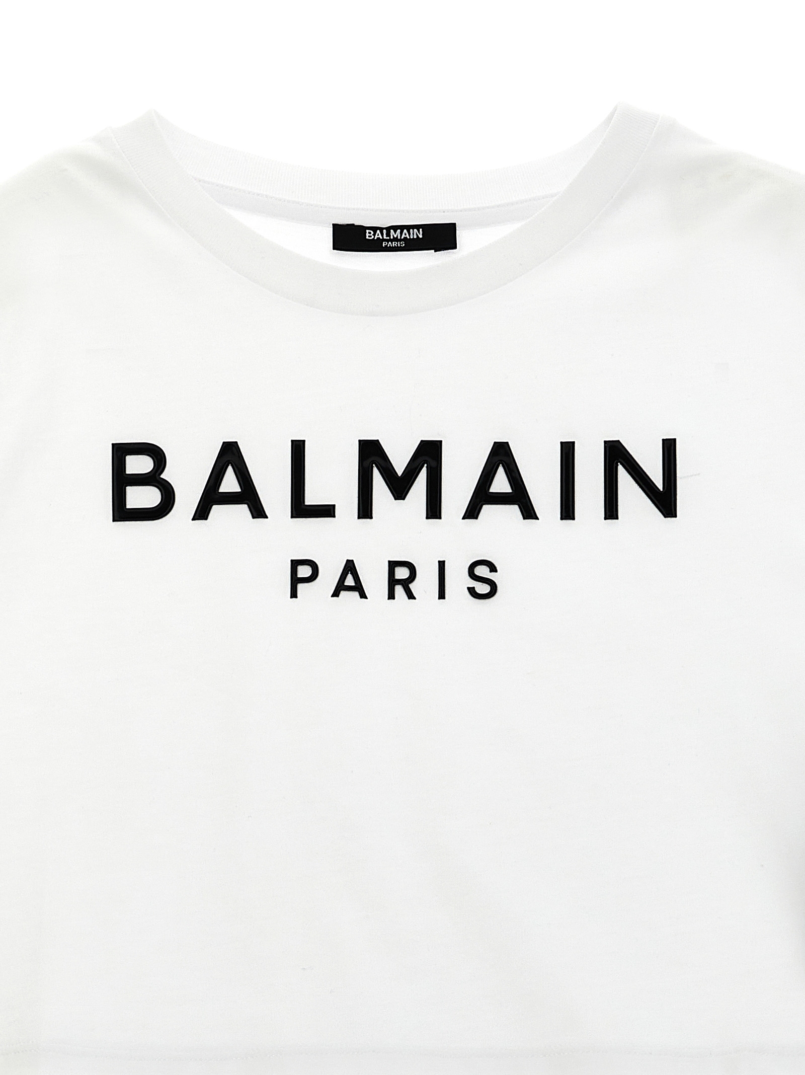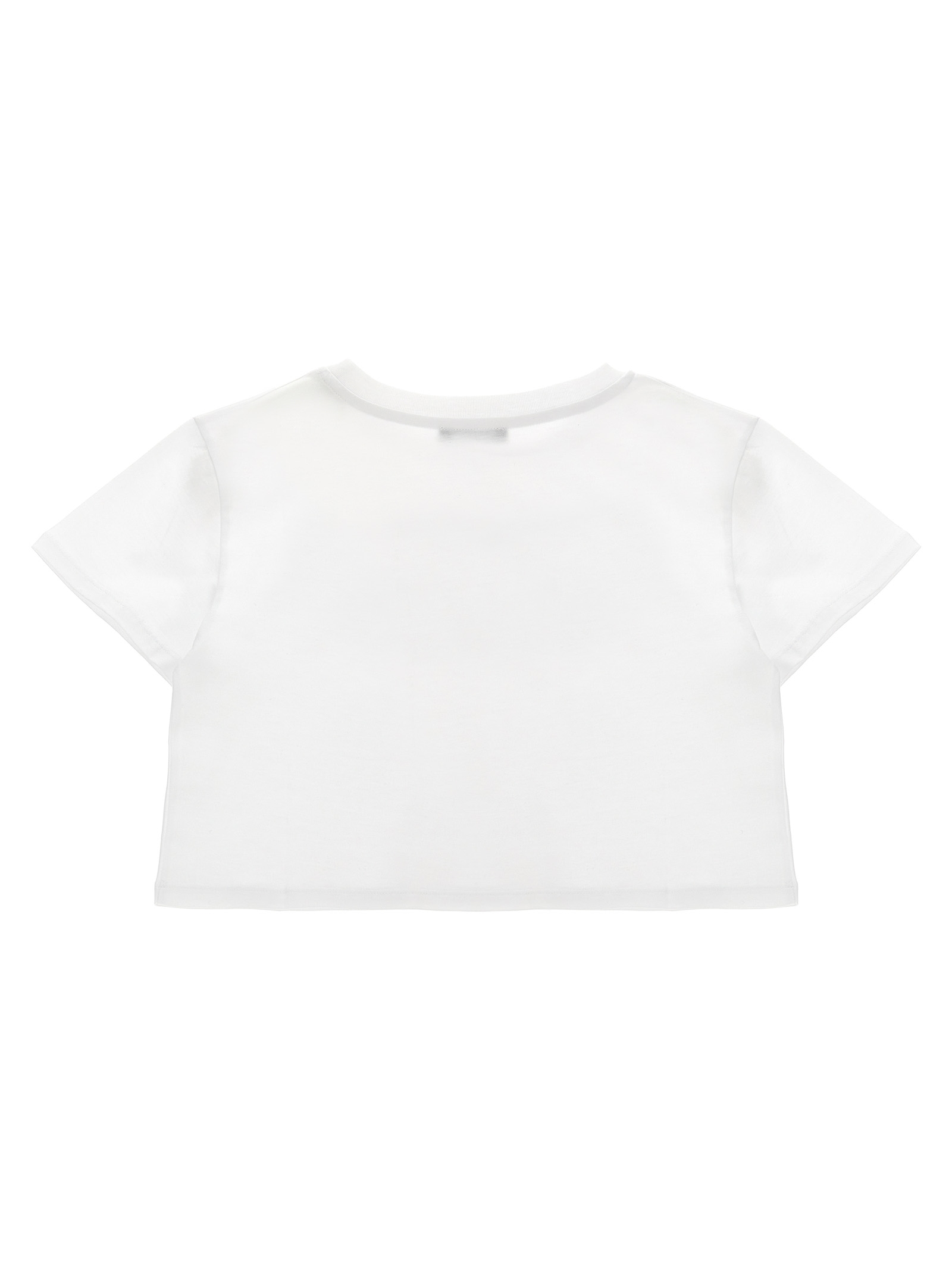 Cotton T-shirt with embossed logo on the front, crop model, crew neck, short sleeves.