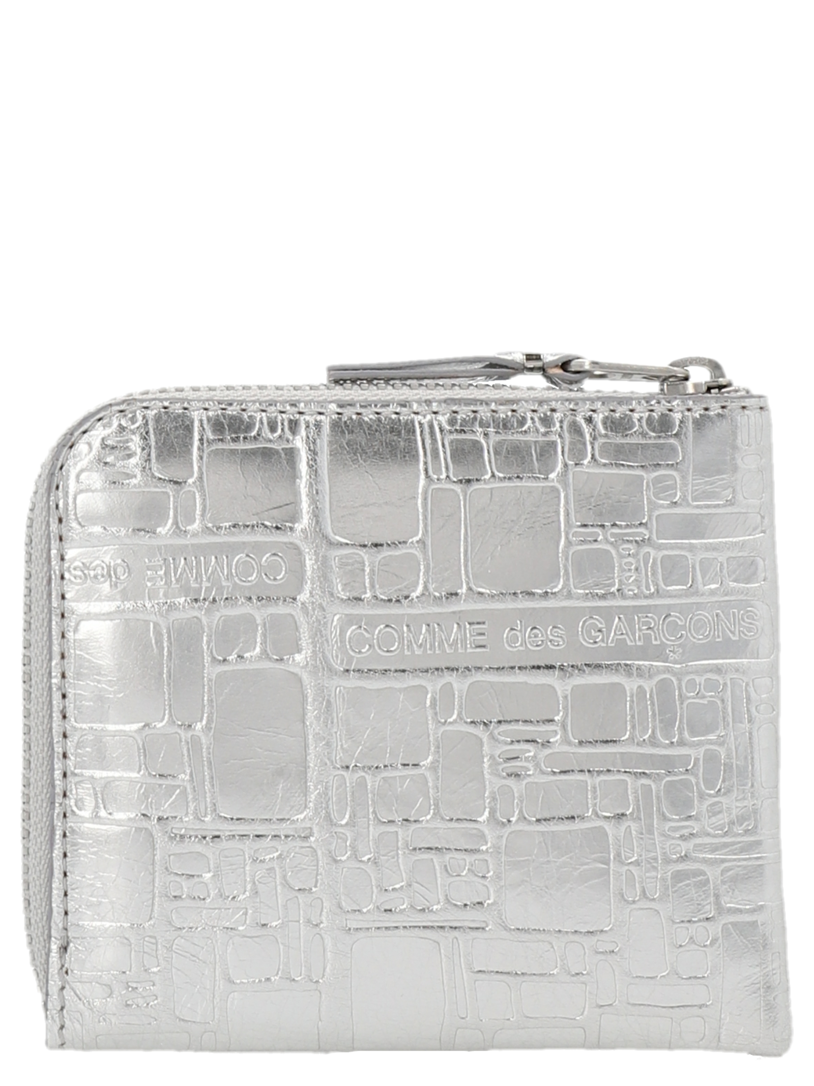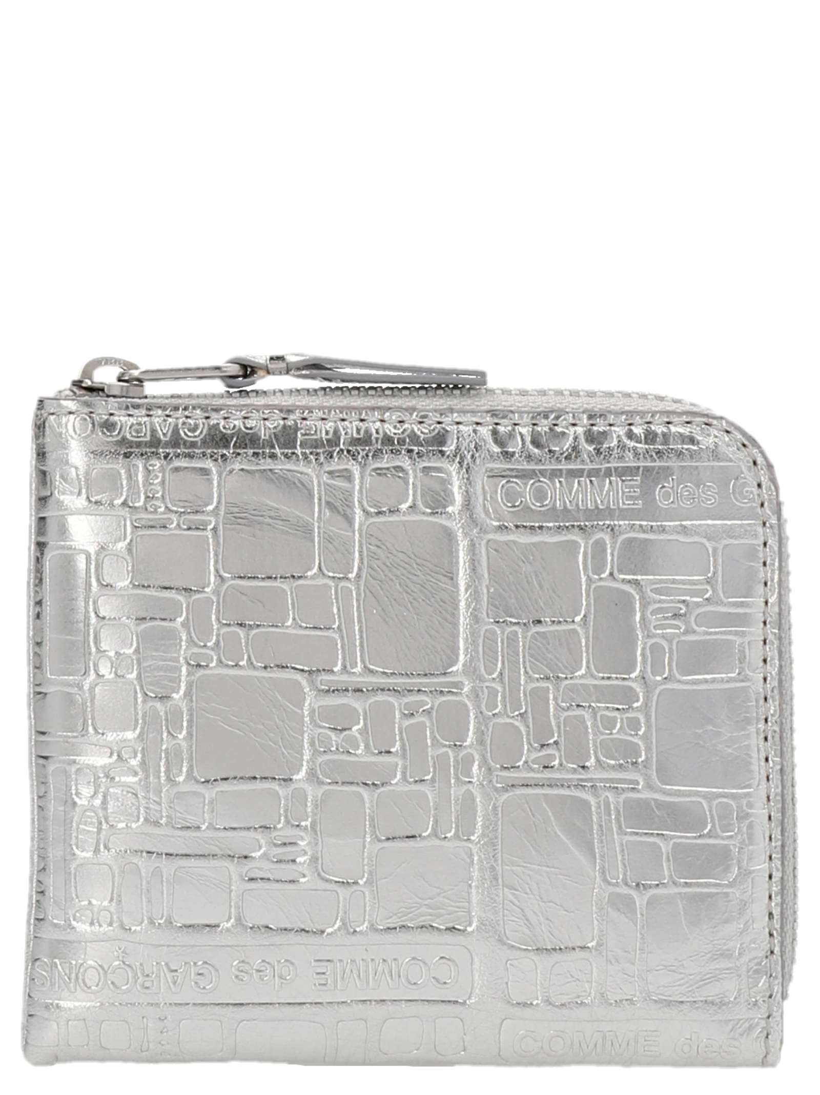 Leather wallet with ‘Embossed Logotype’ pattern and zip closure.
