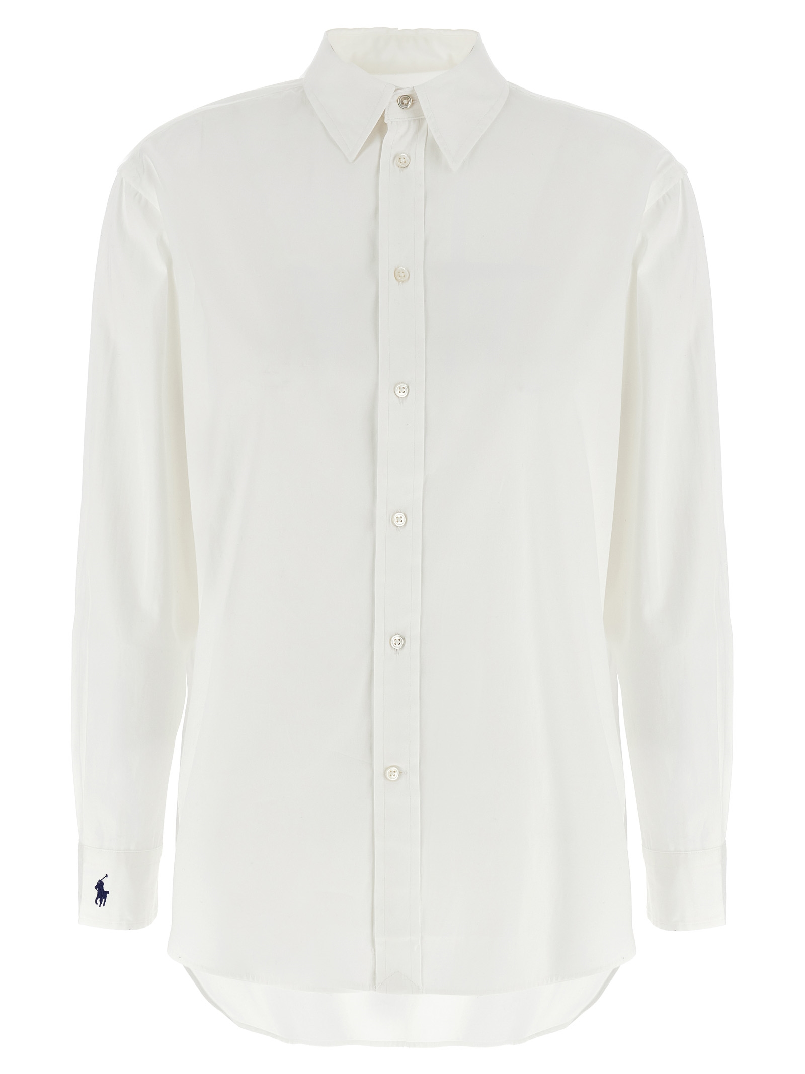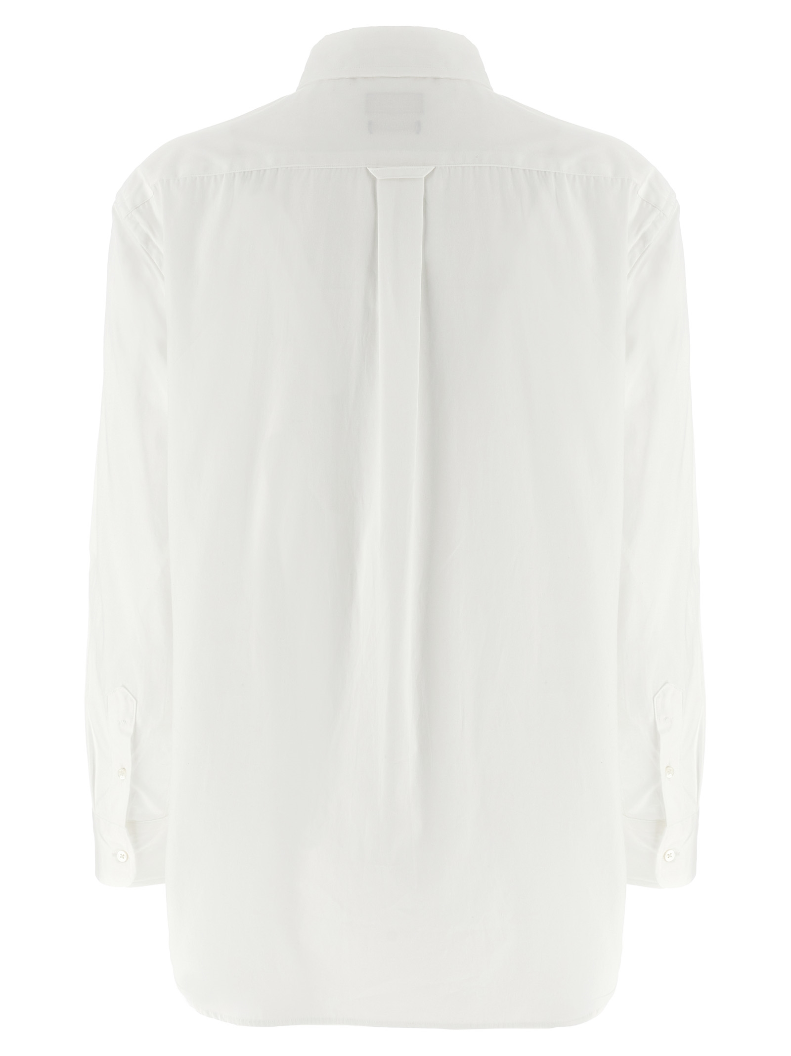 Cotton shirt with front button closure, long sleeves with embroidery on cuffs and dropped shoulders.