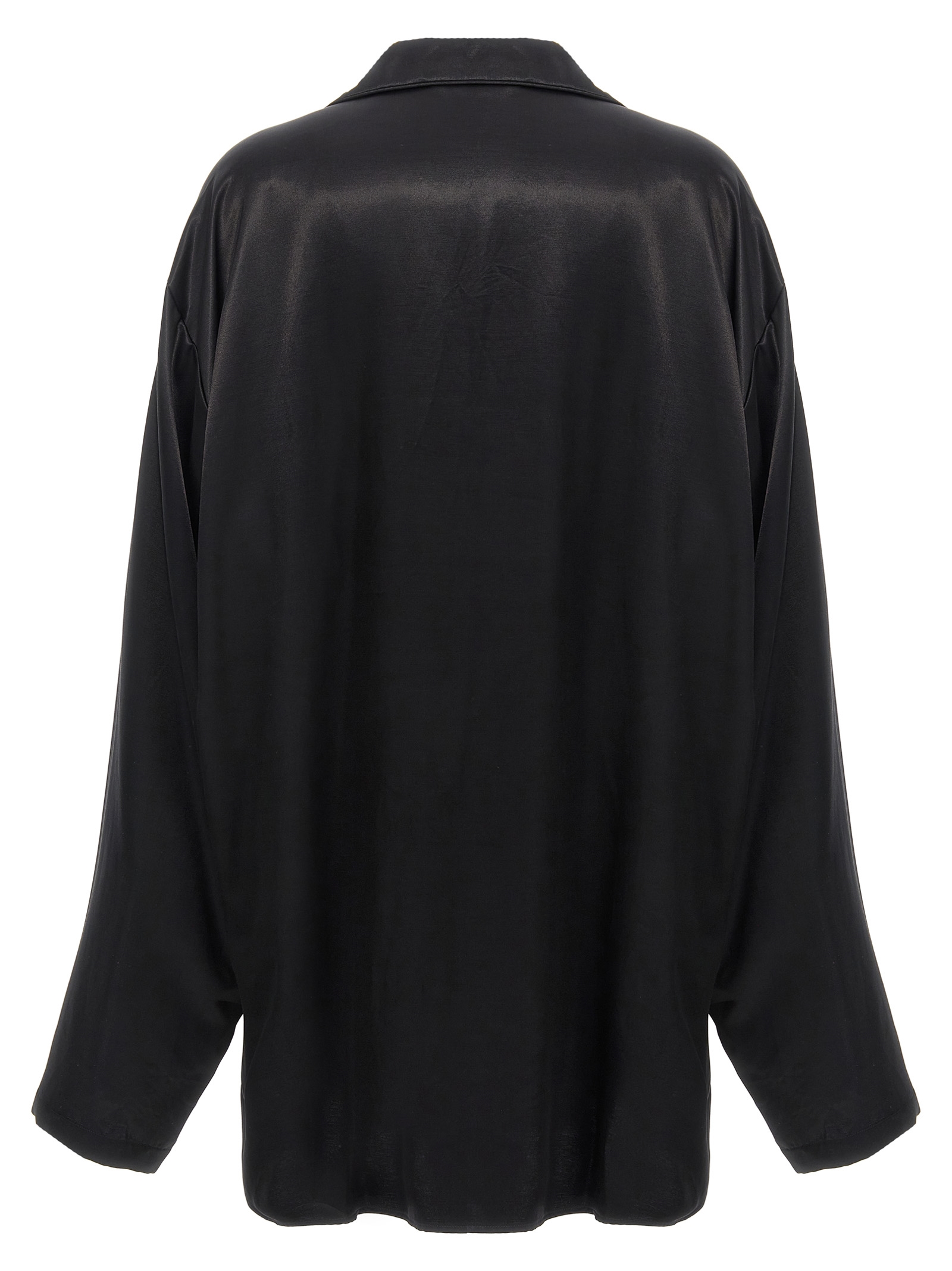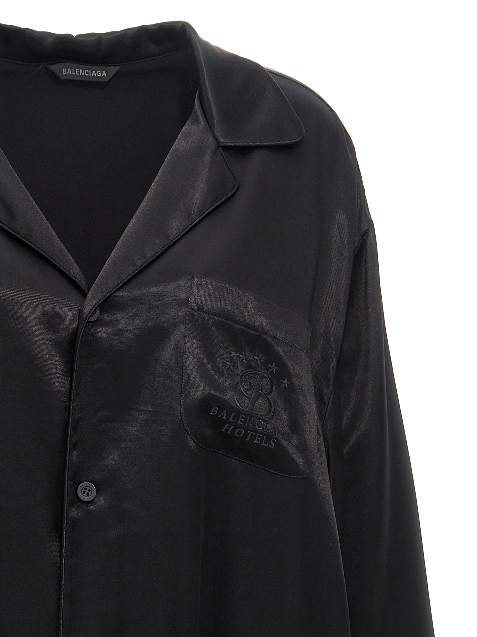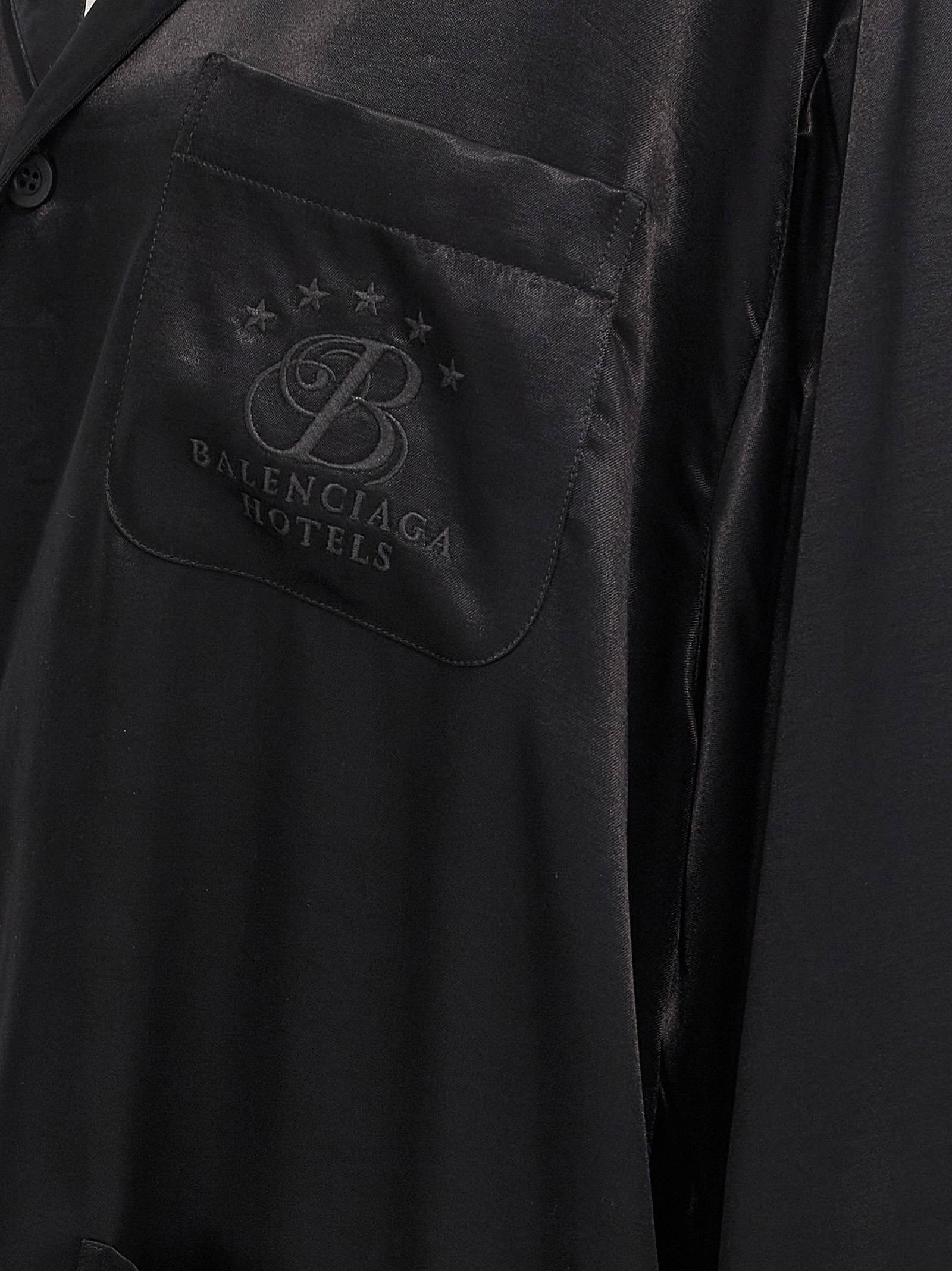 Viscose and cupro blend shirt, pajama model, pocket with tone-on-tone embroidered logo, button closure, long sleeves.