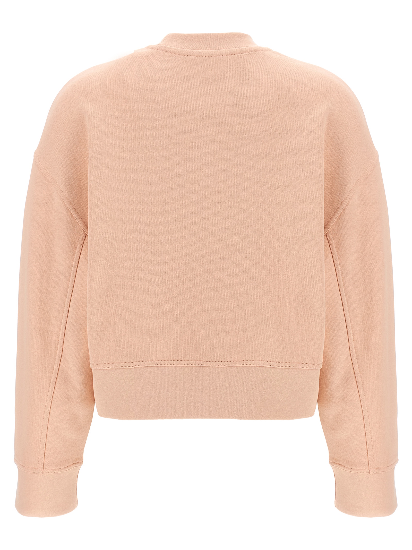 Cotton jersey sweatshirt with front embroidery, crew neck, long cuffed sleeves, dropped shoulders and fabric patch detail.