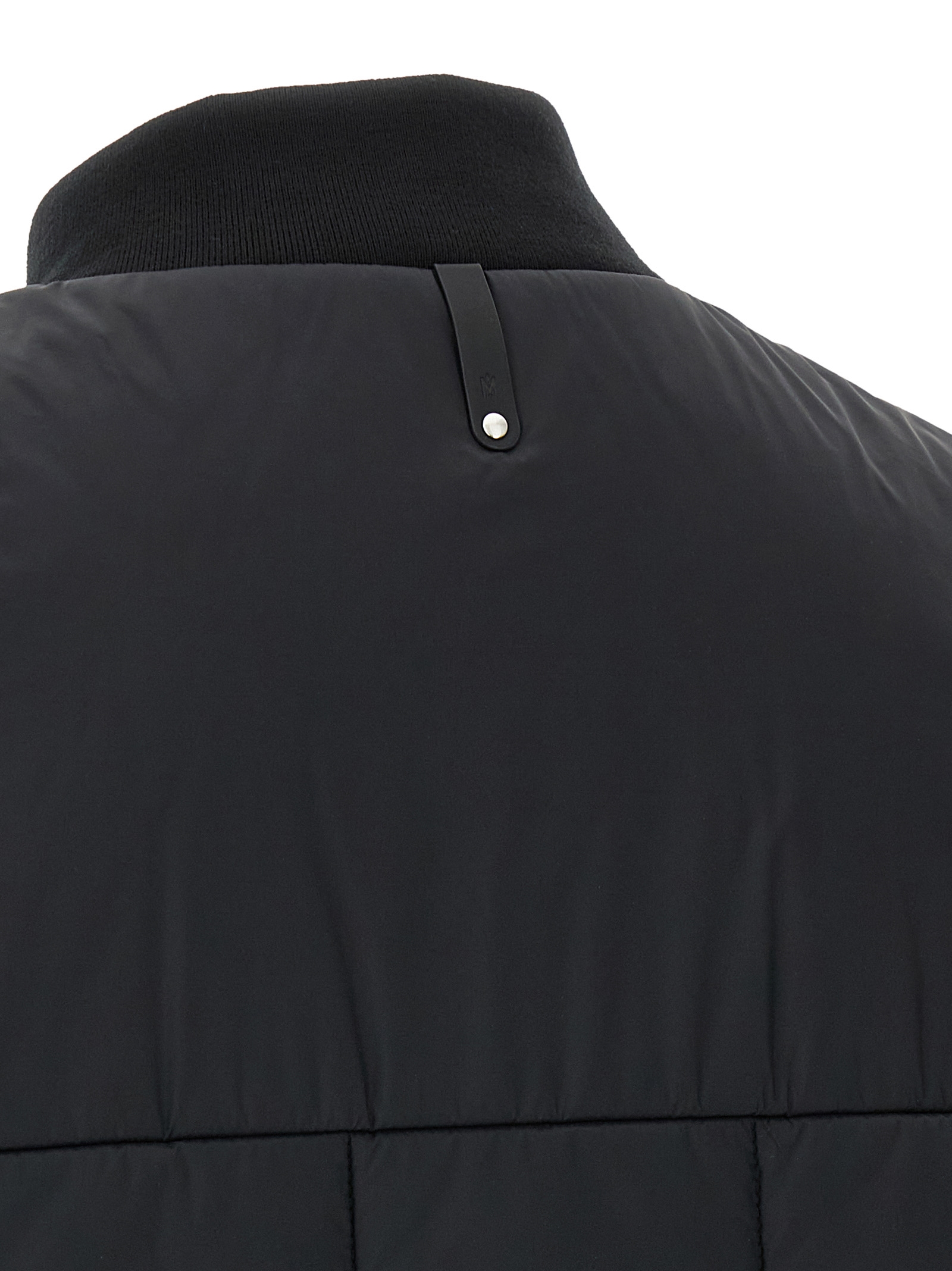 ‘Eren’ vest in ultralight quilted nylon with PrimaLoft®Silver insulation and water-repellent finish, tone-on-tone silicone logo patch and front zip closure, tone-on-tone stretch knit high neck, pockets, asymmetrical hem.