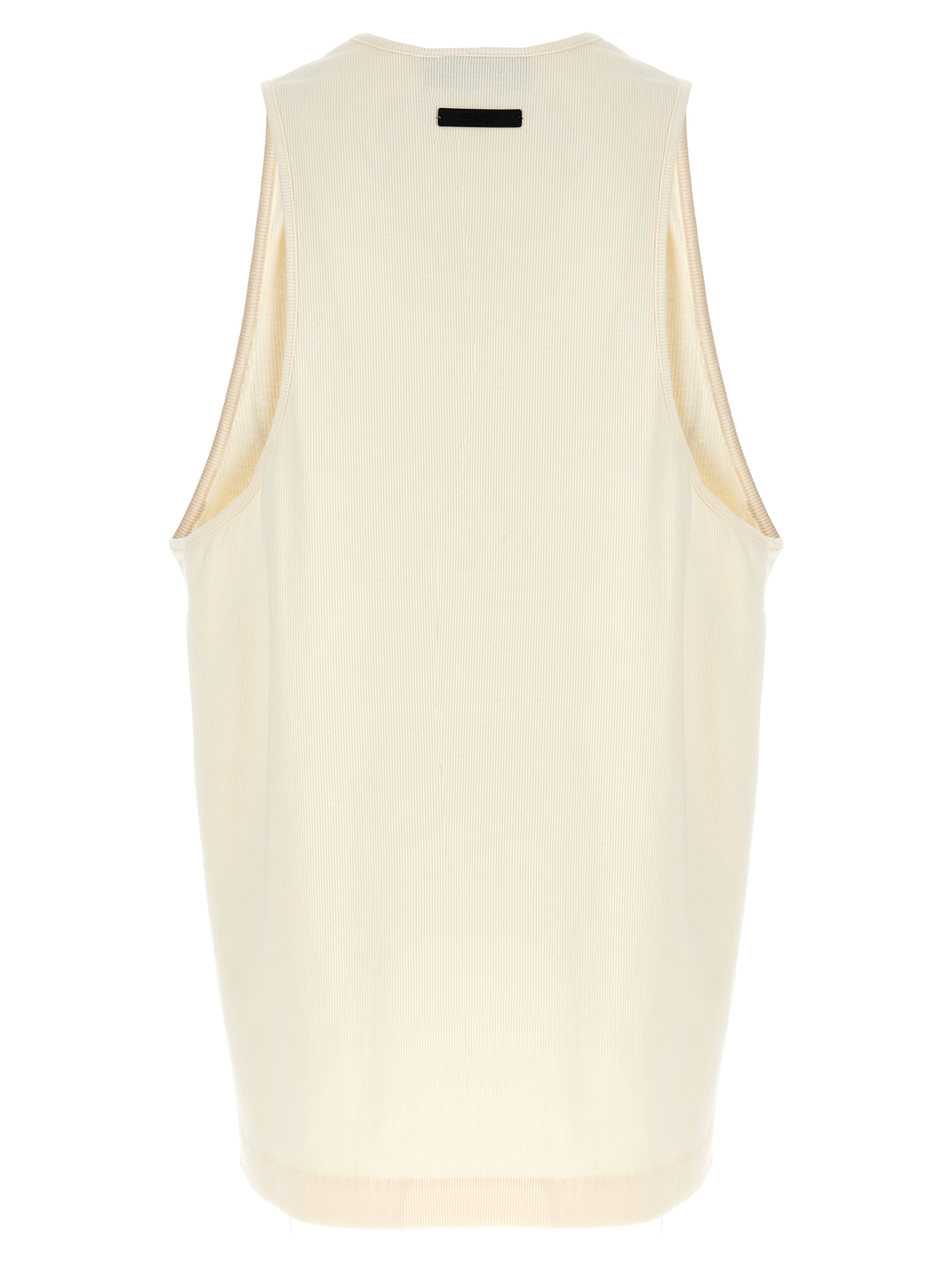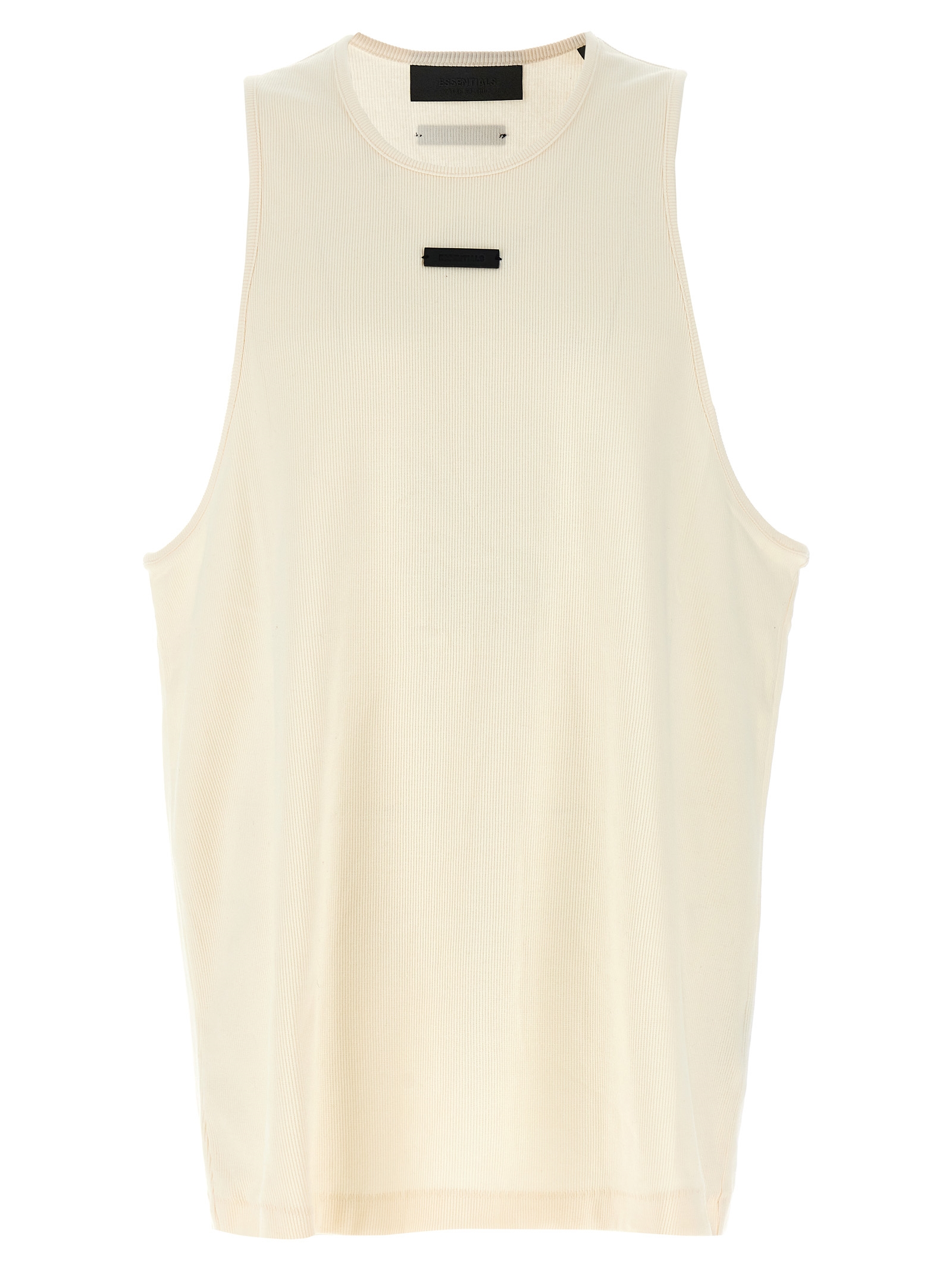 Essentials ribbed cotton tank top with wide armholes, front leather logo appliqué, rubber logo