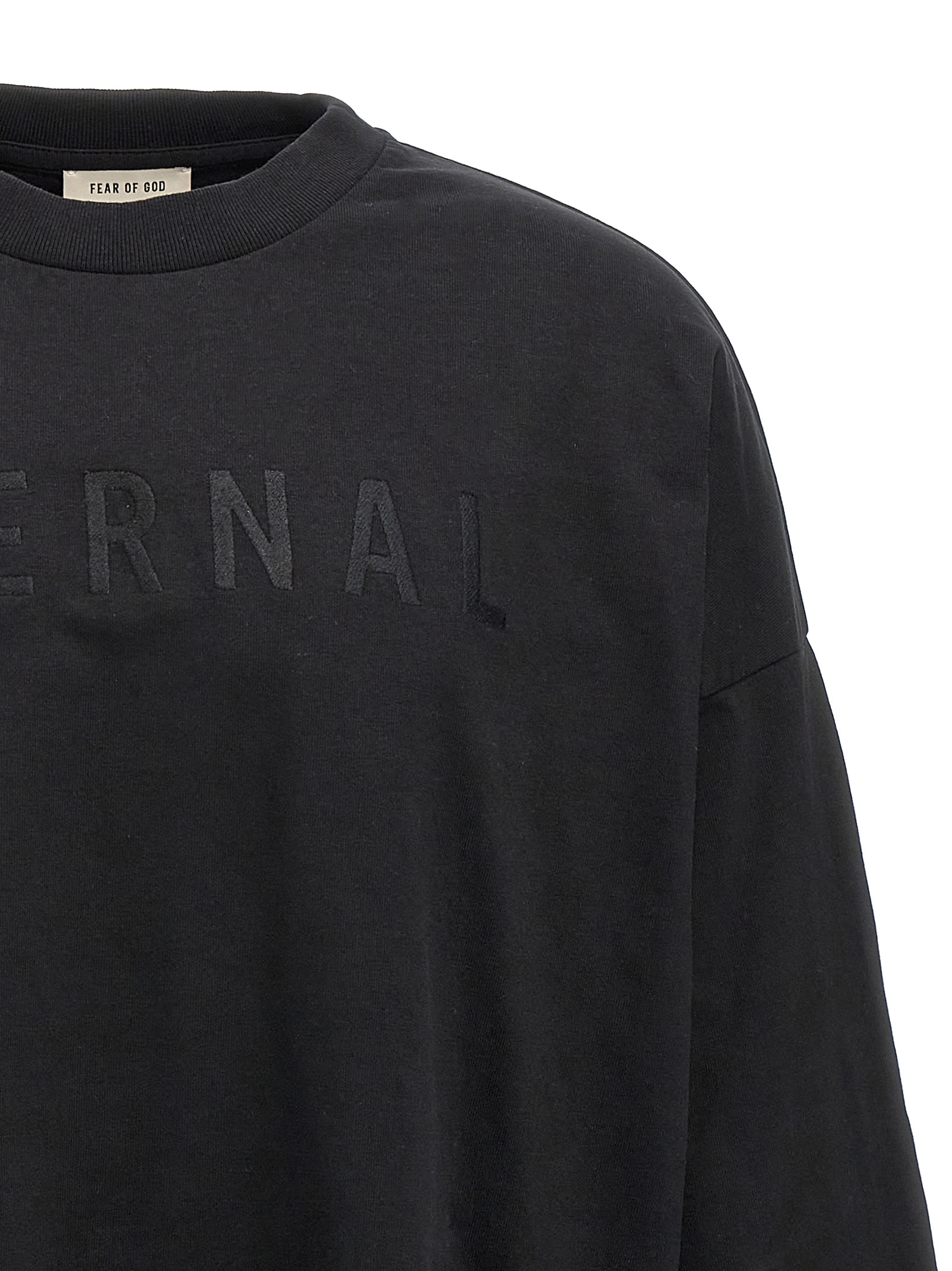 Heavy cotton jersey T-shirt with tone-on-tone Eternal embroidery on the front, crew neck, long sleeves with dropped shoulders, and leather logo patch at the back.