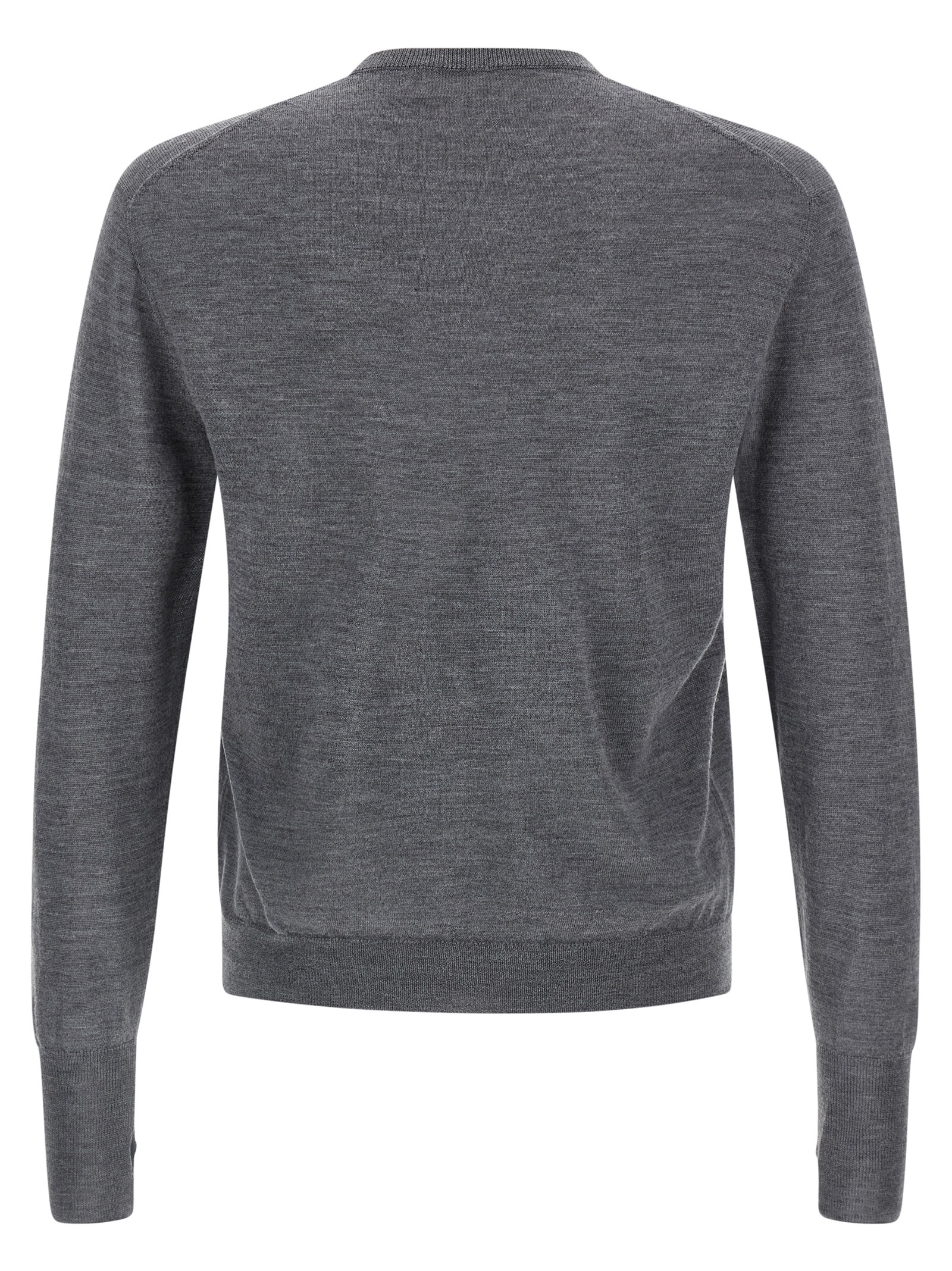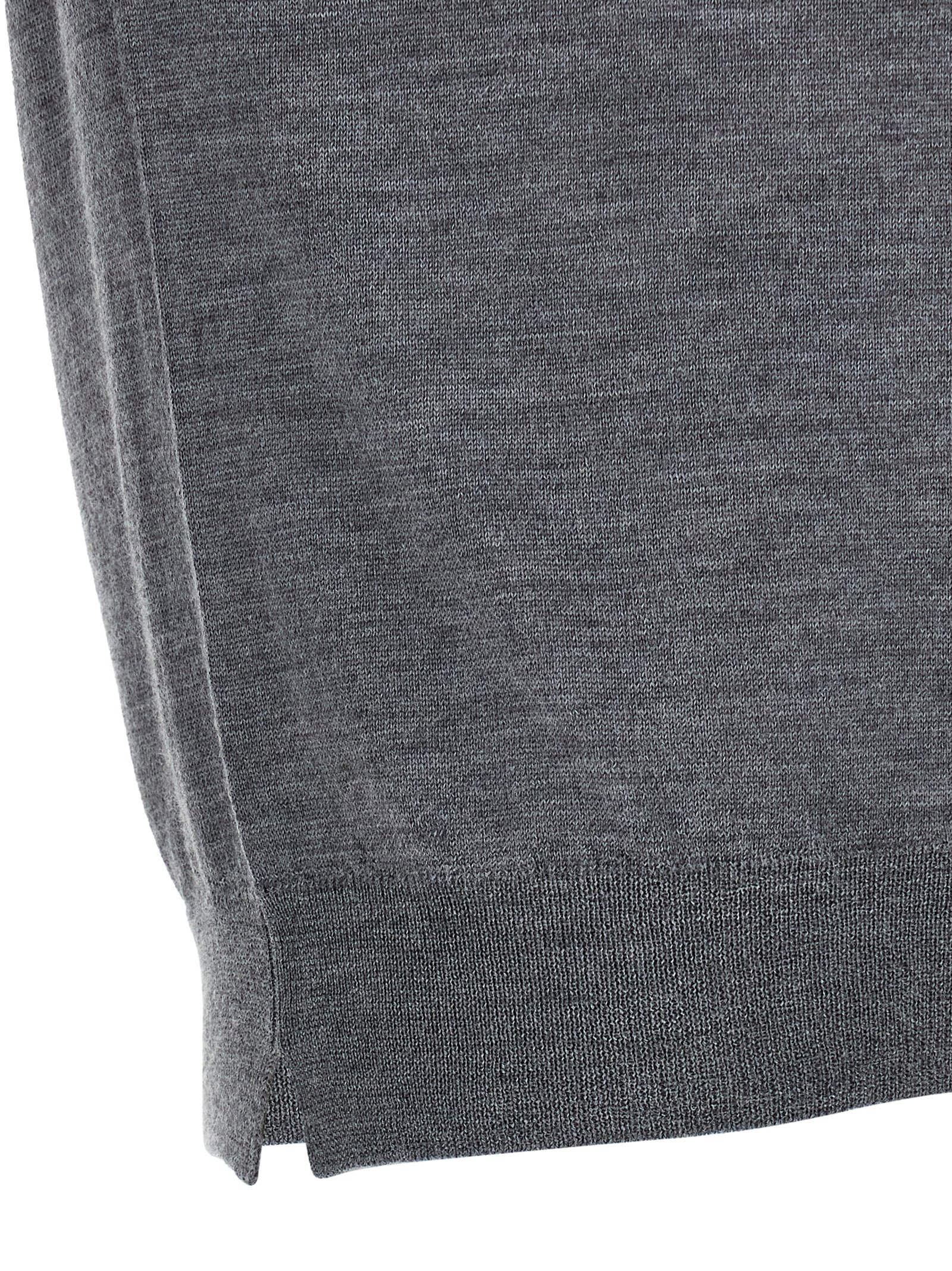 Sweater in merino wool, silk and extra fine cashmere blend, crew neck, long cuffed sleeves, side splits.