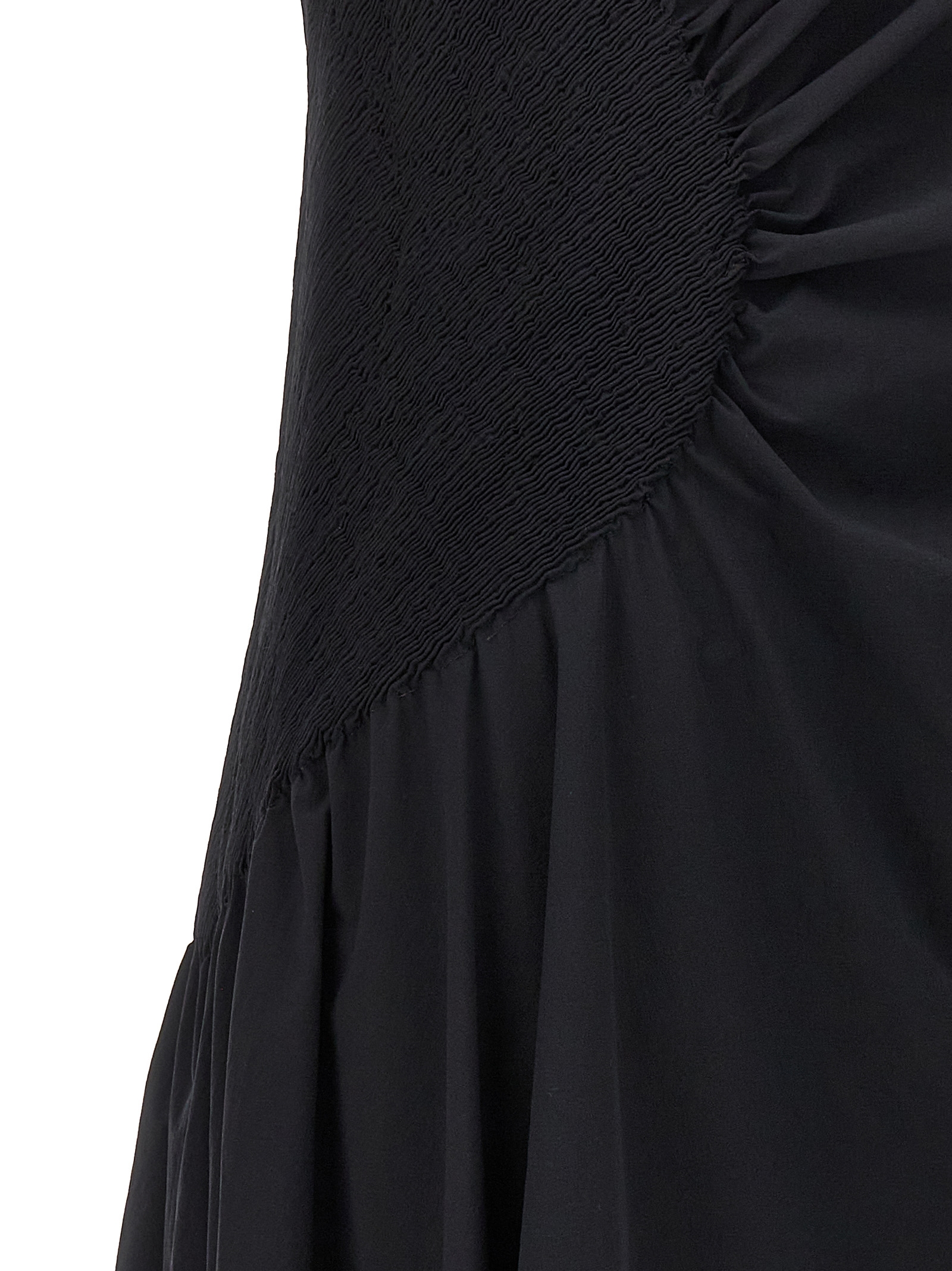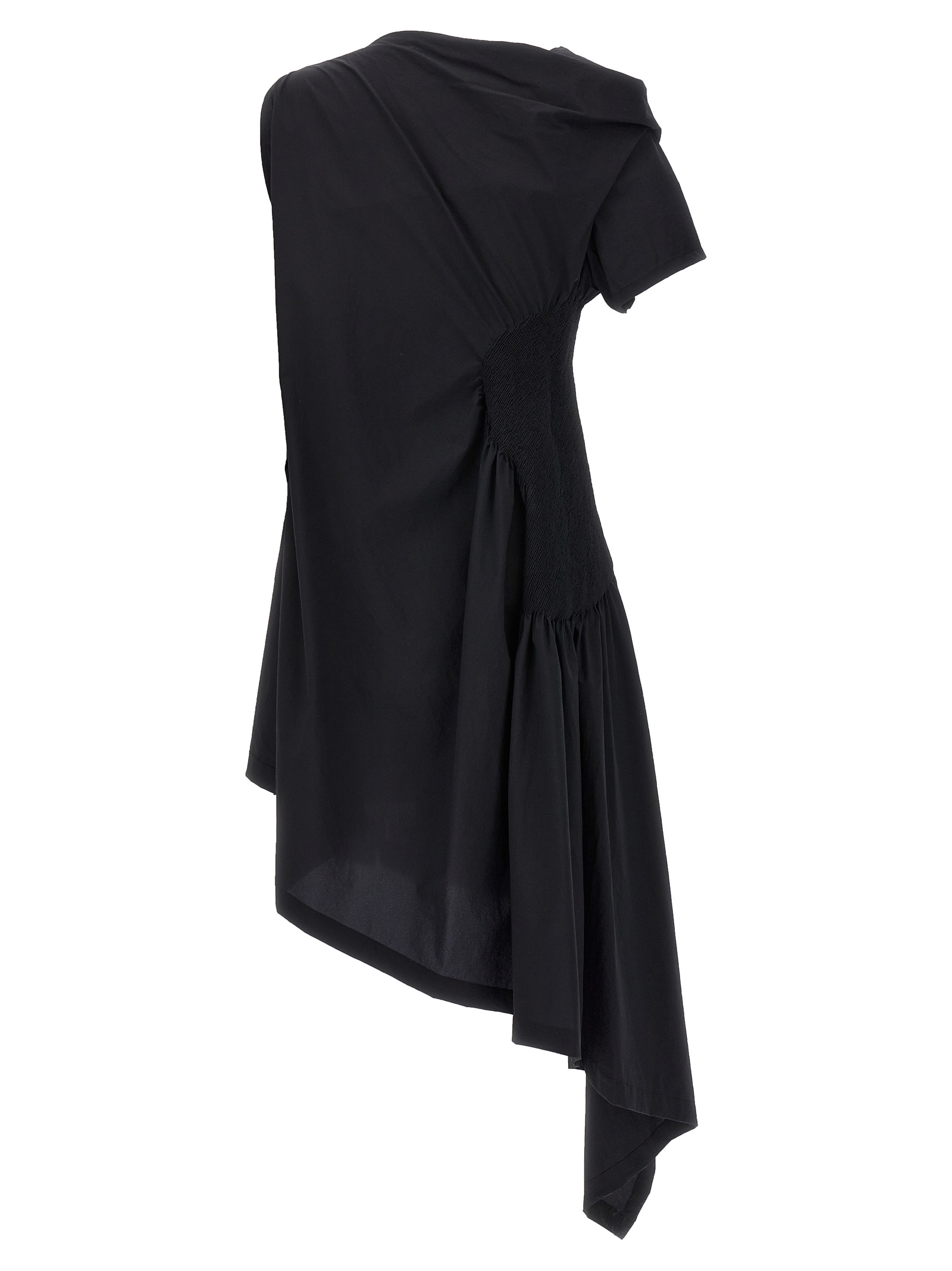 ‘Eye of the bean’ stretch tech fabric asymmetrical dress with side ruched detail.