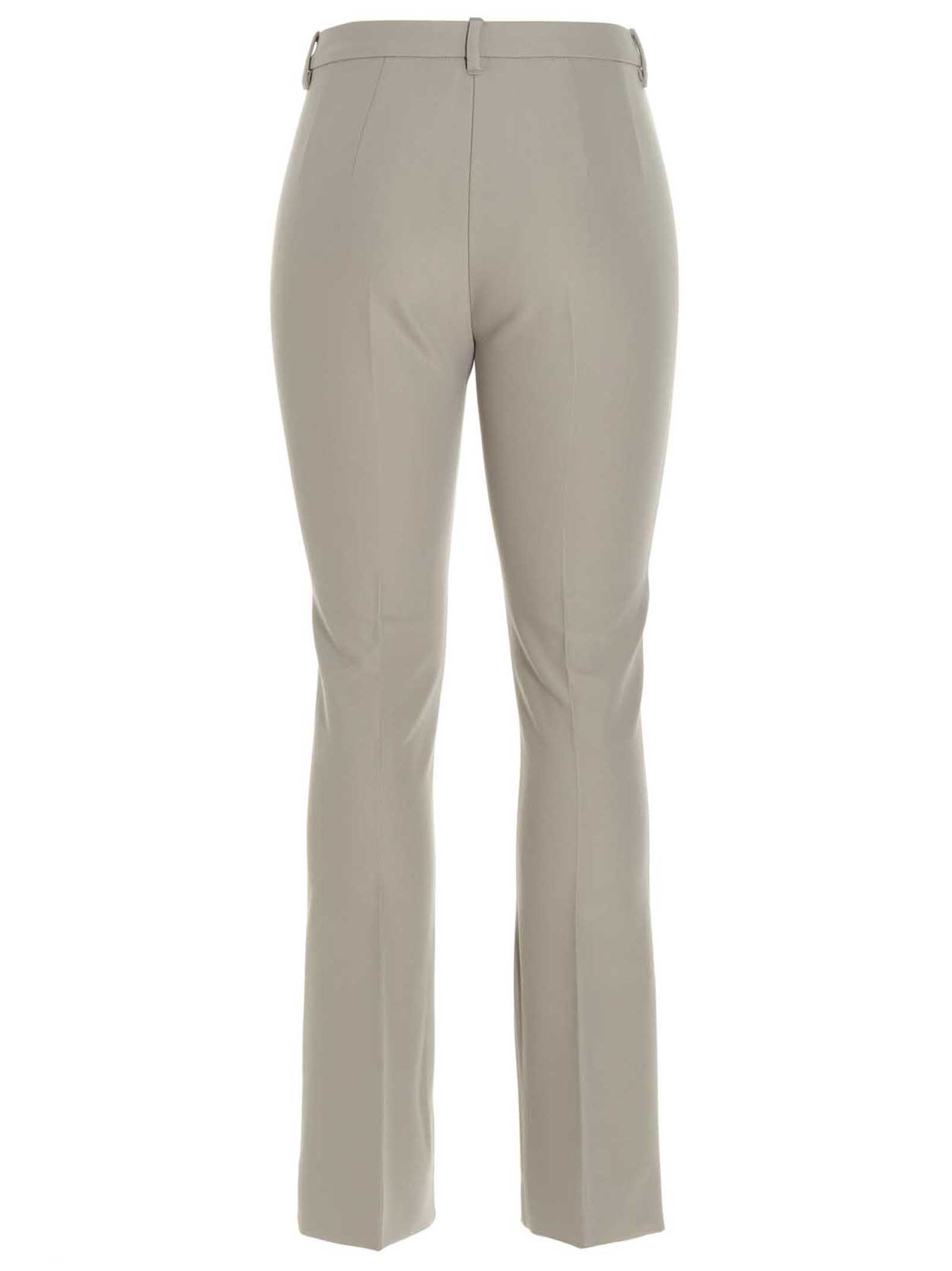 ‘Fatina’ pants made in double cotton and stretch viscose fabric with crease on the leg, slightly flared line at the bottom, a zip and hook closure.