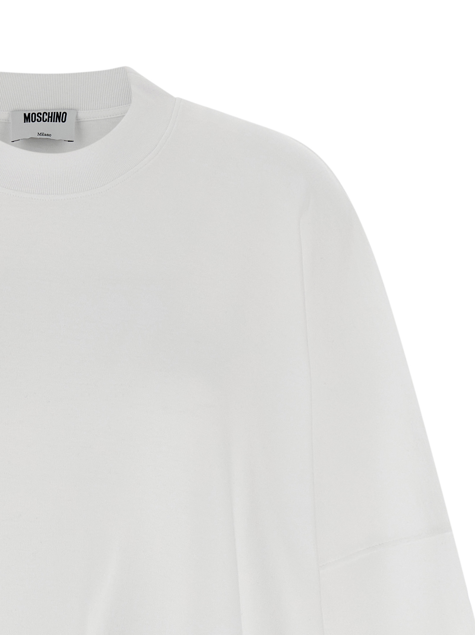 Heavy cotton mini t-shirt dress with crew neck, short sleeves with dropped shoulder and tone-on-tone logo embroidery, tone-on-tone feather piping on the hem.