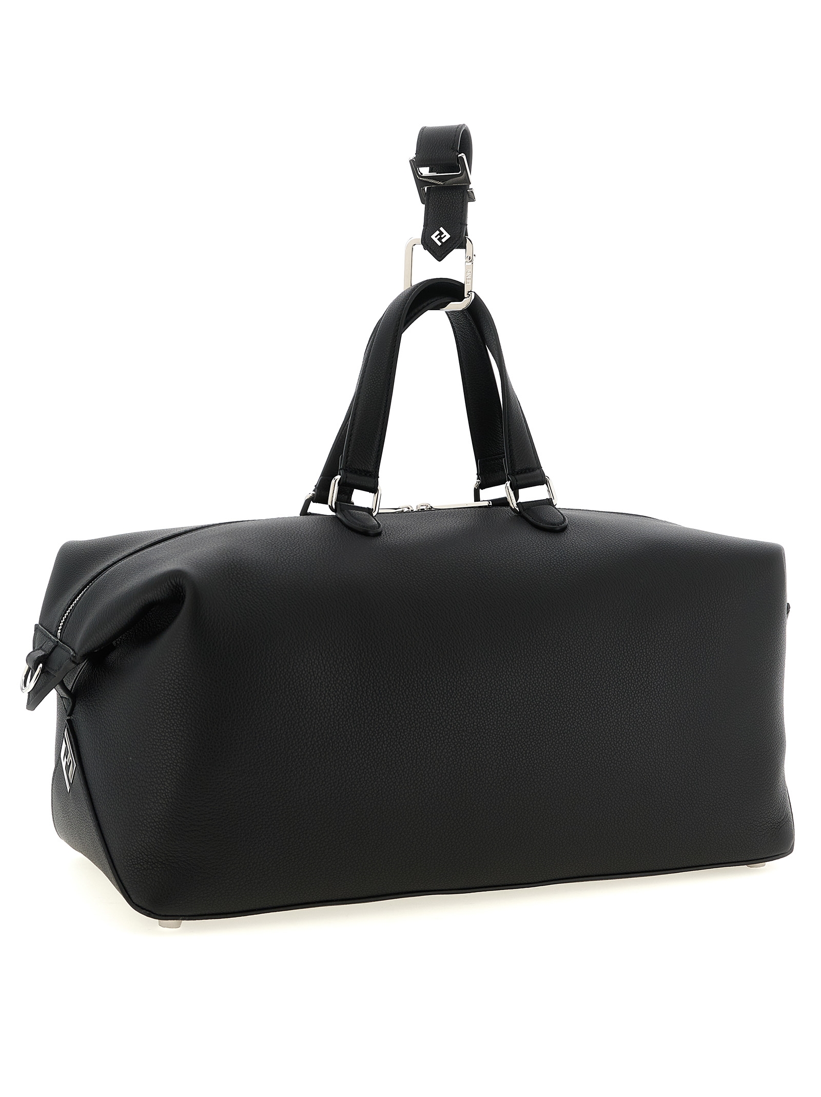 Medium ‘Fendi Lui’ bag in grenade calfskin leather, metal FF appliqué on the corners, double fixed handle, top zip closure, side snap buttons to modulate shape and capacity, waterproof technical fabric lining with inside pocket, adjustable and removable tape shoulder strap. Equipped with water-repellent nylon dustbag and leather band with snap hook to the trolley.
