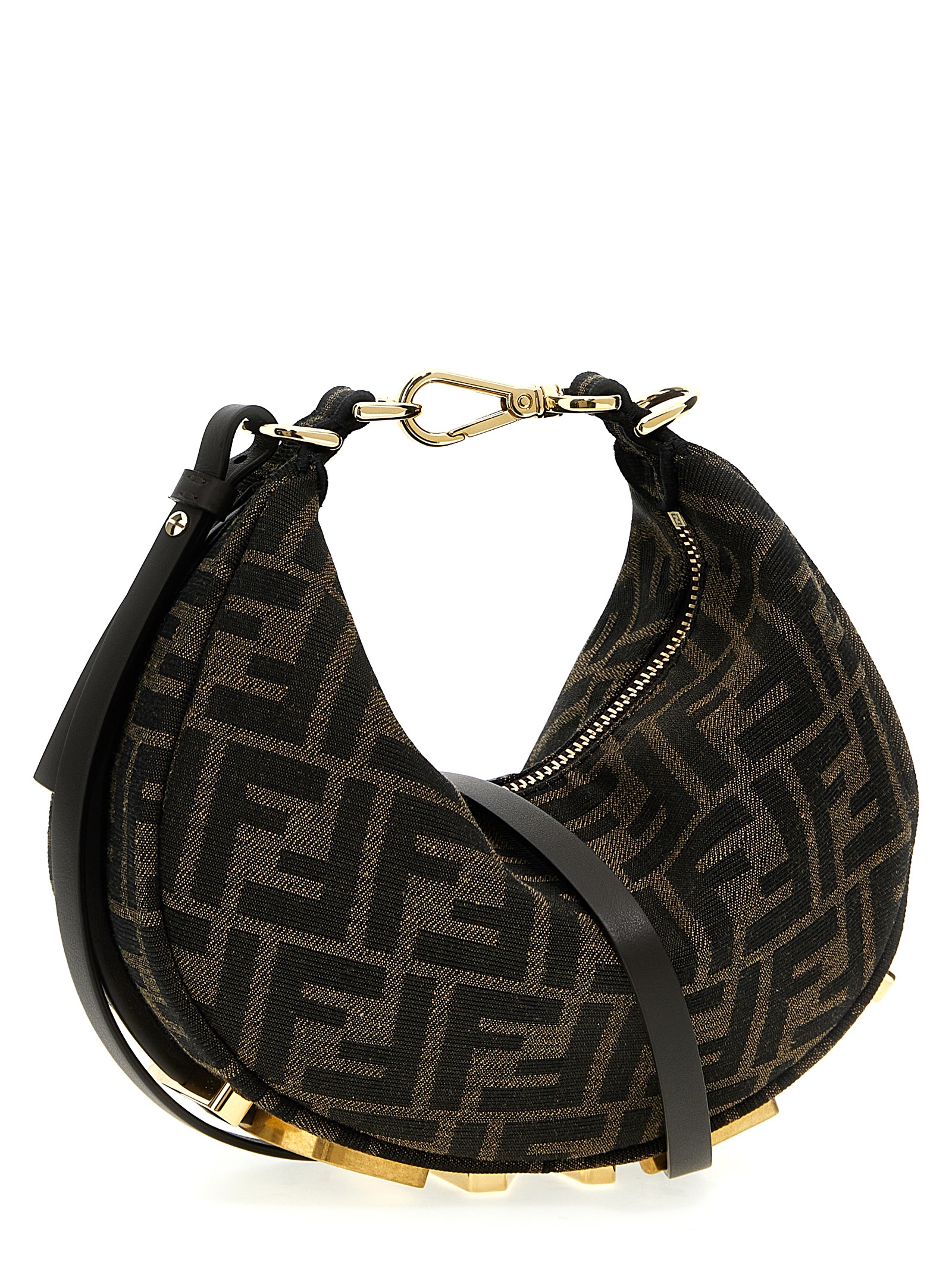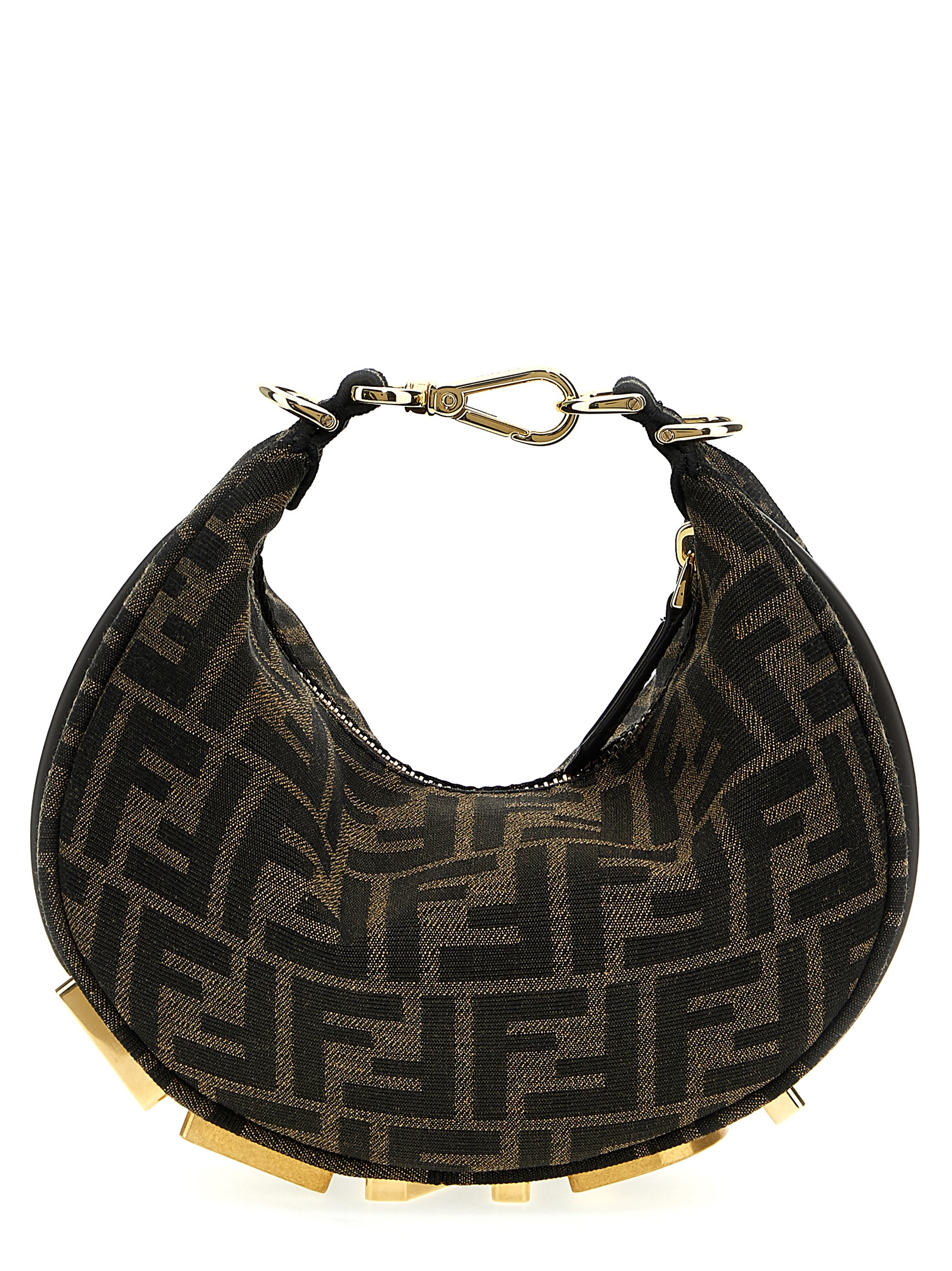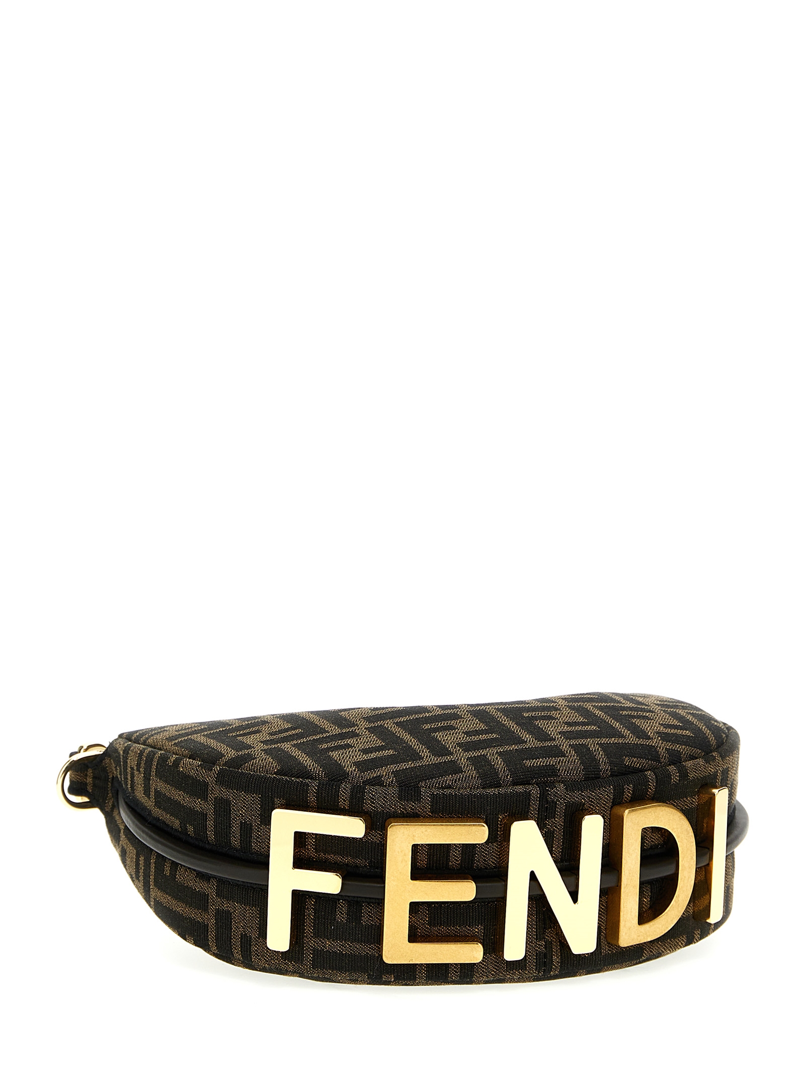 ‘Fendigraphy Mini’ handbag in fabric with FF jacquard pattern, zip closure, metal logo lettering at the bottom of the bag. It can be carried by hand using the snap hook closure or on the shoulder using the removable and adjustable shoulder strap.