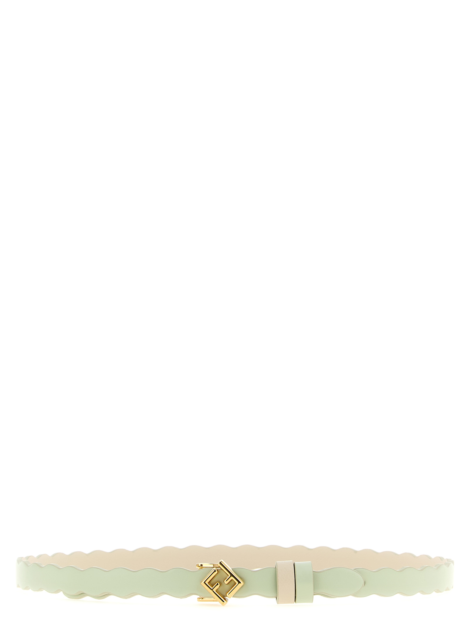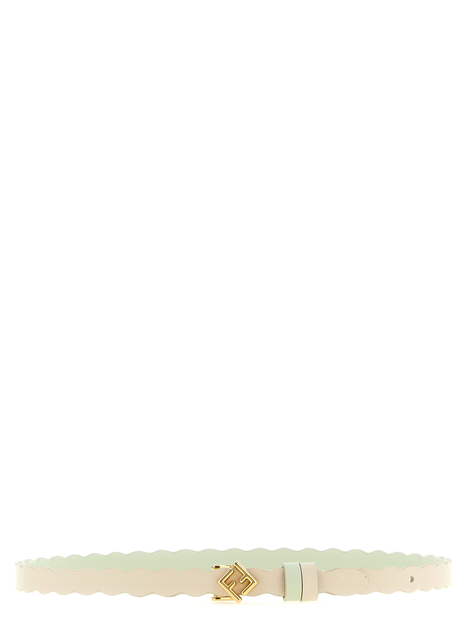 Reversible hammered and smooth leather belt with contoured edges, metal ‘FF Diamonds’ diagonal cufflink closure.