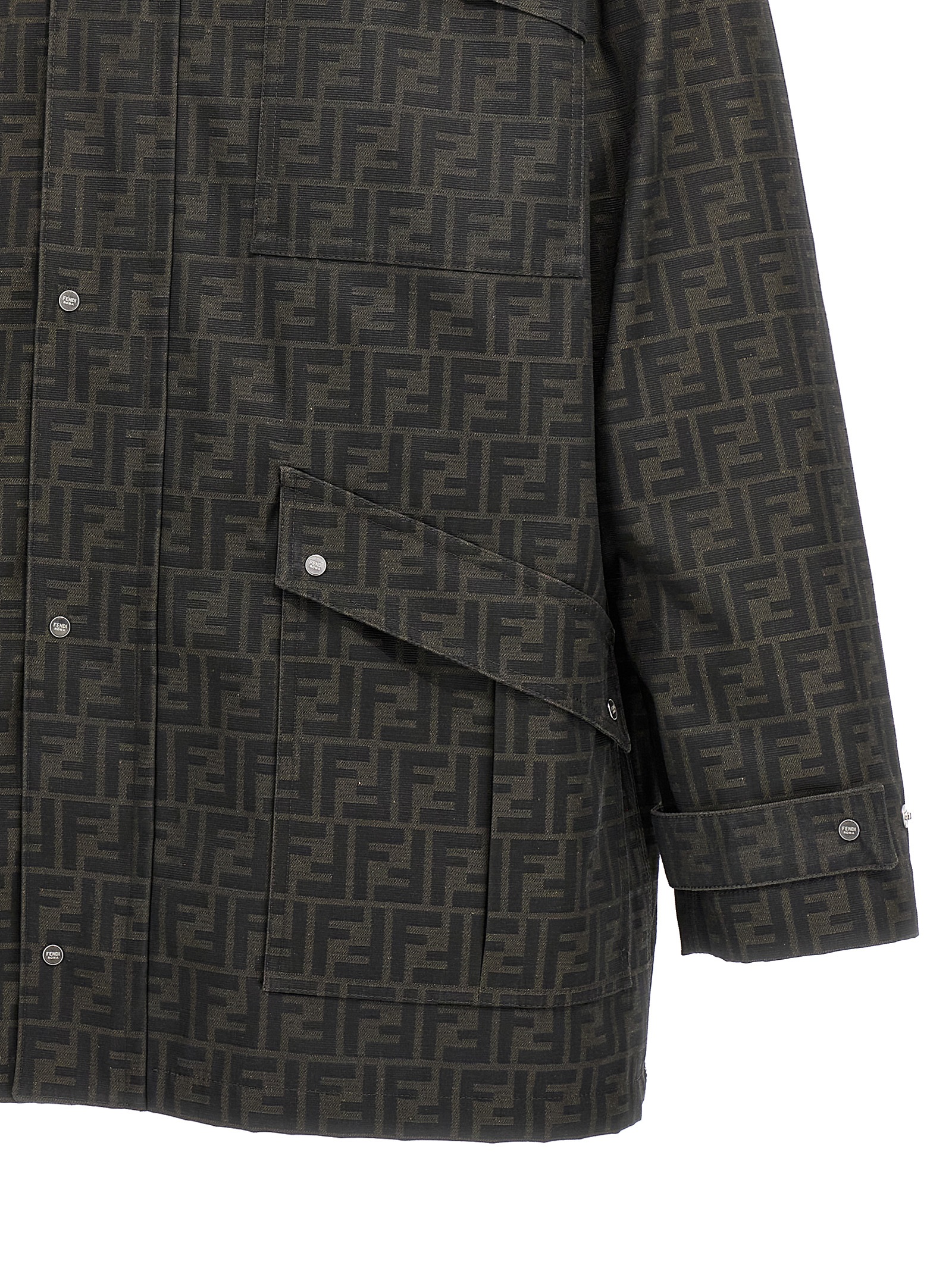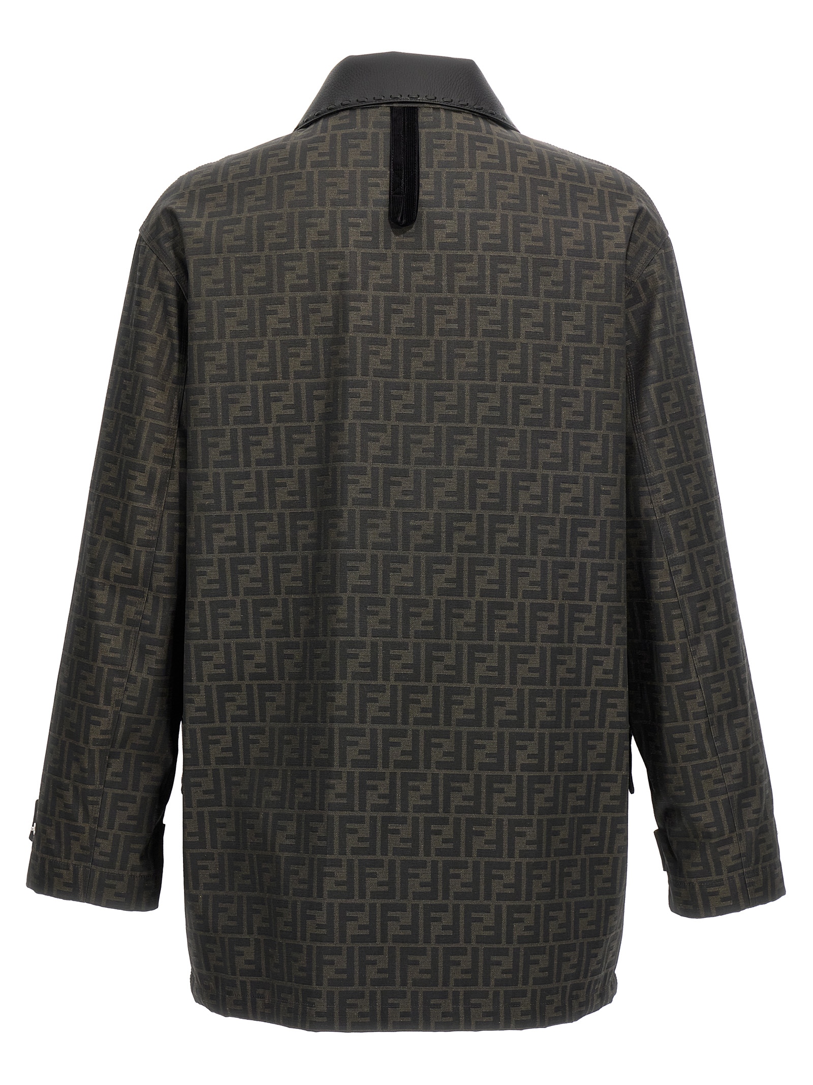 Waxed fabric jacket with all-over jacquard ‘FF’ logo, pockets, deer leather collar, long sleeves.