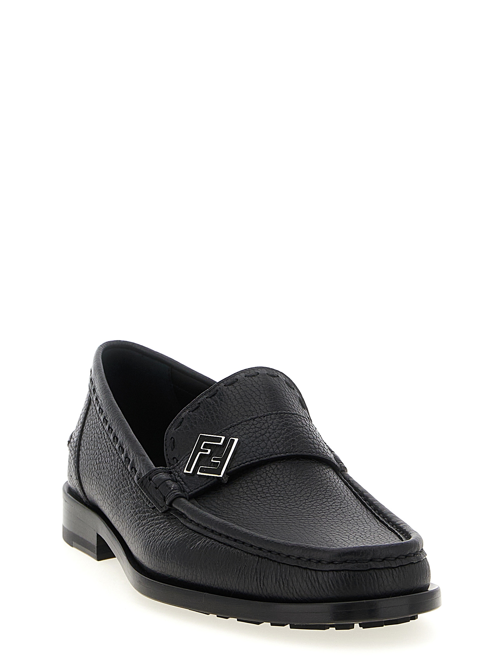‘FF Metal’ botched calf leather loafers with metal ‘FF’ detail on the front, rubber sole with embossed FF pattern.
