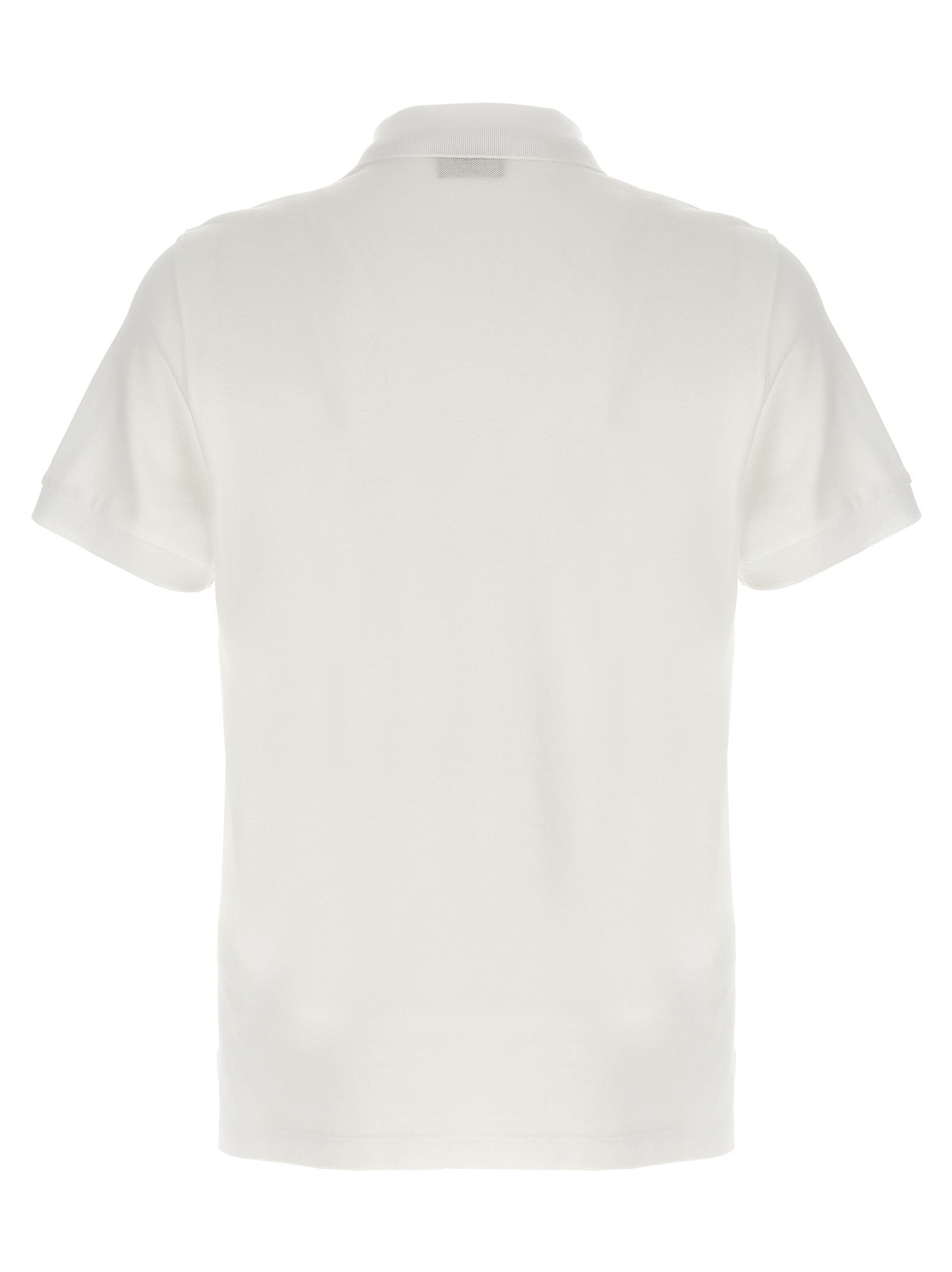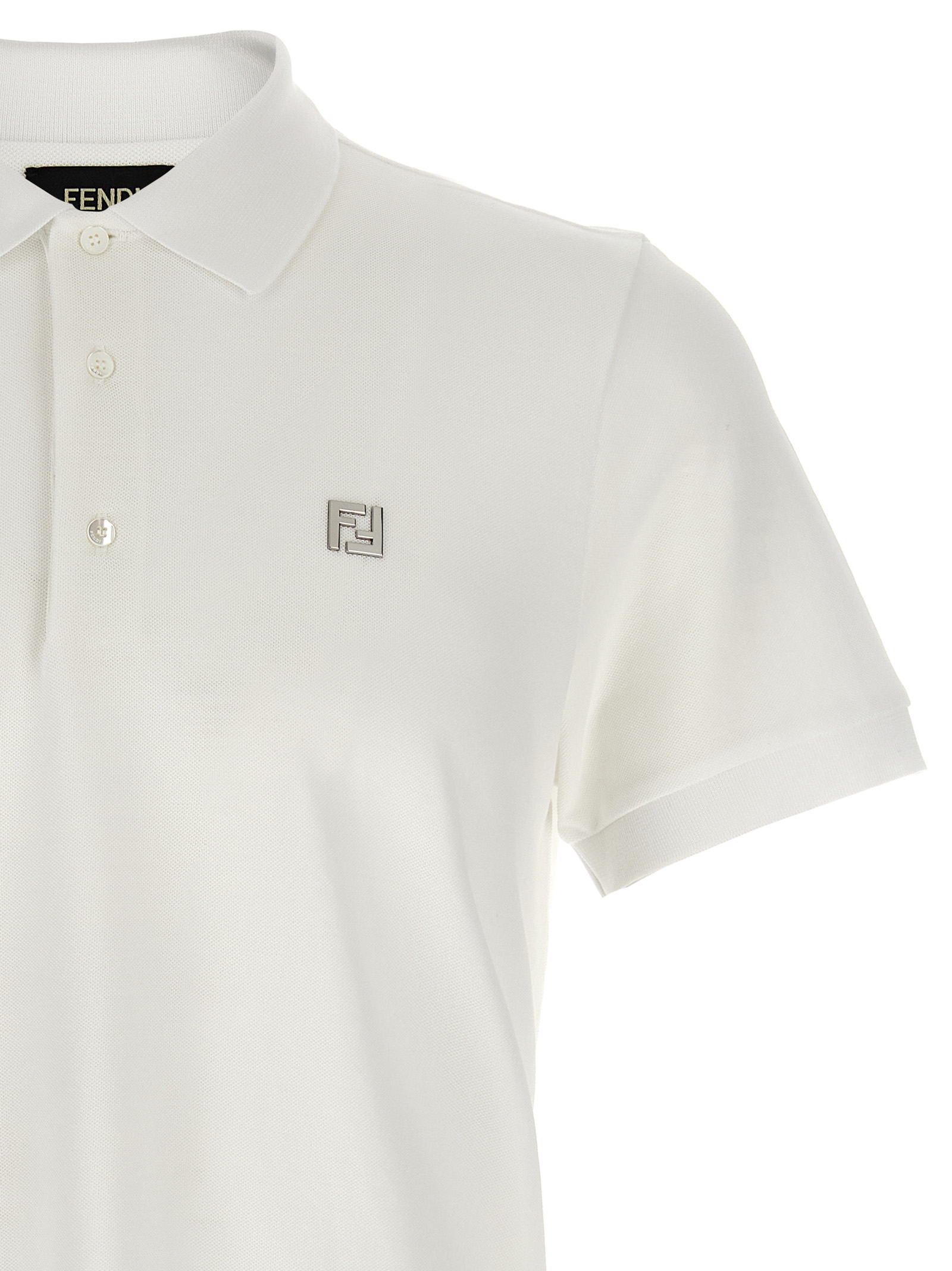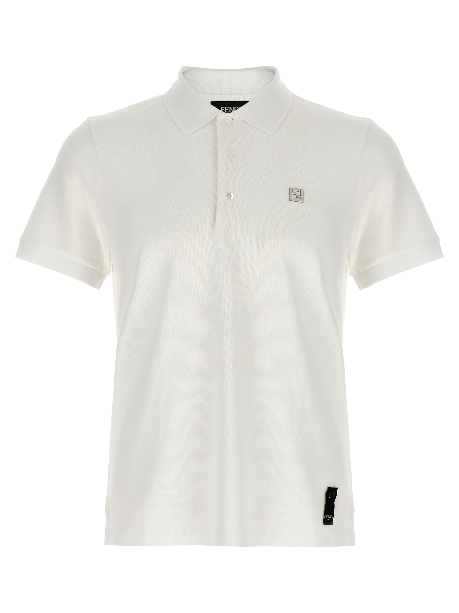 Cotton piqué polo shirt, front metal FF logo, collar and buttons, short sleeves, side slits.