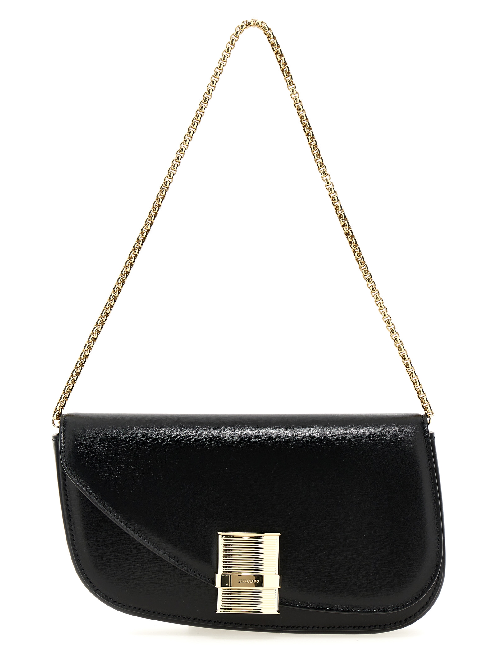 Leather ‘Fiamma XS’ shoulder bag, magnetic flap closure, adjustable shoulder strap..