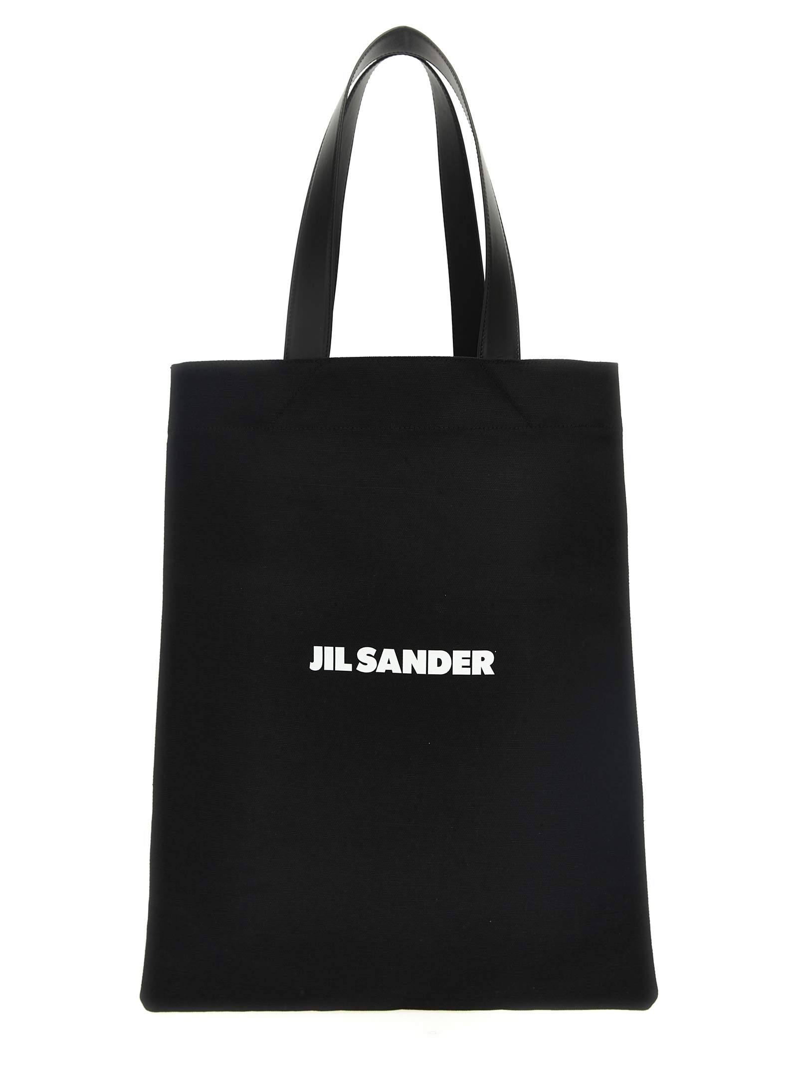 ‘Flat Shopper’ canvas shopping bag with leather handles, logo print.