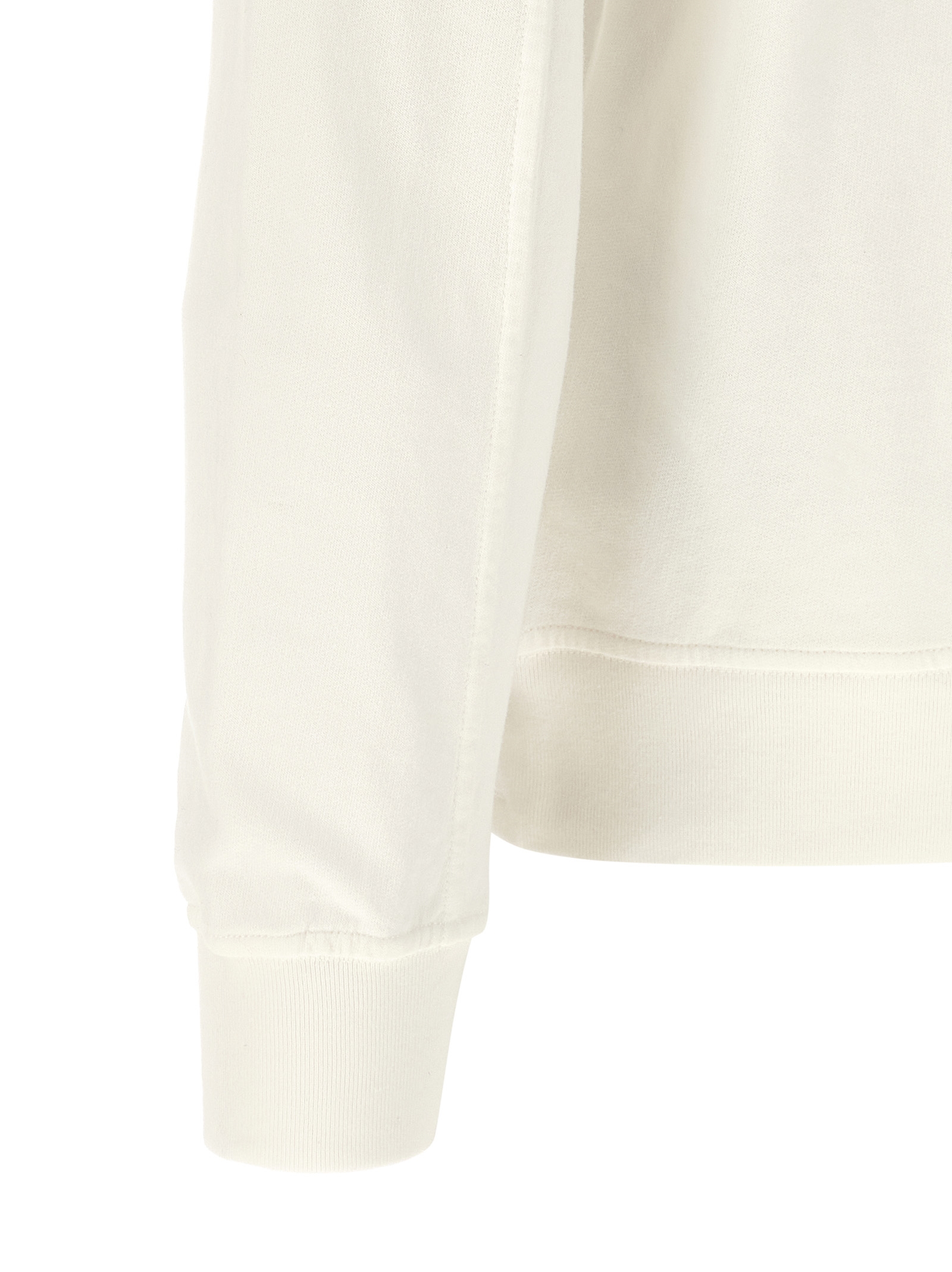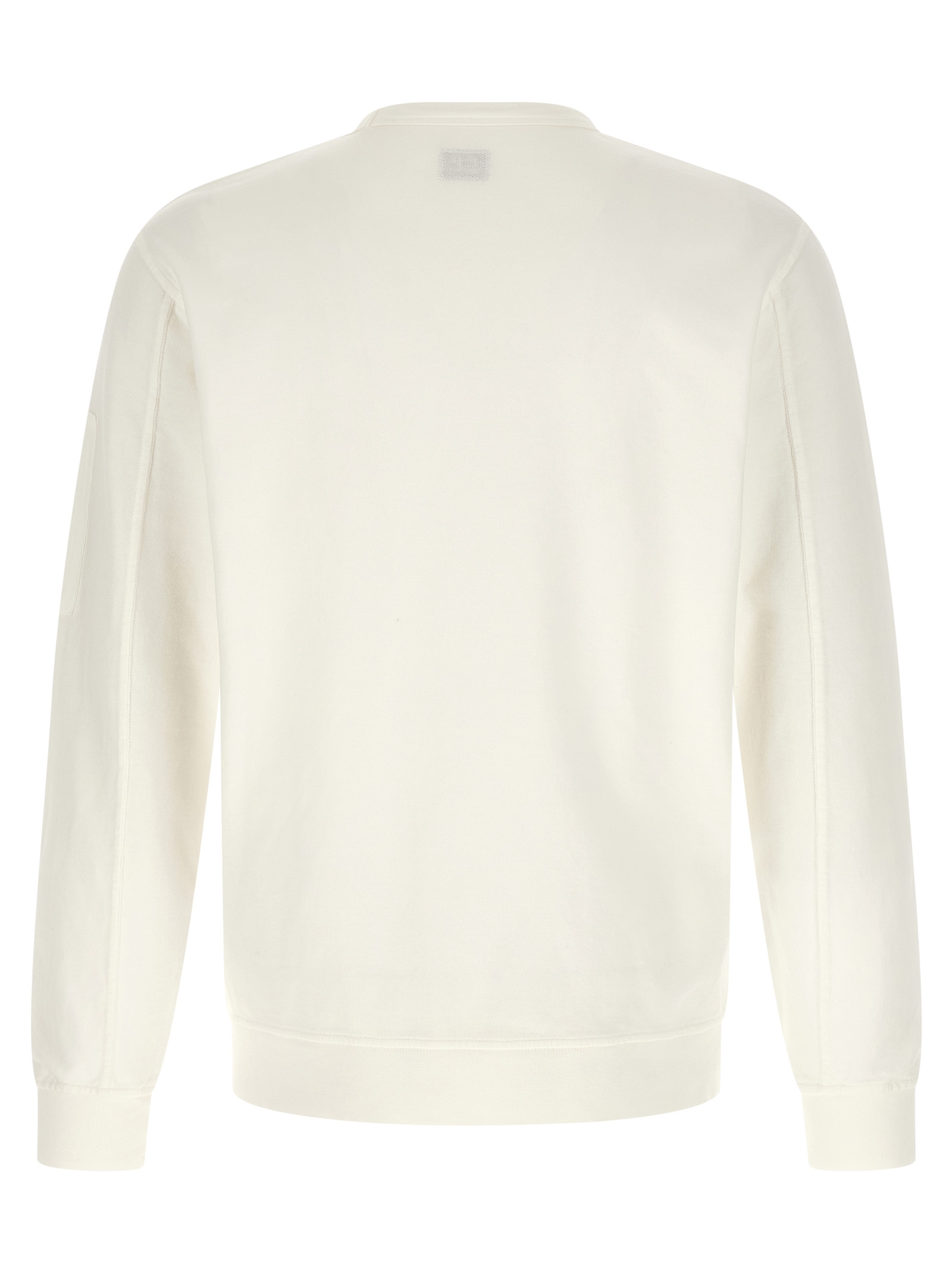 Garment-dyed light cotton fleece sweatshirt, crew neck, long cuffed sleeves and iconic C.P. Company applied lens, headband on the hem.