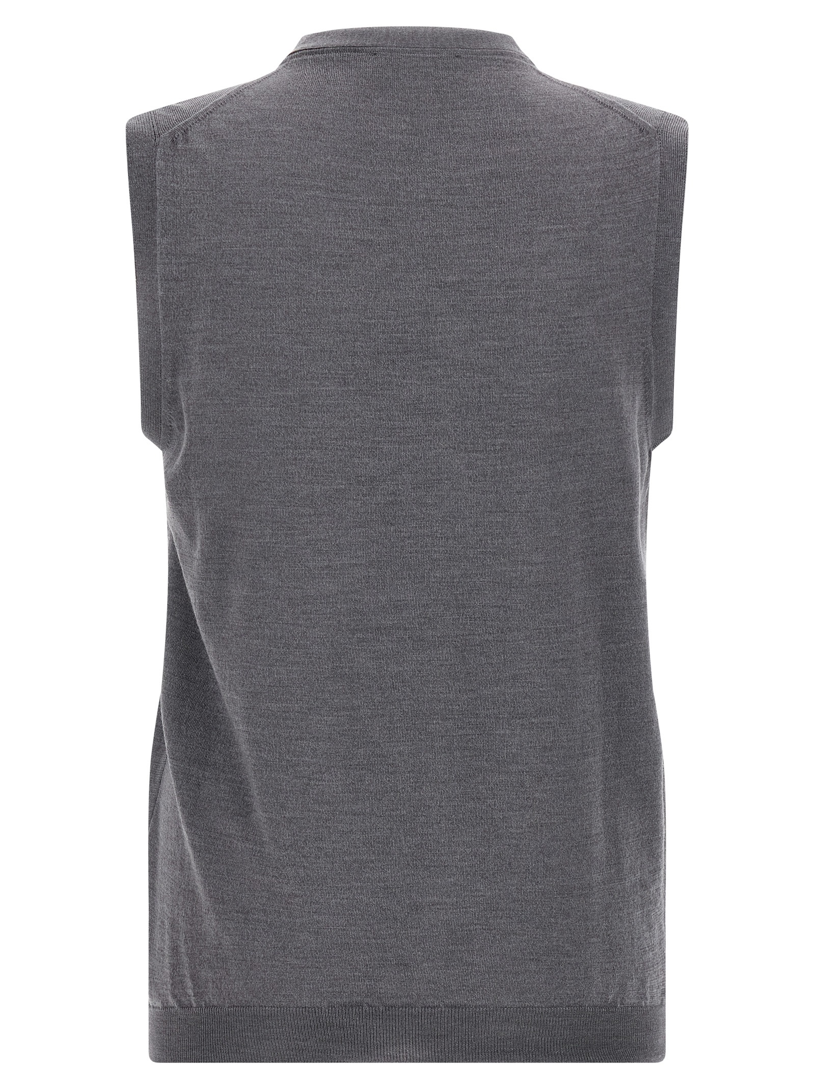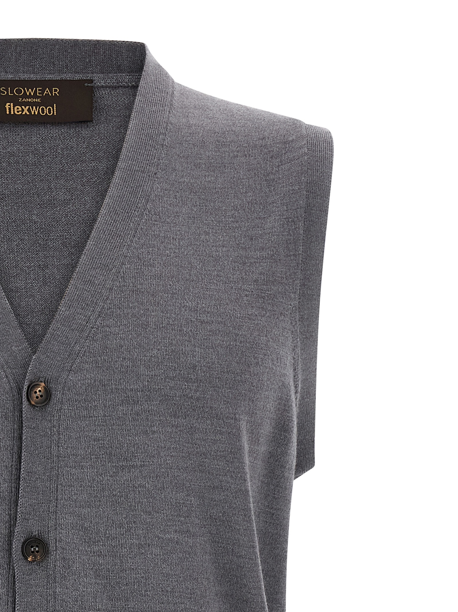 Flexwool wool vest with V-neck, front button closure.