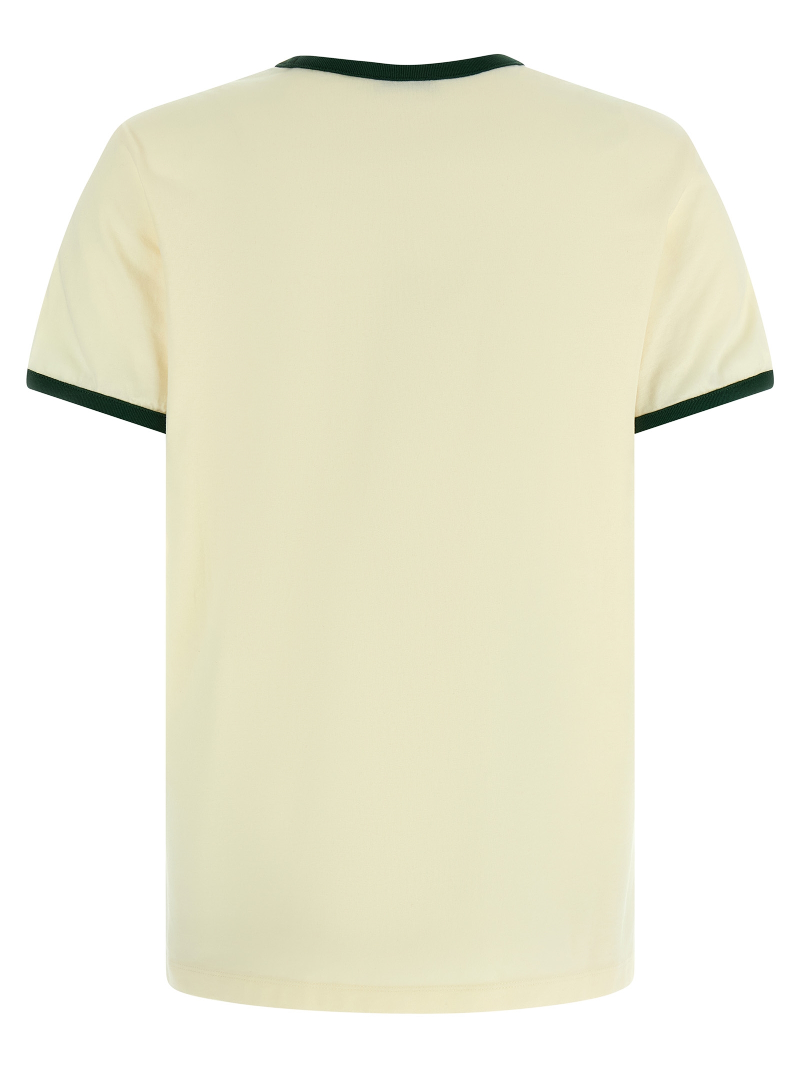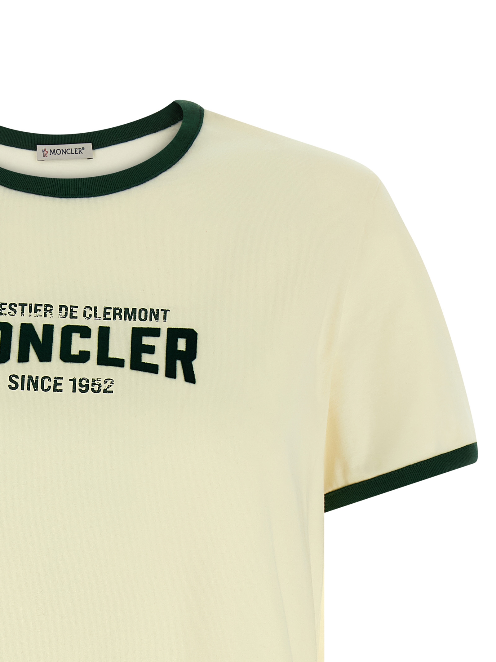 Cotton jersey T-shirt with contrasting ribbed details, water-based print with a lived-in effect and front flocked logo, crew neck, short sleeves with cuffs.