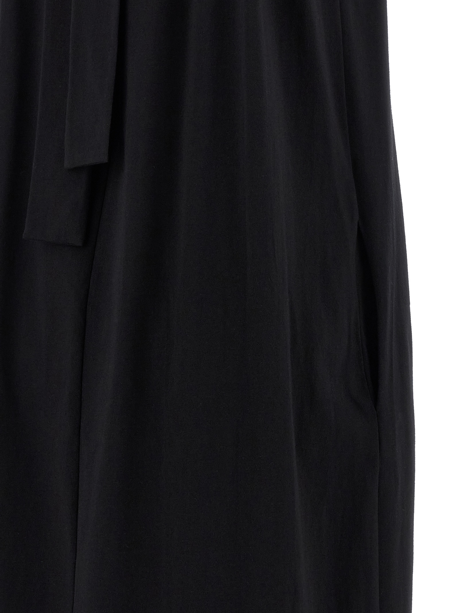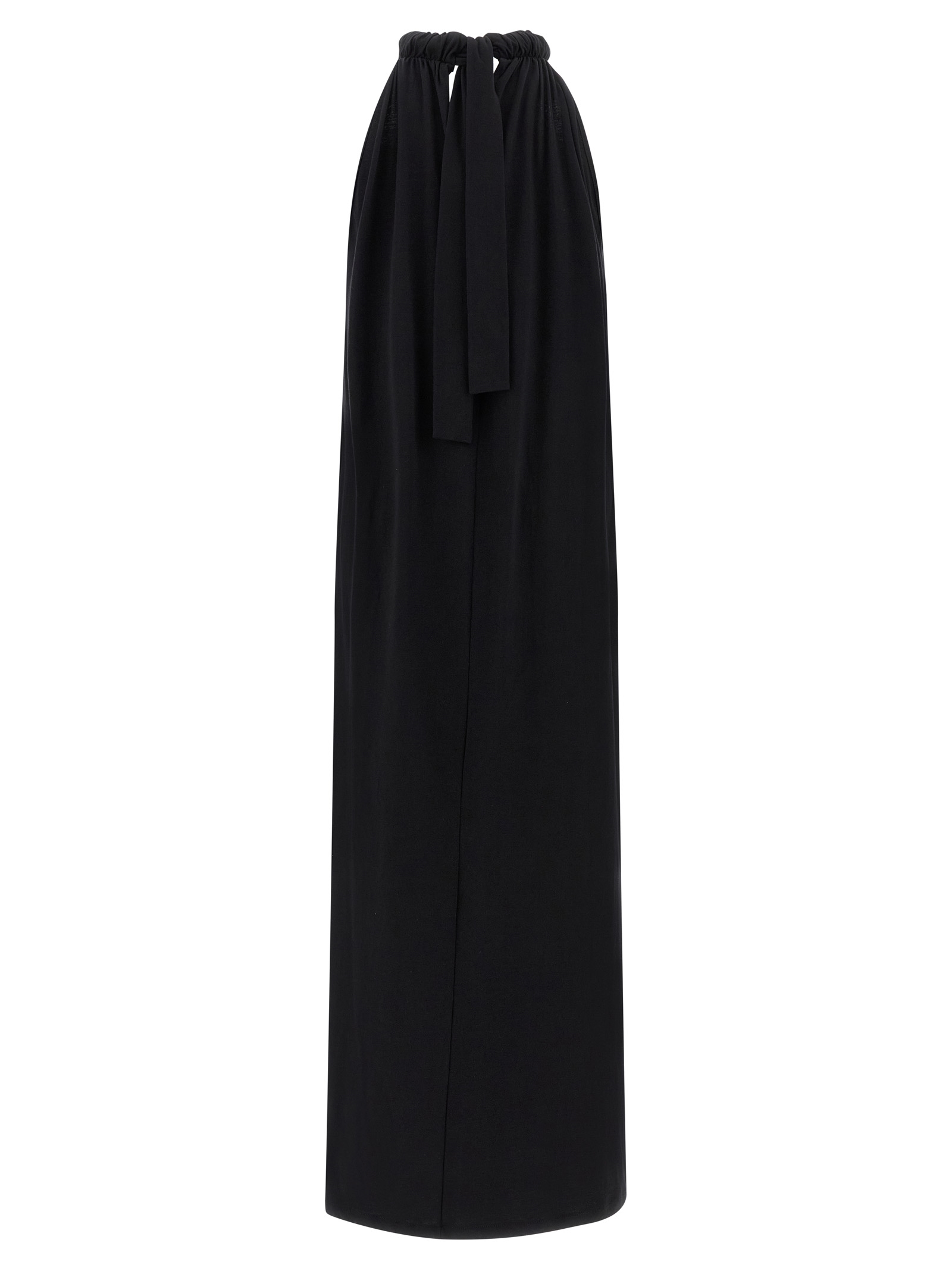 Long ‘Floor Lenght’ cotton jersey dress with American neckline with curl and jersey mazi coulisse knotted at the back, back V-neck, sleeveless.
