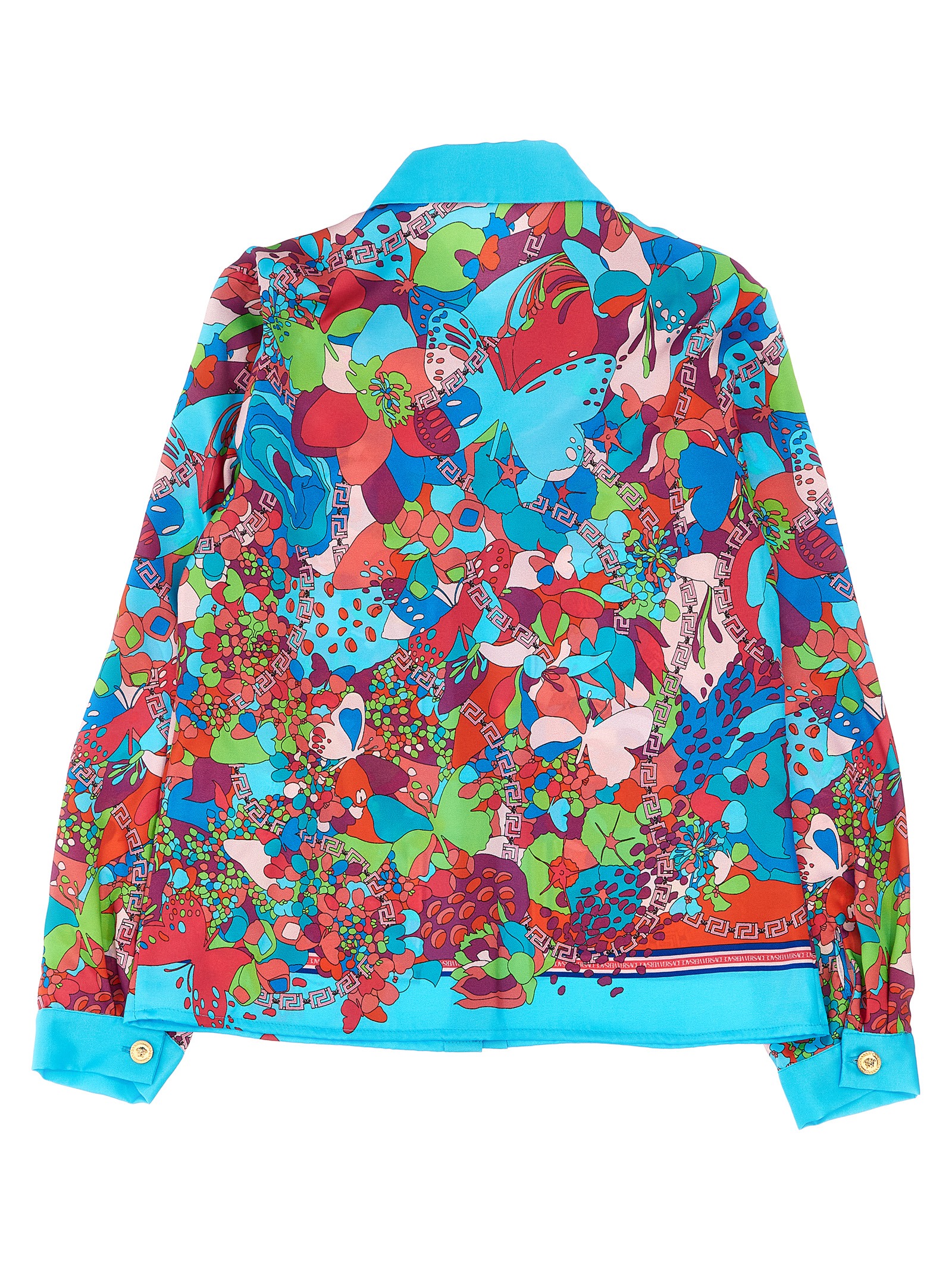 Satin shirt with floral print, button closure, long cuffed sleeves.leeves.
