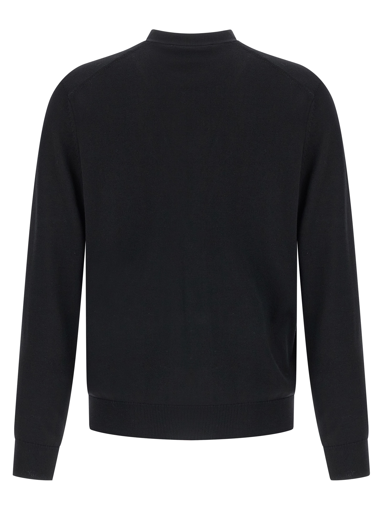Extrafine merino wool cardigan, Fox Head patch and front button closure, V-neck, pockets, long cuffed sleeves.