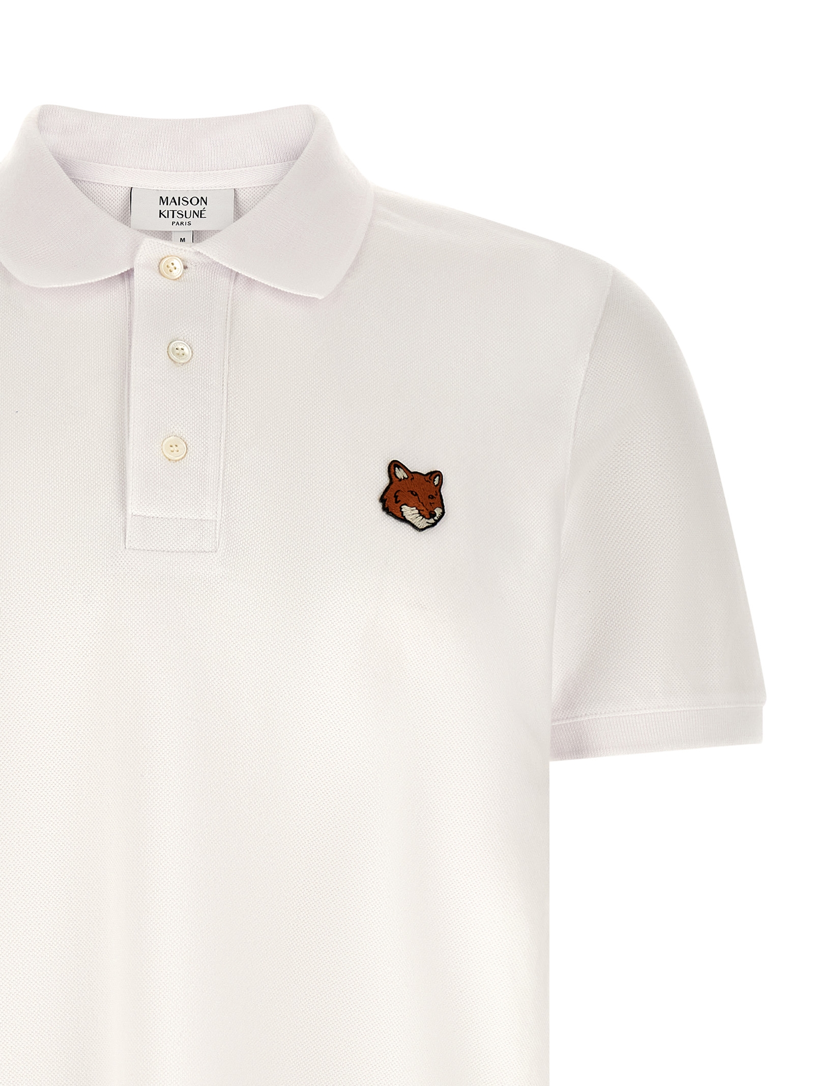 Piqué cotton polo shirt, front ‘Fox Head’ patch, collar and buttons, short sleeves with cuffs, side slits at the hem.