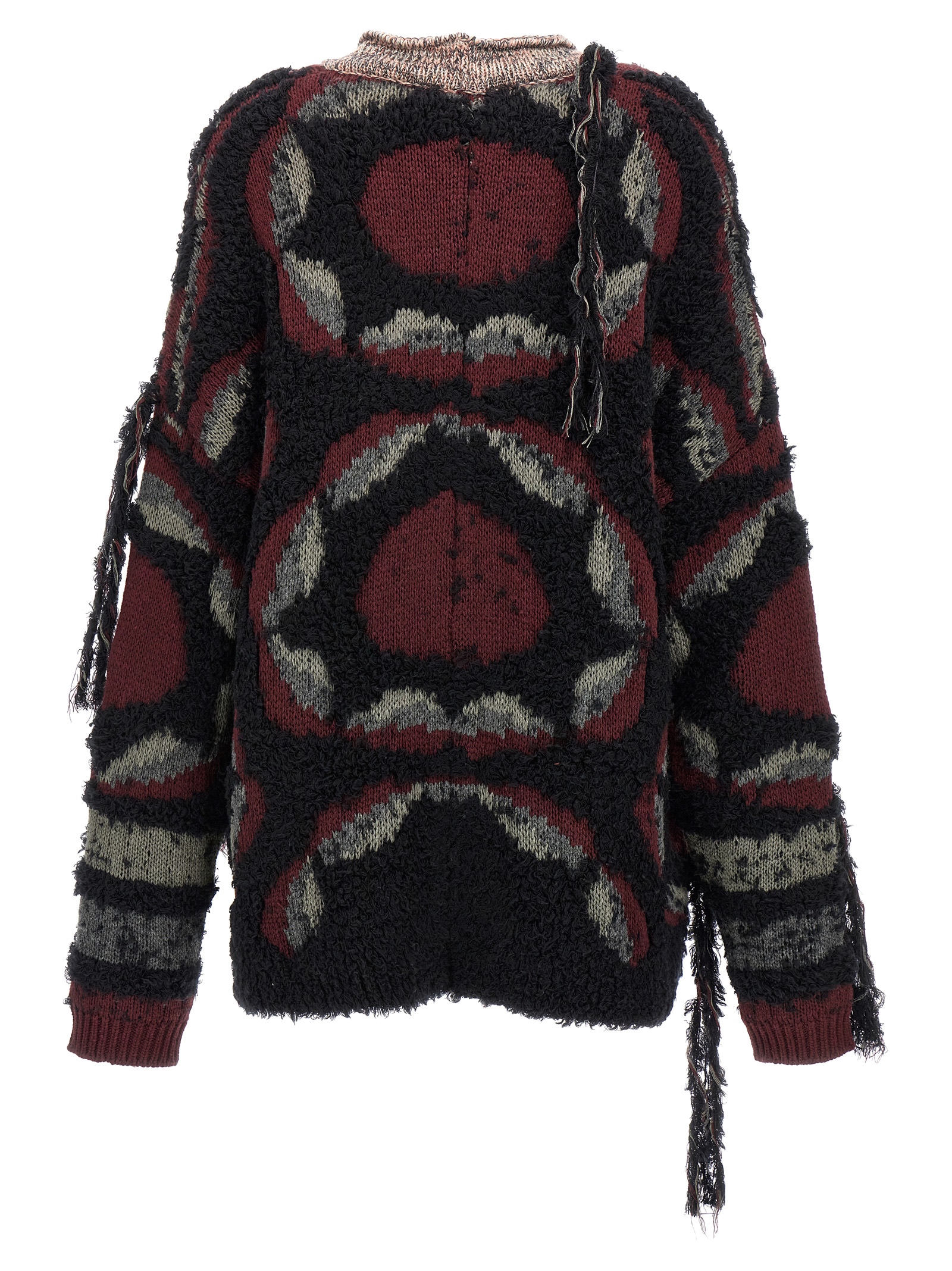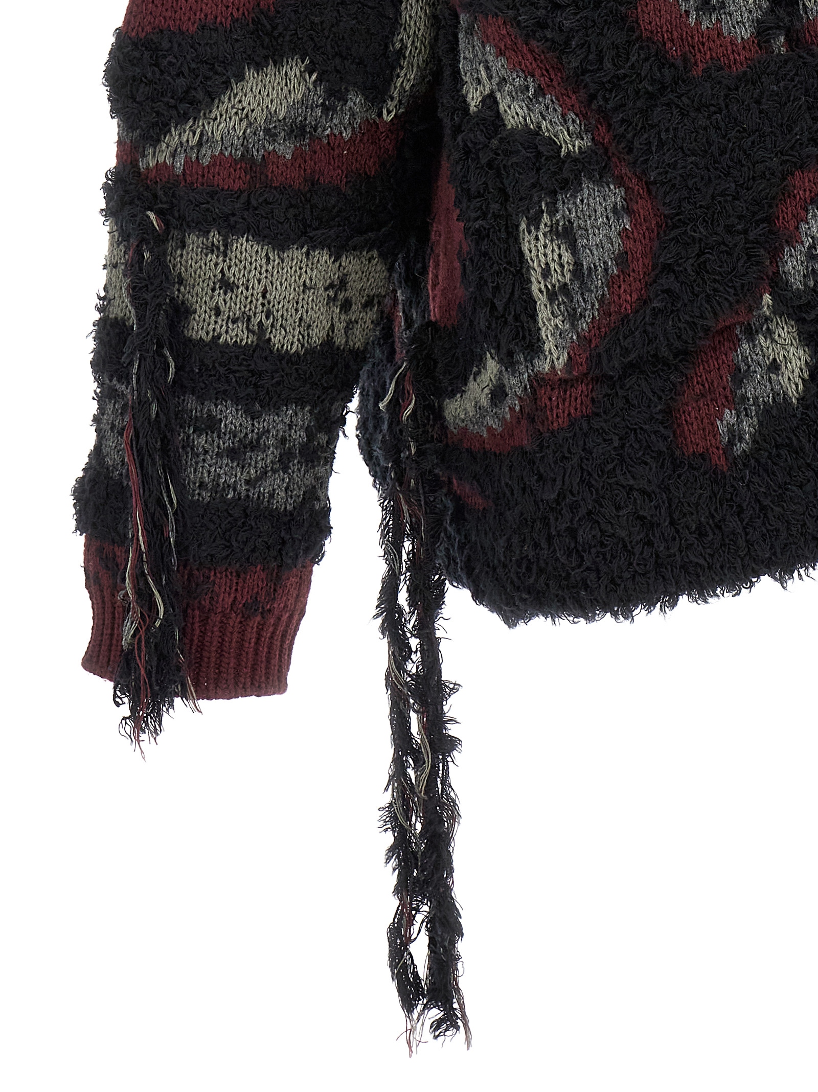 Oversize wool blend cardigan with fringes, button closure, pockets, long cuffed sleeves.