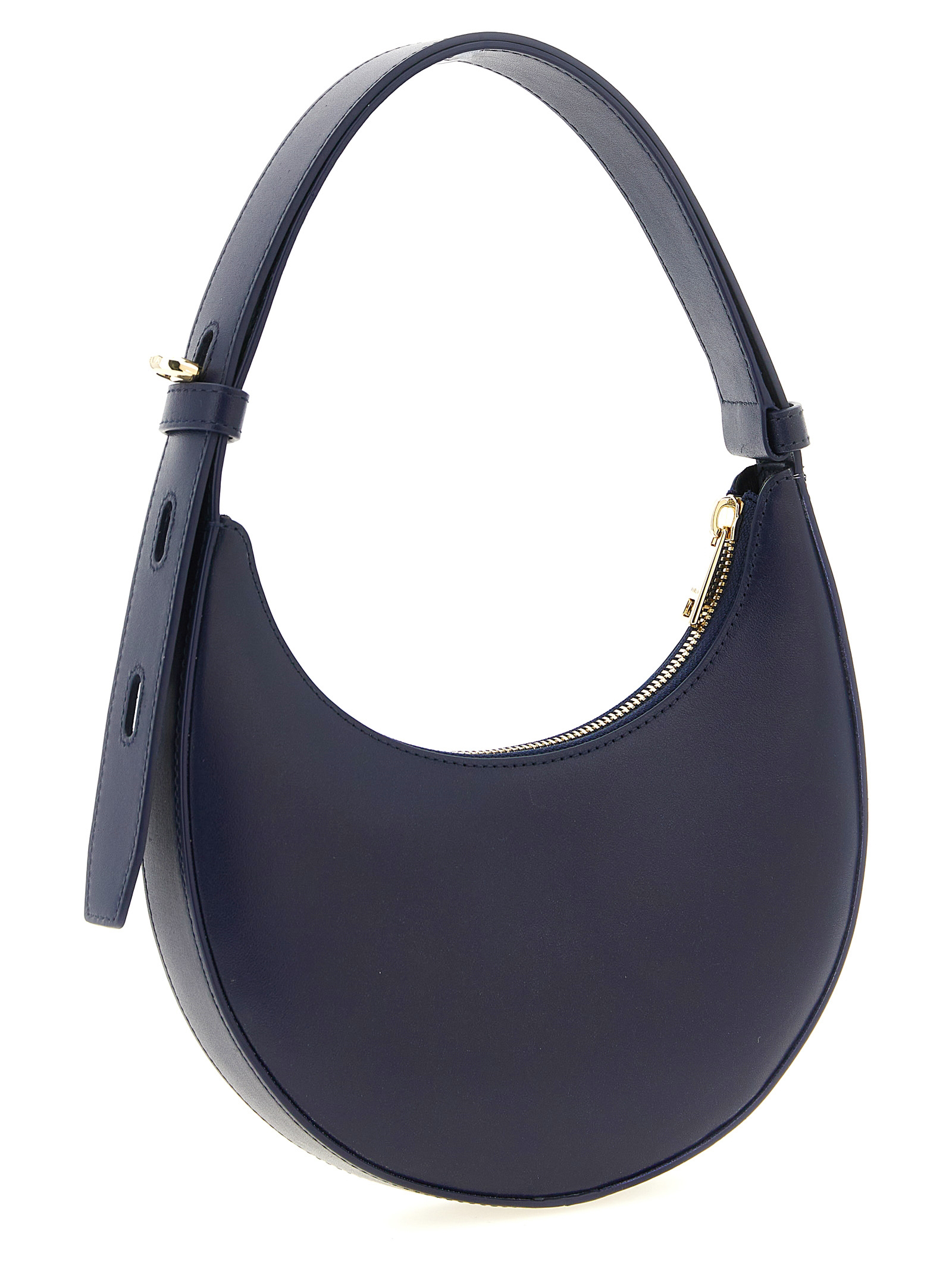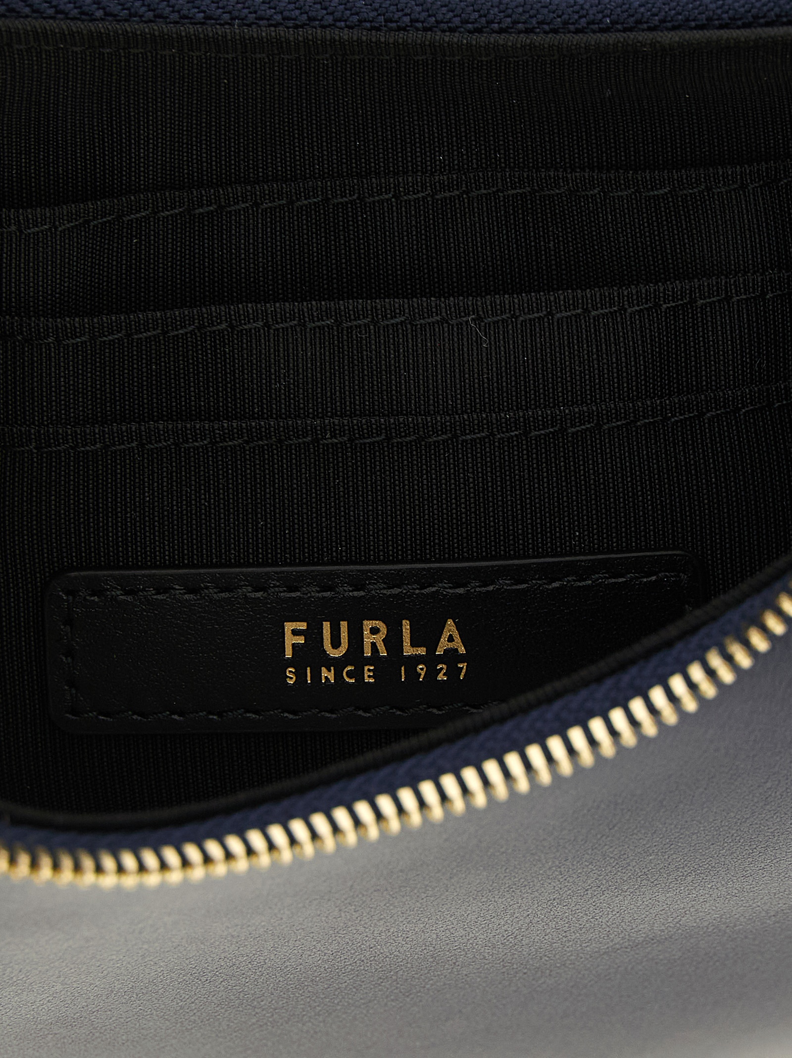 ‘Furla Delizia’ mini leather shoulder bag with a silky and smooth touch, rigid crescent structure, front embossed logo, top zip closure, adjustable handle with metal swivel mechanism.