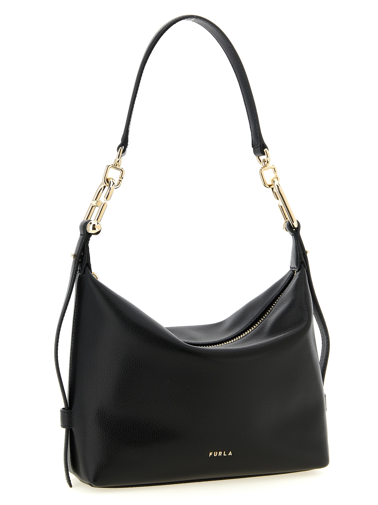 Mignon ‘Furla Tonie’ shoulder bag in fine grain-effect printed leather, metal logo-shaped details Side arches that can be clipped together to make the handbag, front metal lettering logo, top zip closure, removable short handle, adjustable and removable shoulder strap.