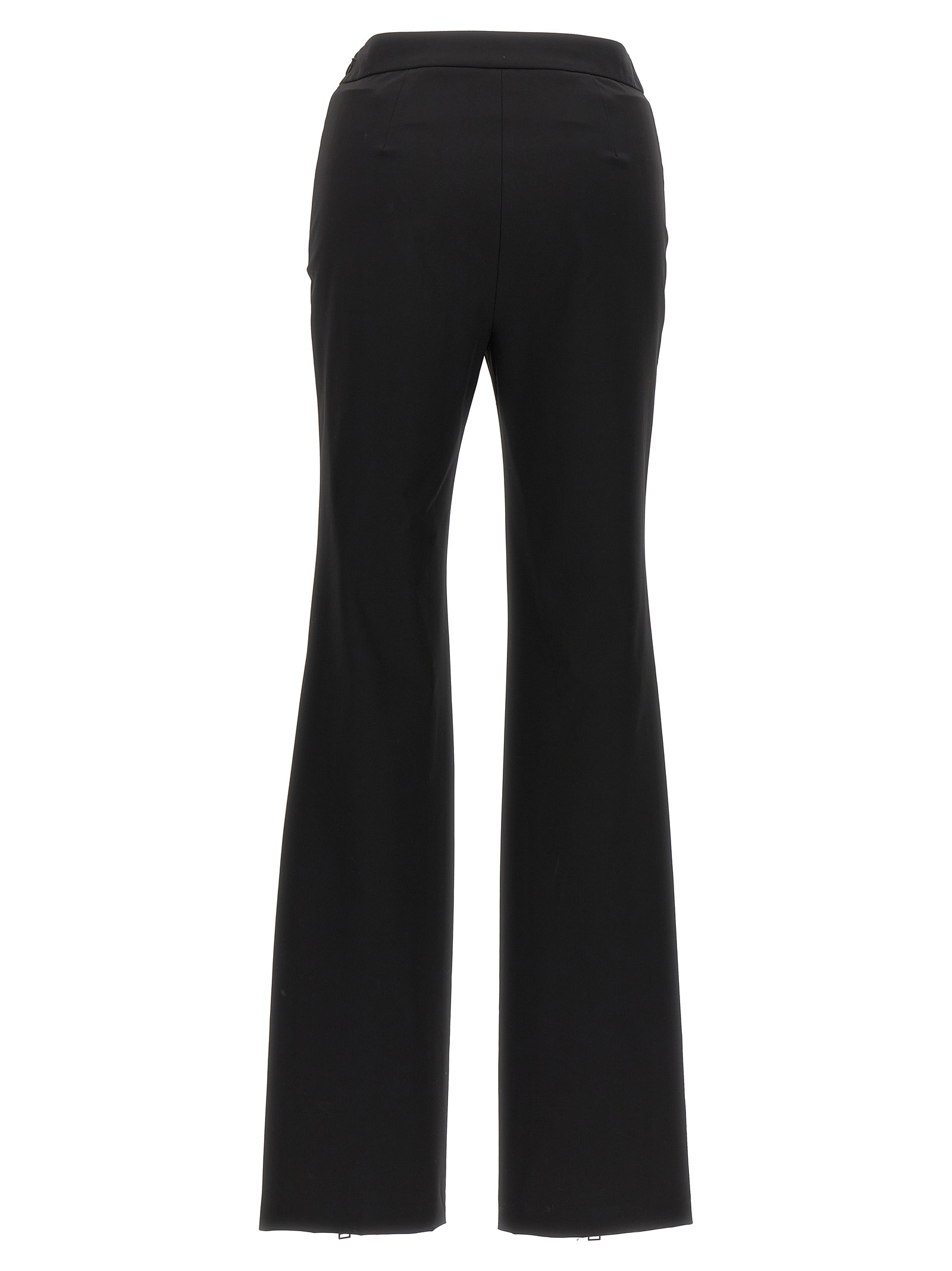‘Gabardine zip’ stretch fabric pants with tone-on-tone maxi front zip from the knee down, and logo patch detail at the waist.