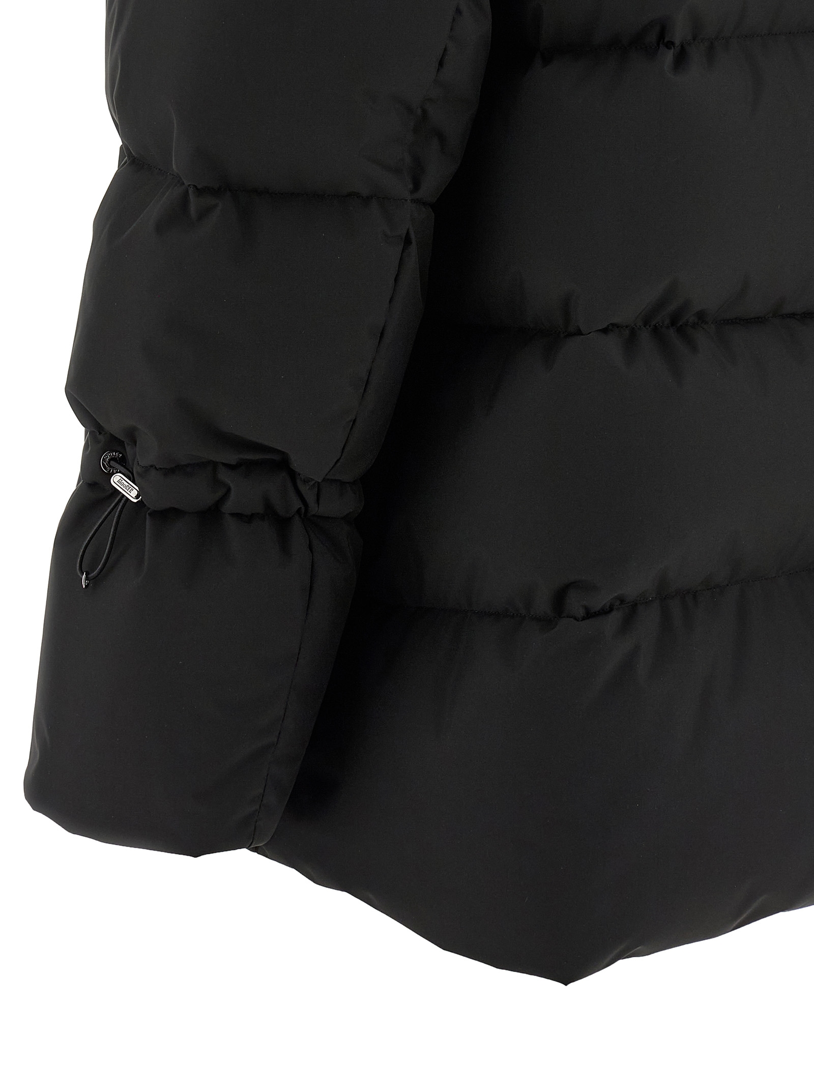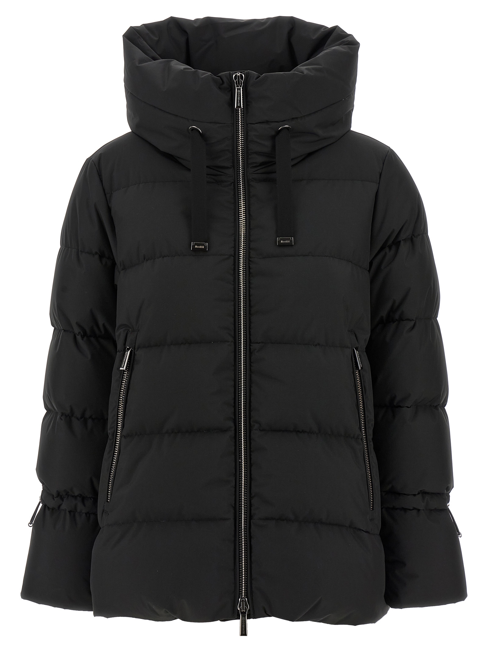 ‘Gadia’ down jacket in technical fabric with a silky appearance quilted with large boudin padding, goose down and water-repellent, trapezoid line, adjustable hood, high neck, front zip closure, pockets, long sleeves with drawstring on the wrist, drawstring on the hem.