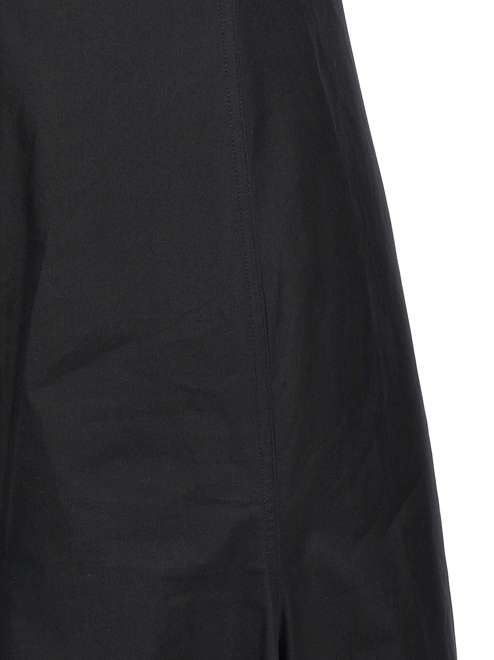 ‘Galante’ dress in cotton poplin with front curls, round neckline, sleeveless, full skirt, back zip closure.