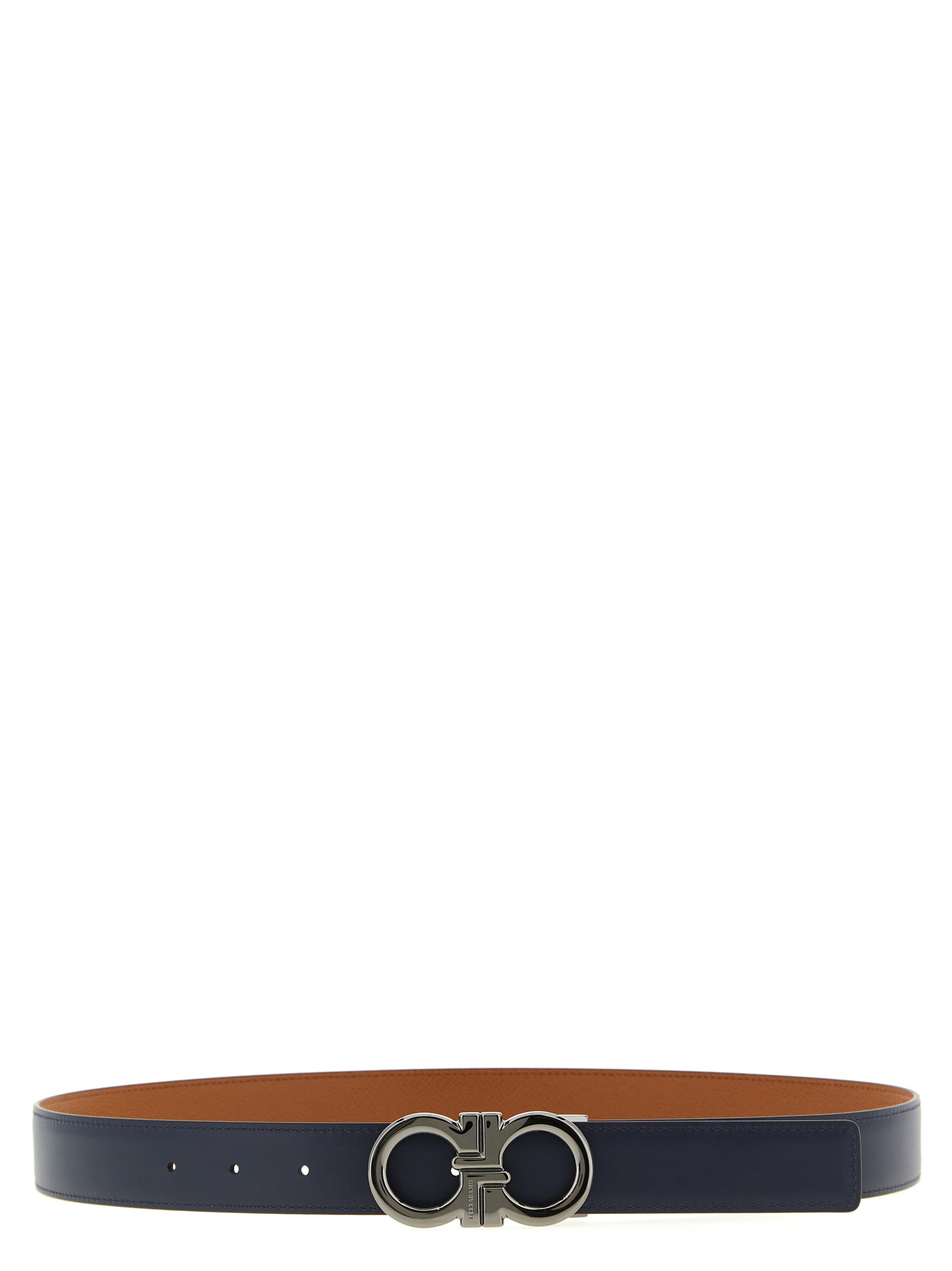 Brown and blue hammered leather reversible belt, metal ‘Gancini’ buckle.