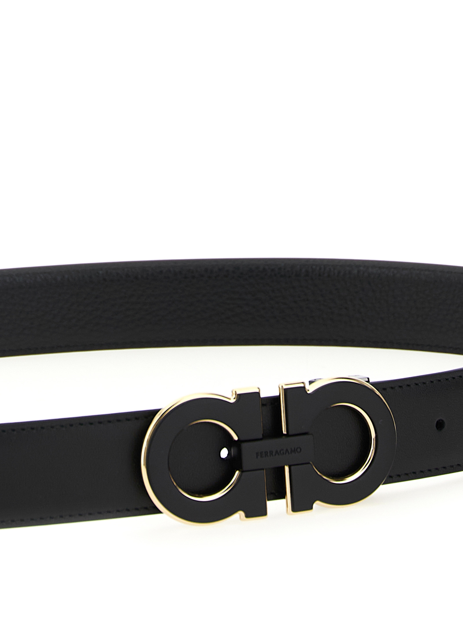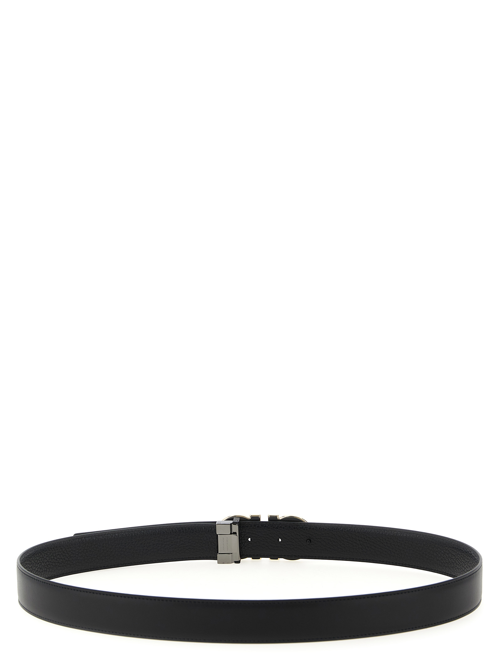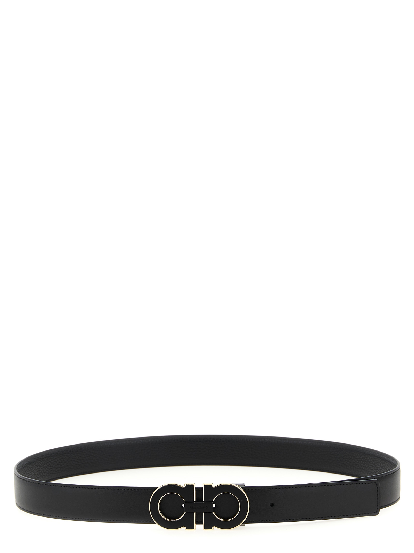 Reversible hammered and smooth leather belt with metal ‘Gancini’ buckle.