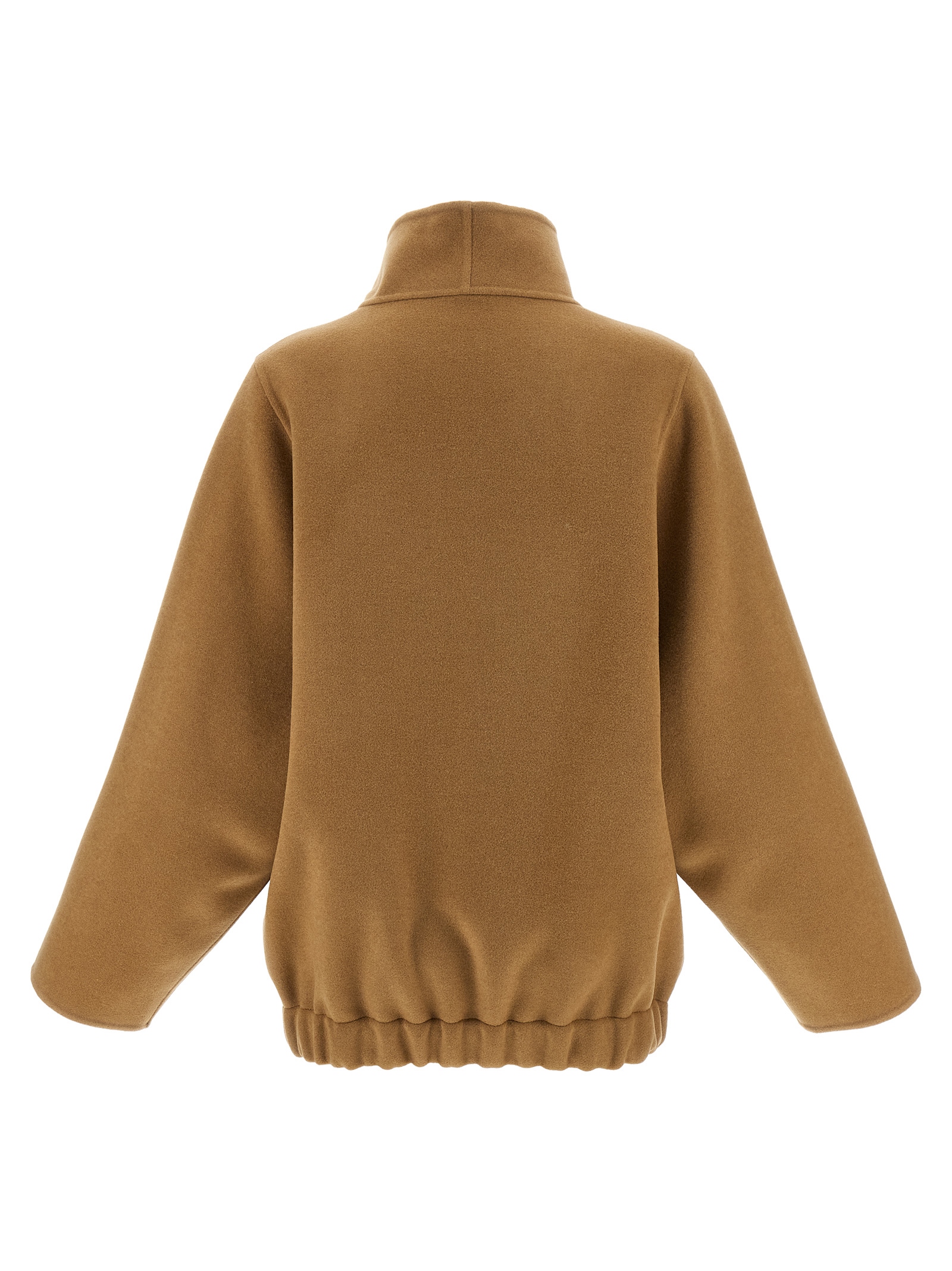 ‘Garrett’ double-sided wool bomber jacket, high neck, front pincer and zip closure, pockets, long sleeves with dropped shoulders, elastic hem.