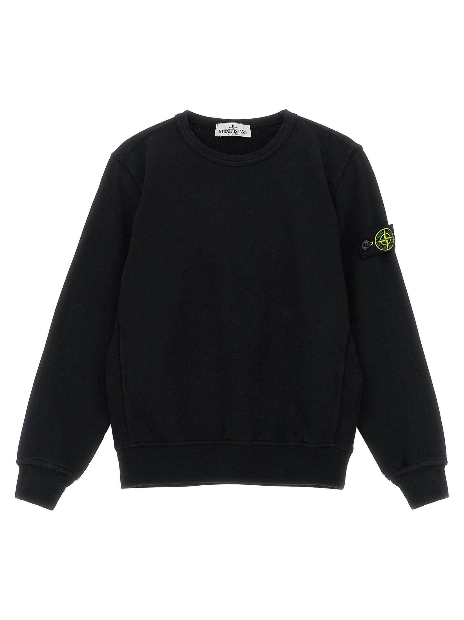 Garment-dyed cotton sweatshirt with brushed lining, overlock stitching, crew neck, long cuffed sleeves and logo badge appliqué.
