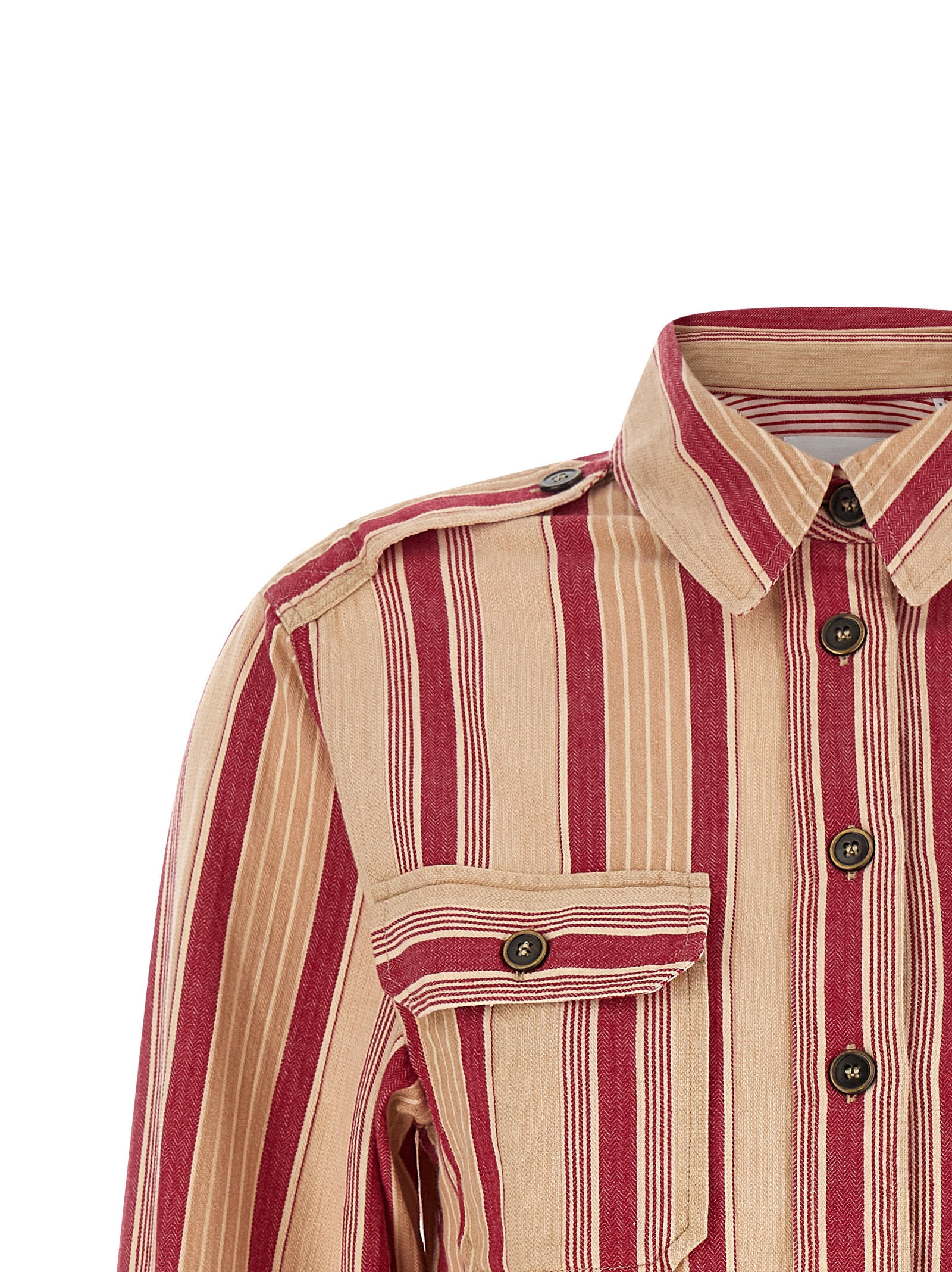 ‘Gelva’ striped cotton canvas shirt with classic collar, front button closure, front pockets with flap and button, button on the skins, long sleeves with buttoned cuffs.