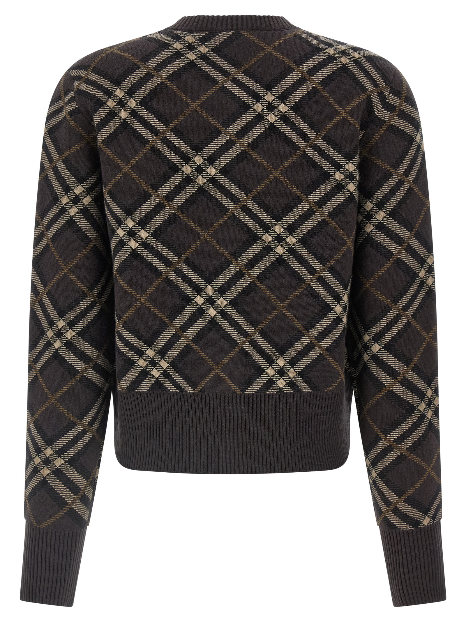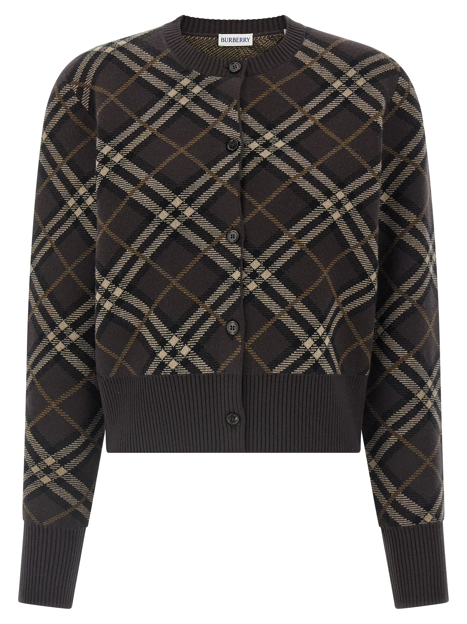 Double face wool and cashmere Georgette cardigan with Burberry Check in jacquard, crew neck, front button closure, long cuffed sleeves.