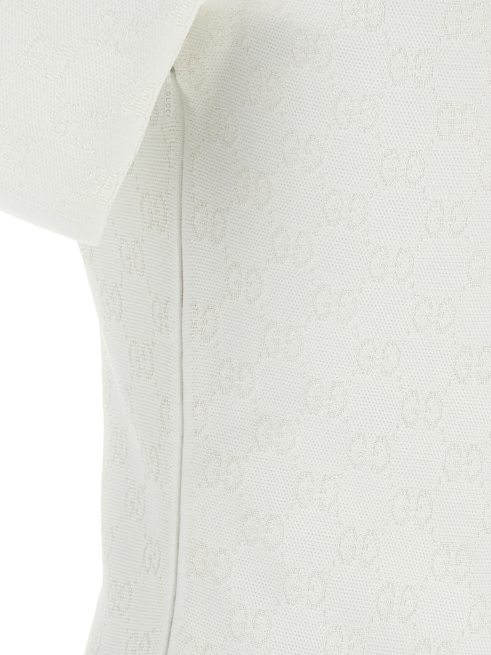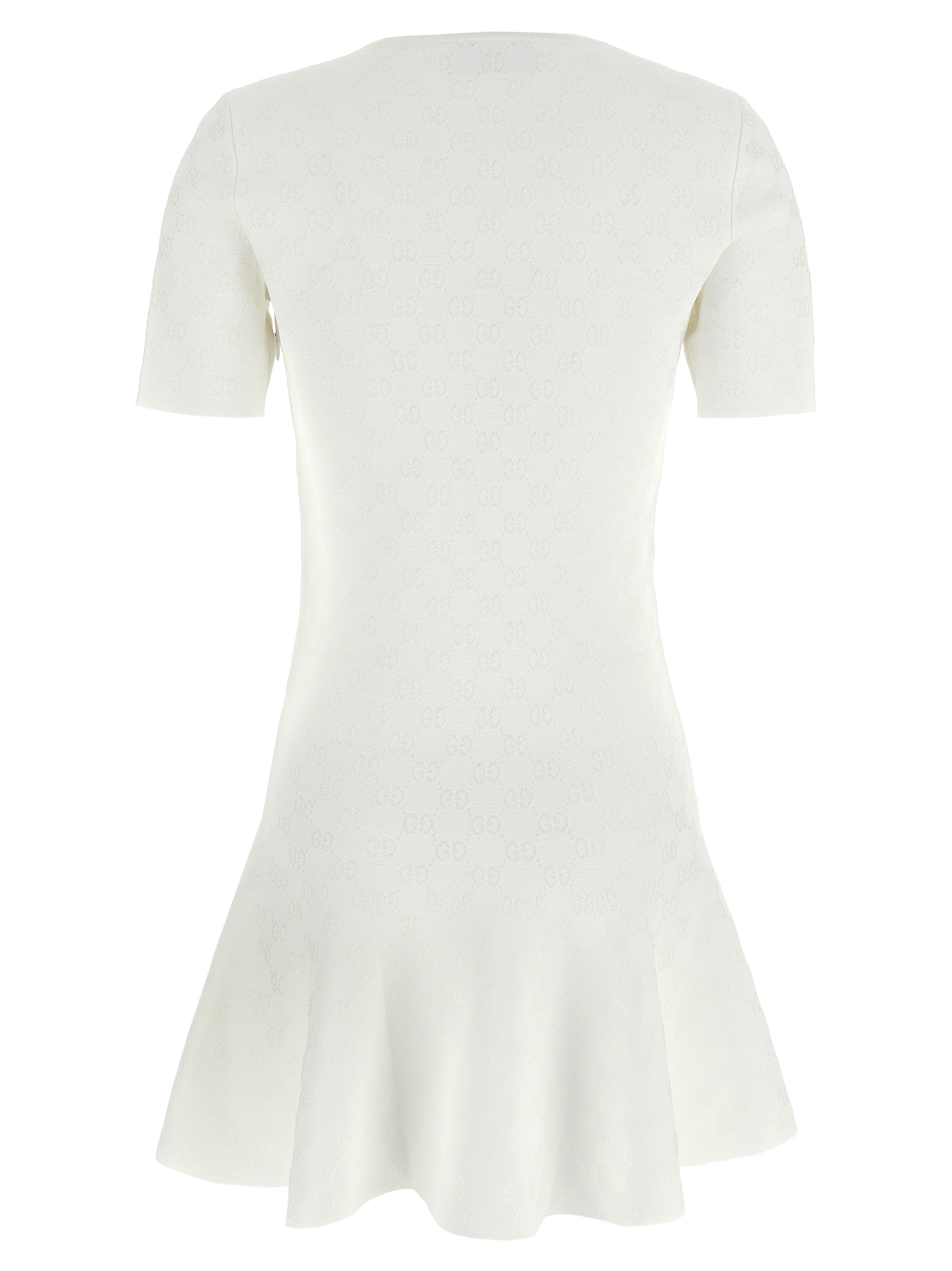 GG viscose jacquard mini dress with deep round neckline, short sleeves, side zip closure, full skirt.