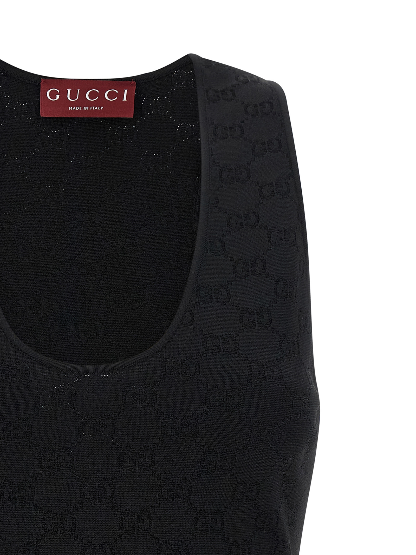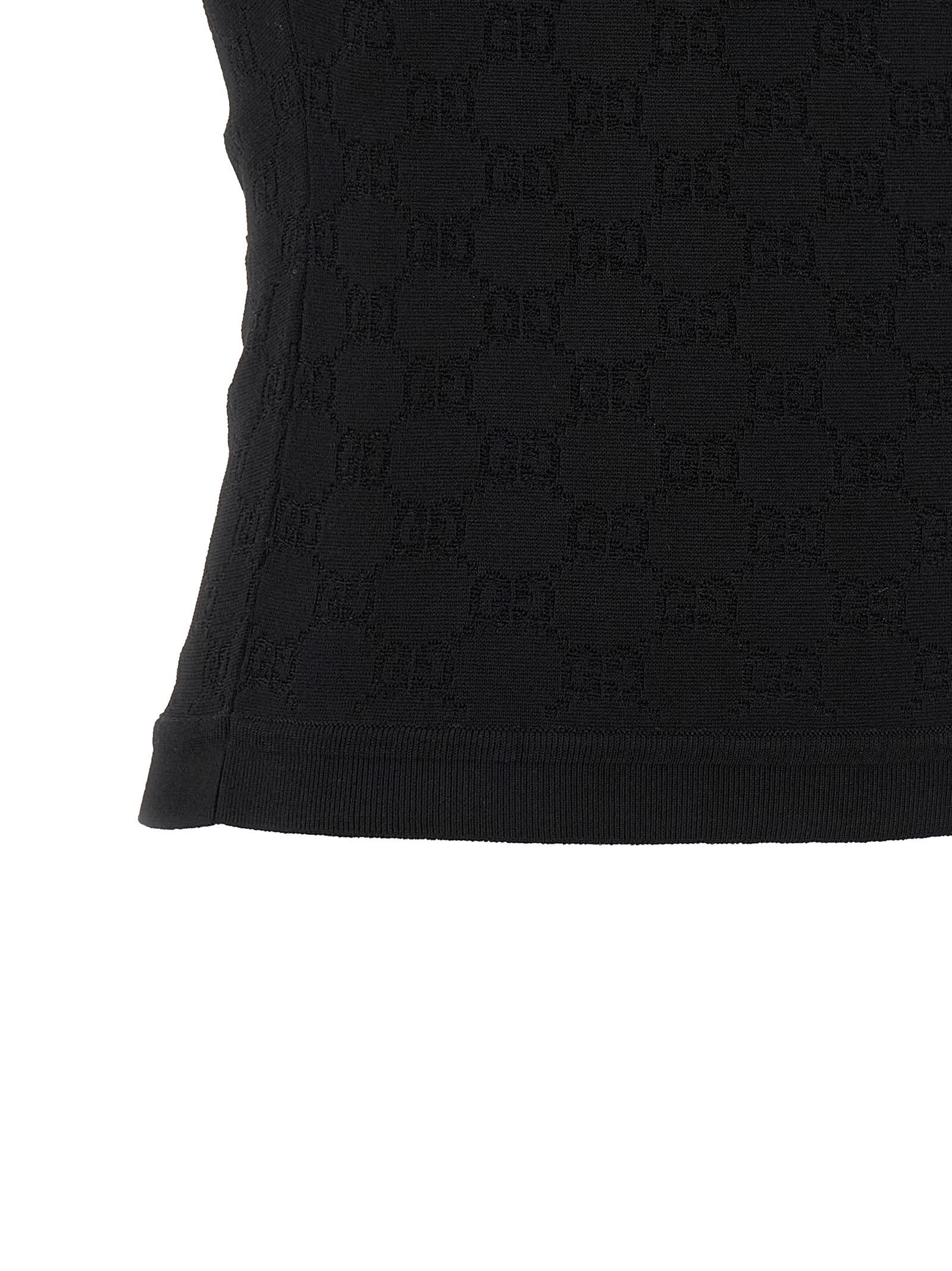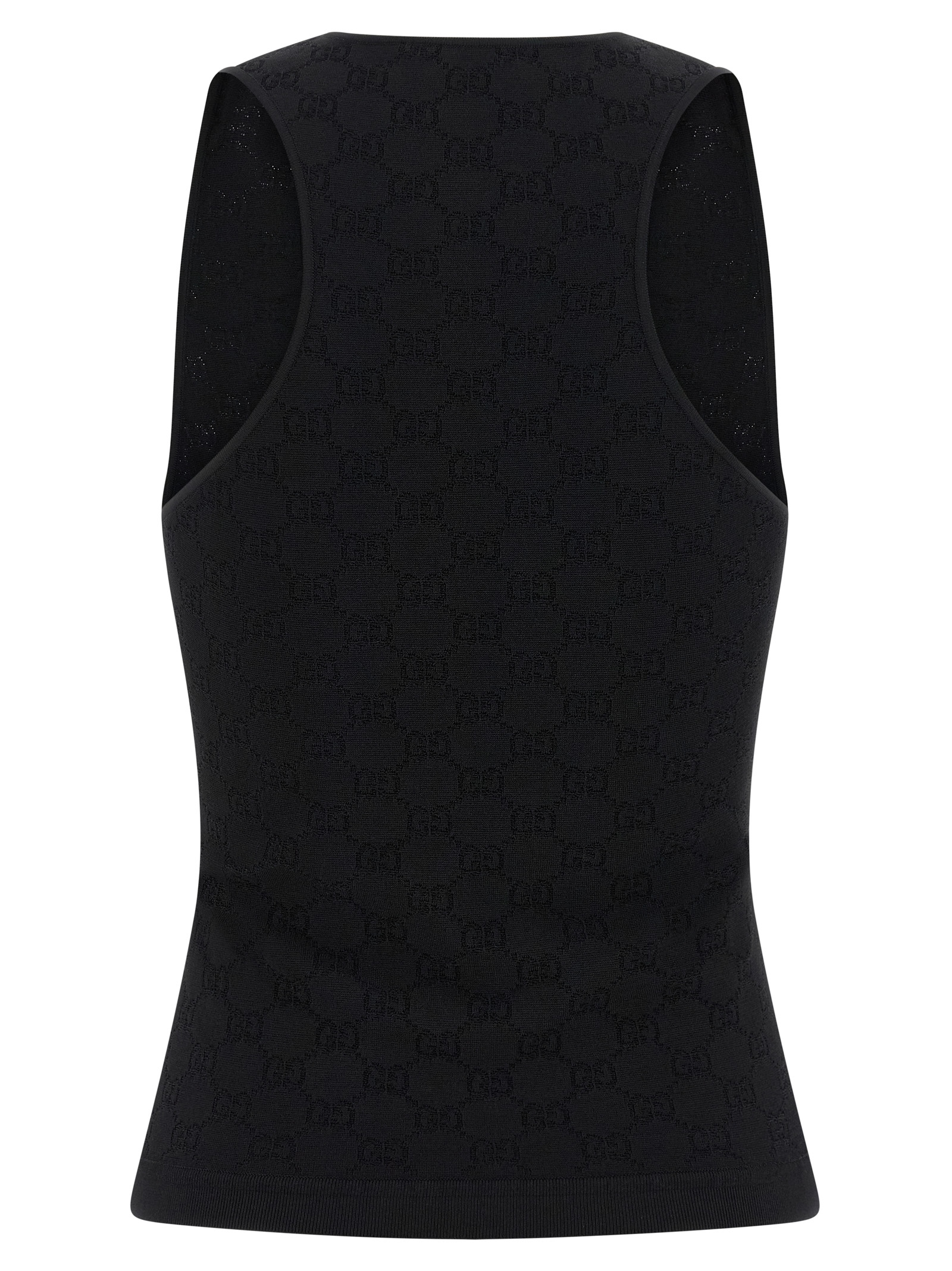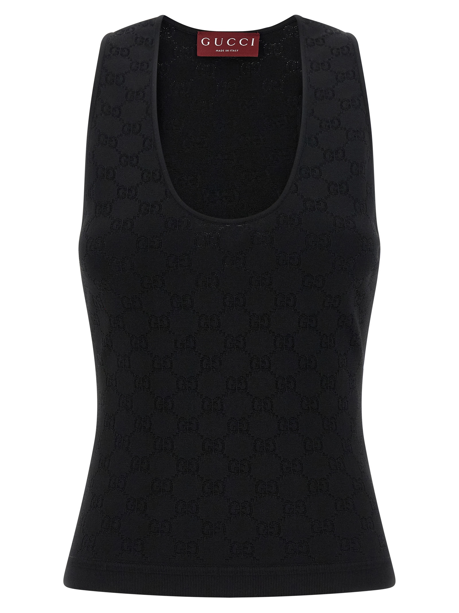 Tank top in fine elastic viscose with all-over GG jacquard pattern, wide front U-neck.