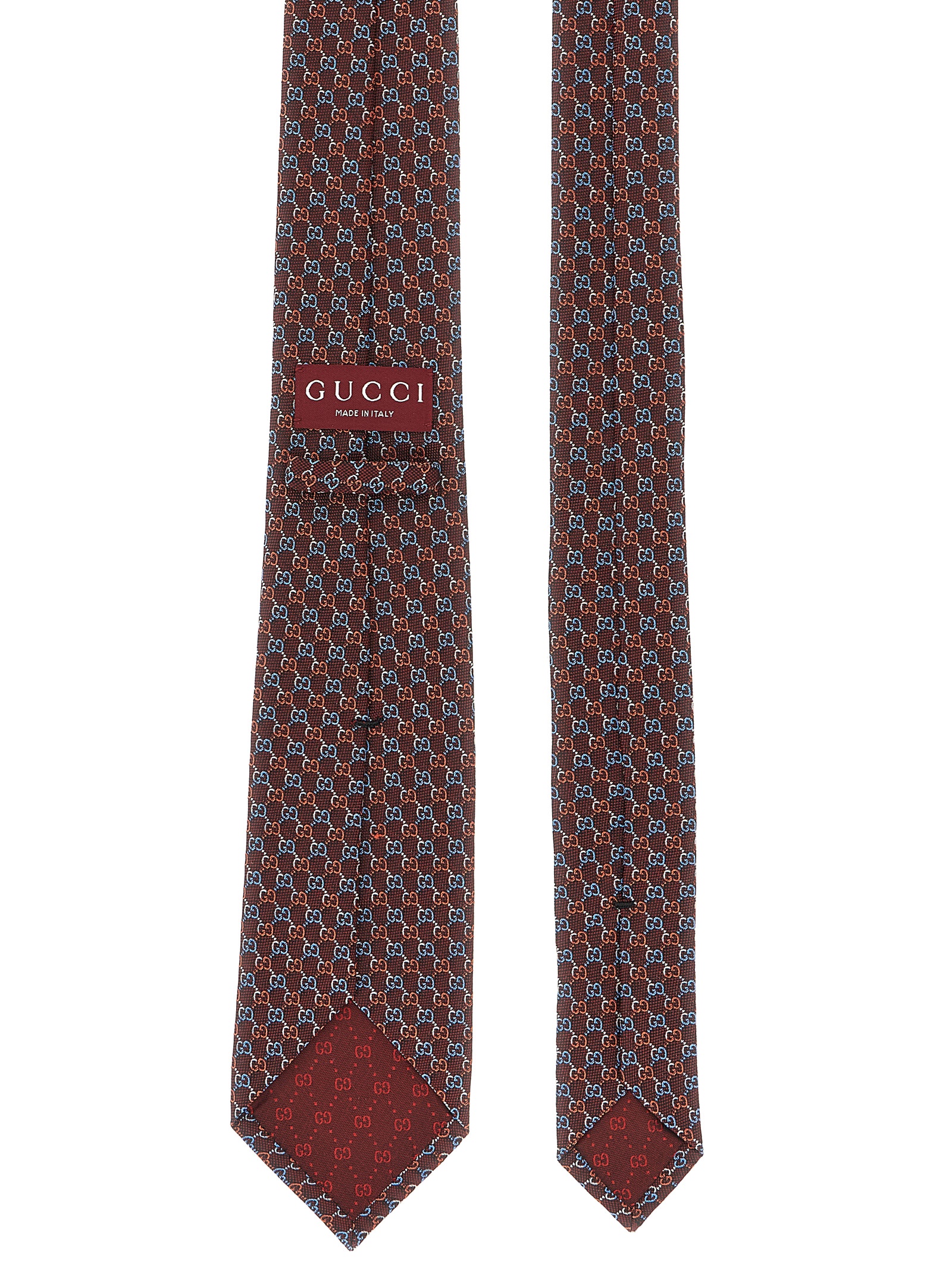 Two-tone GG jacquard silk tie, Gucci label with back bee.