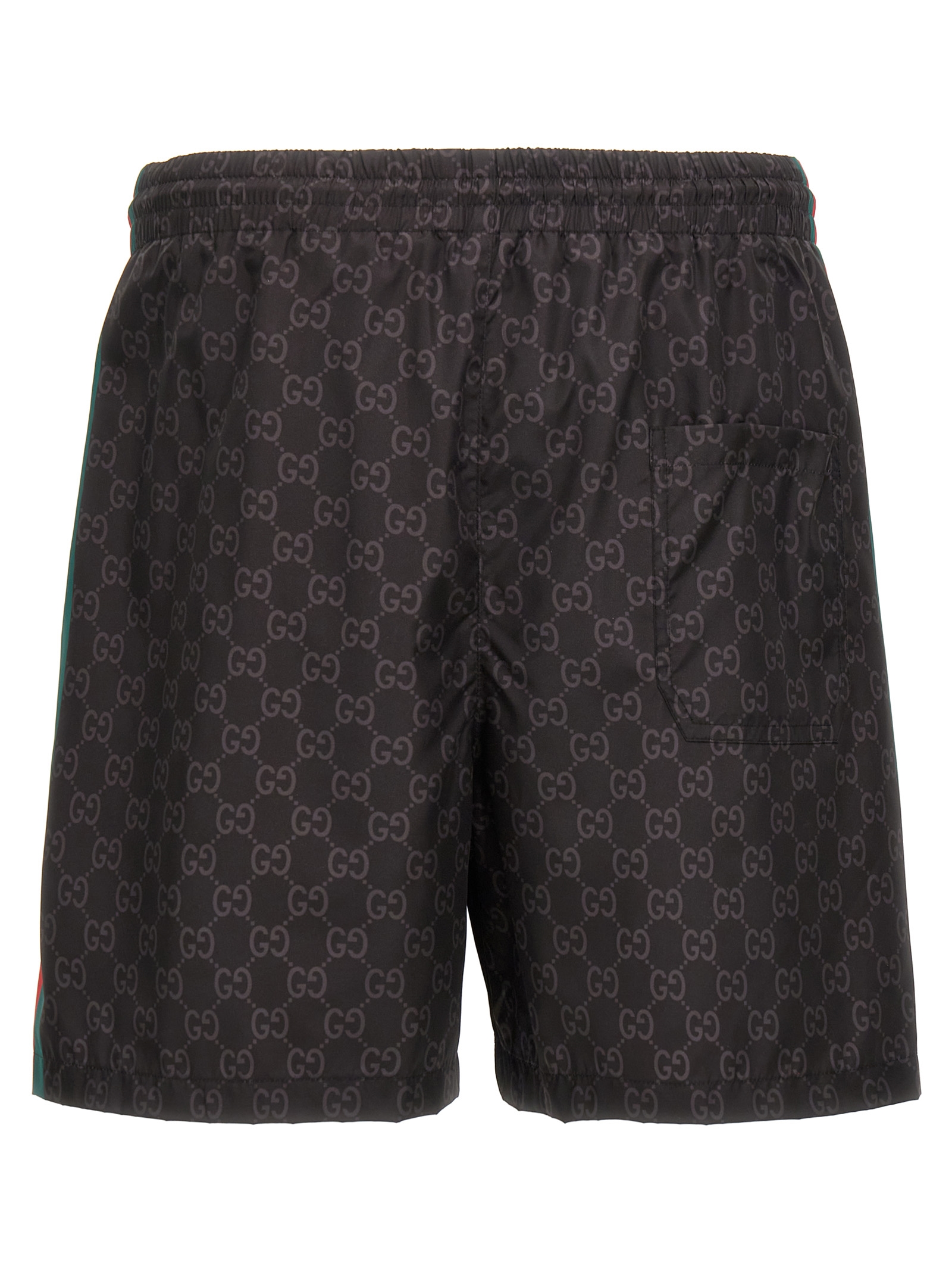 Nylon swim shorts with all-over ‘GG’ print, contrast web band print detail.