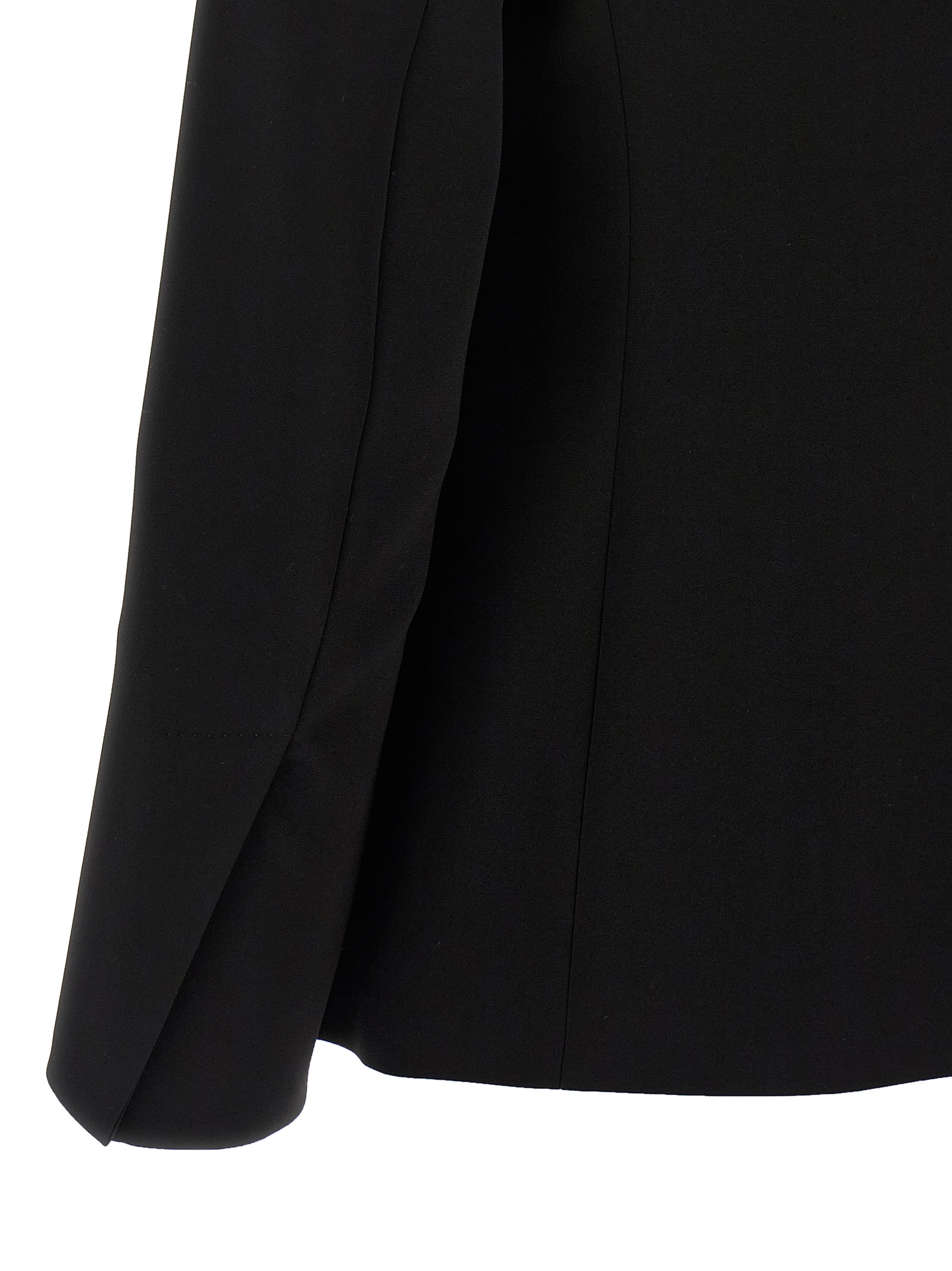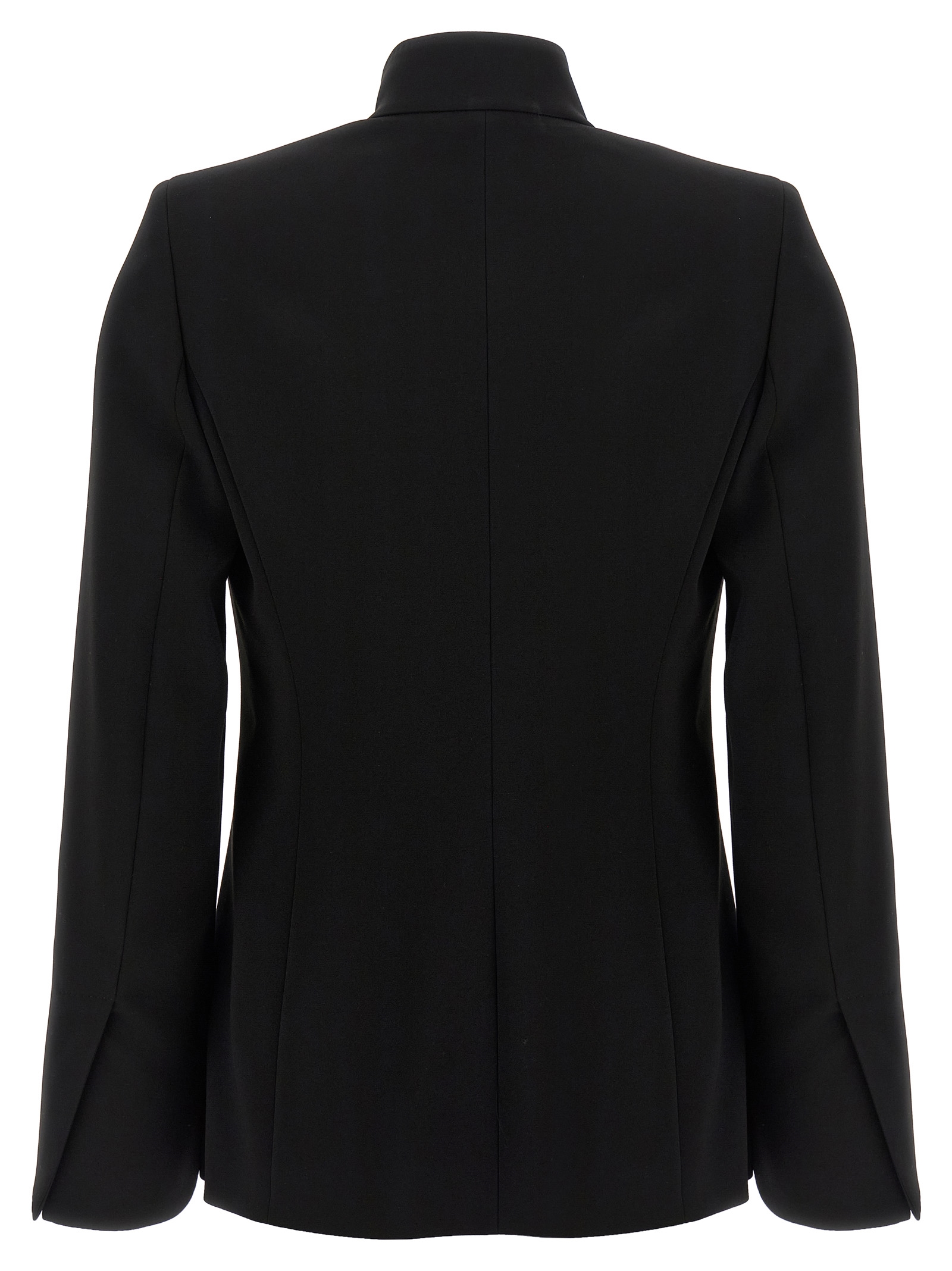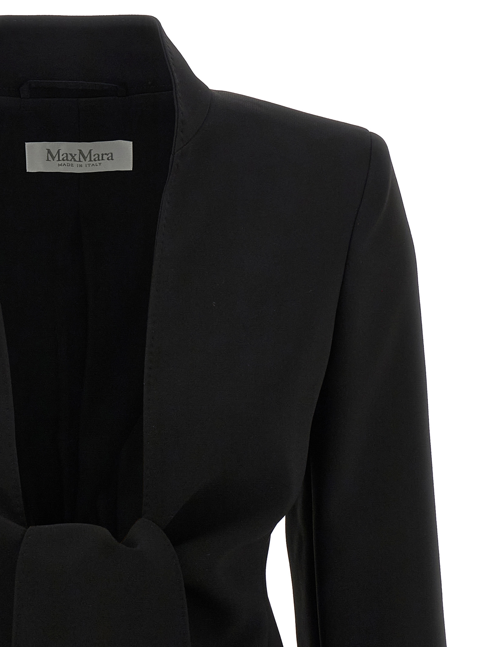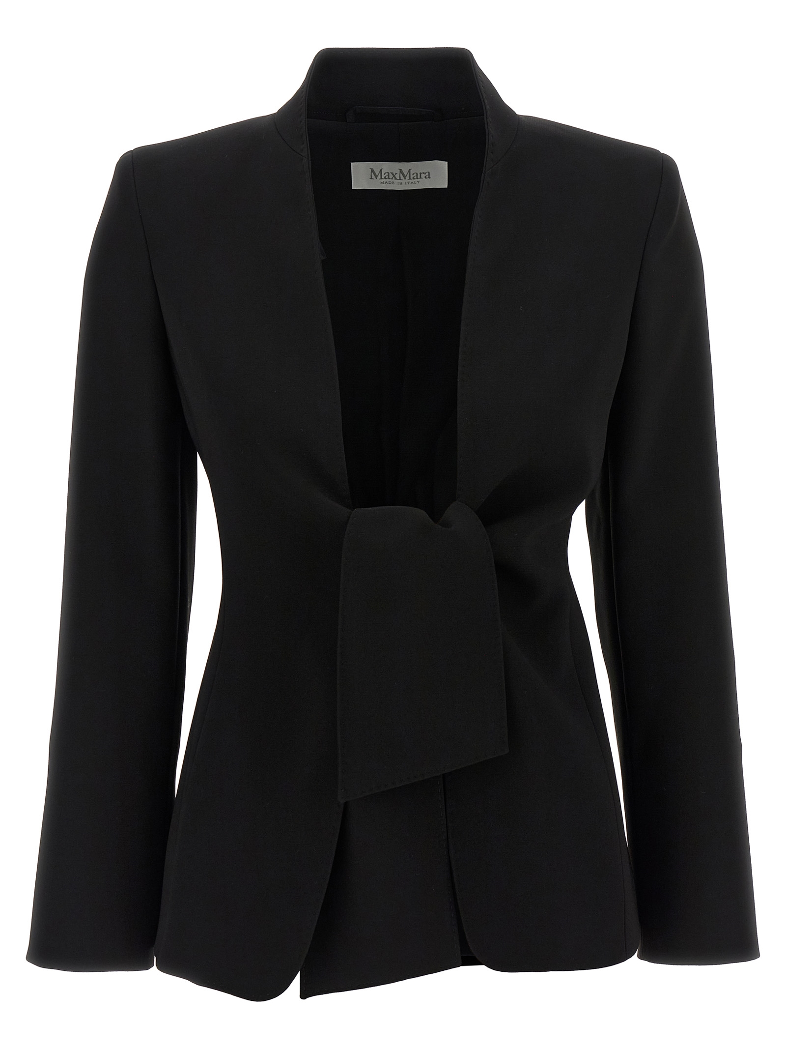 ‘Ghiotto’ compact cady blazer finished with tailored dot, list collar, sash closure to tie on the front, structured shoulder strap, long sleeves, Monogram jacquard fabric lining.