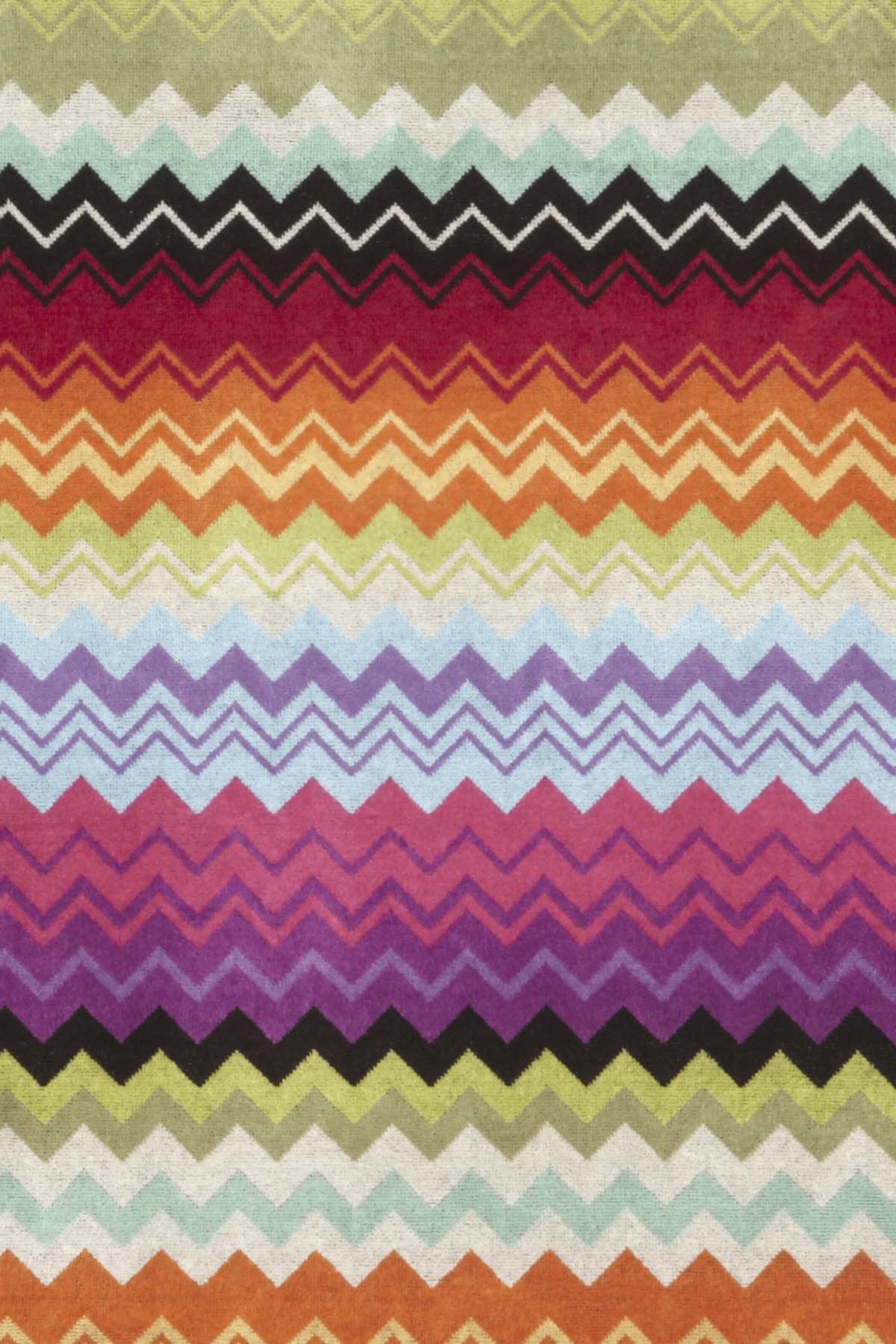 Set of 2 multicolor zigzag velour terry cotton towels. ‘Riccio’ terrycloth back. Consisting of a guest towel and a towel.