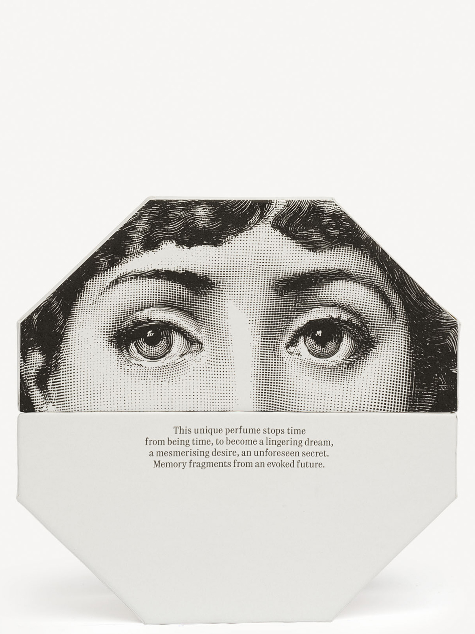 The bottle’s novel octagonal design makes the Fornasetti extrait de parfum a unique object, whilst the green Malachite cap adds an elegant, refined touch. The box plays with the octagonal shape, evoking the design of the bottle.
