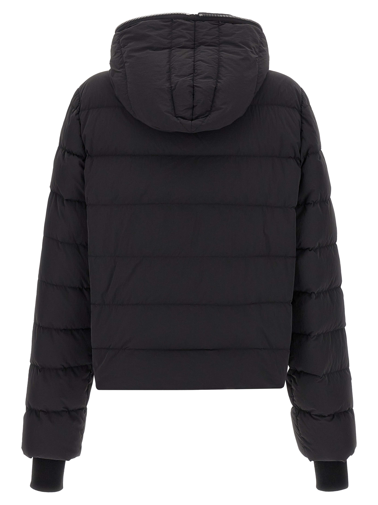 ‘Gimp’ lightweight matte nylon down jacket with water-repellent brushed quilted finish and goose down padding, hood, front zip closure, pockets, long sleeves with stretch knit cuffs.